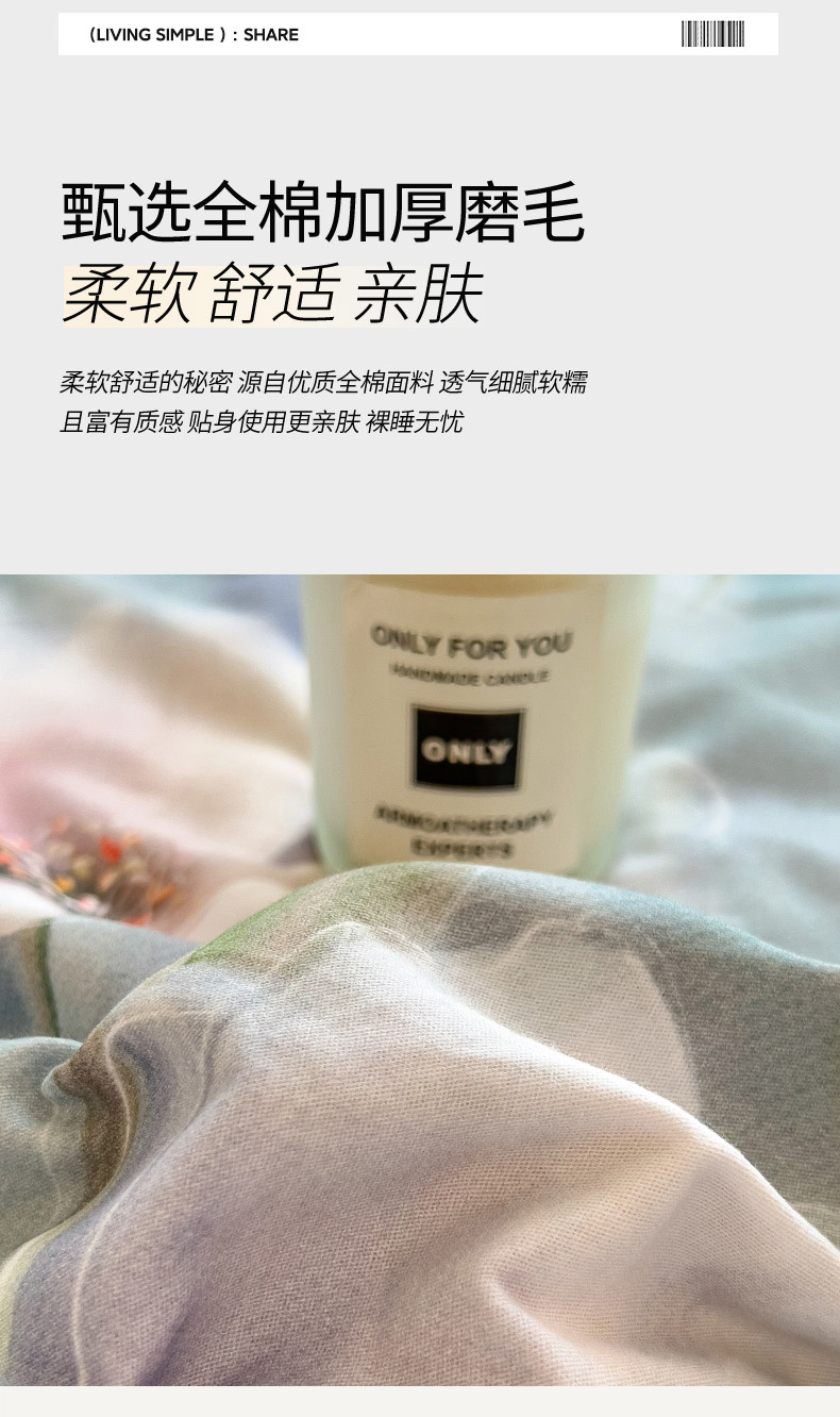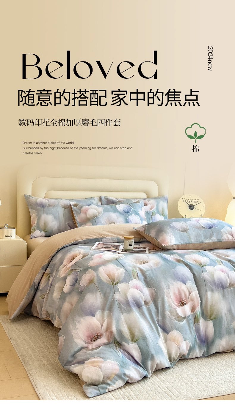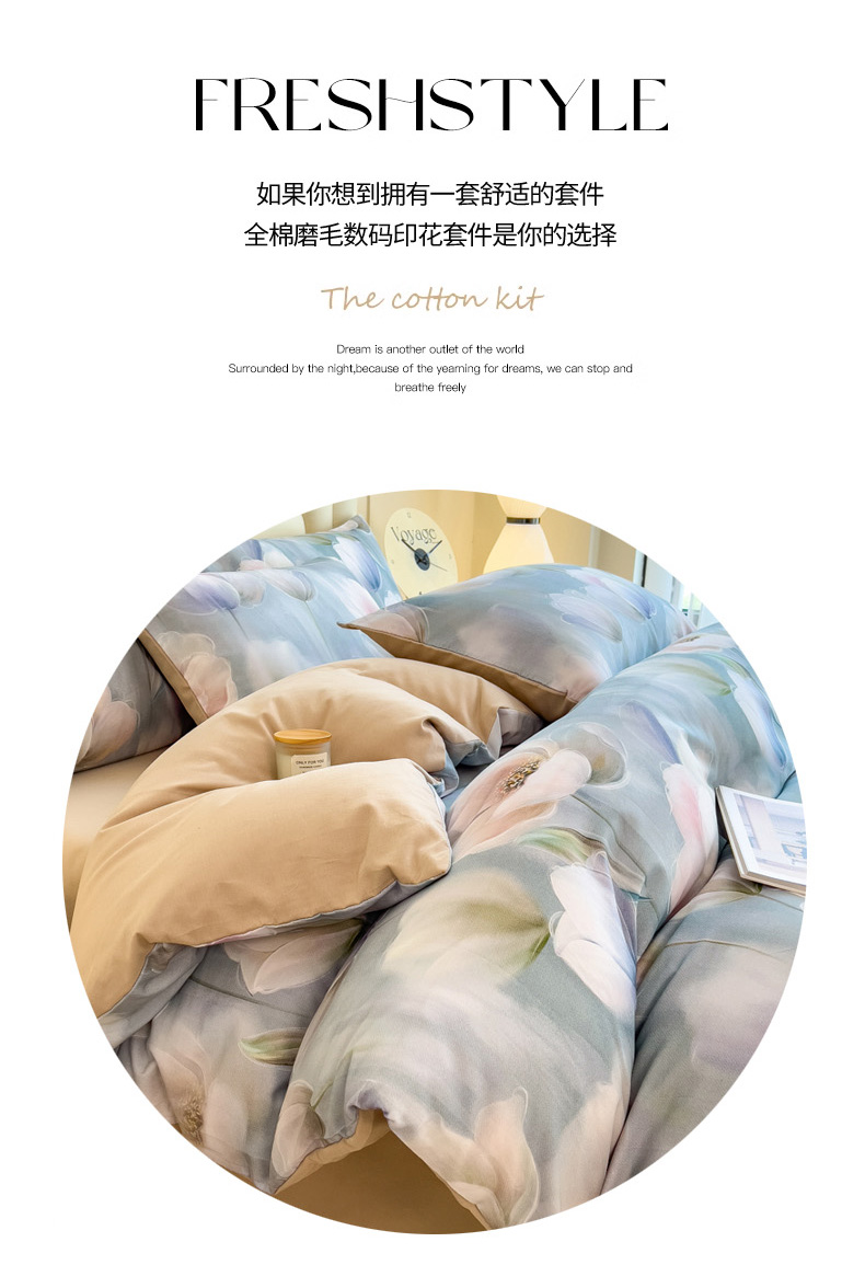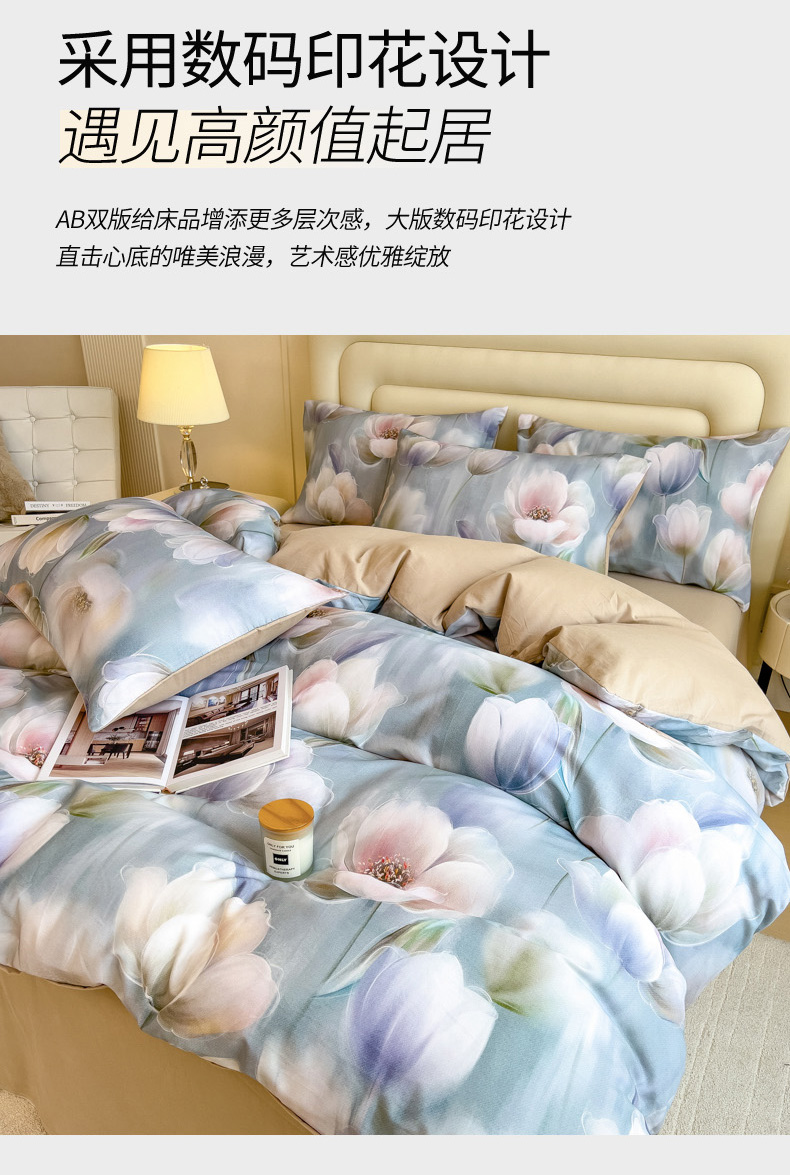 当前位置: 91家纺网 > 商品网购 > 床品套件 > 四件套 > 全棉普通四件套 > 印季家纺 2025新款数码印花全棉纯棉加厚磨毛四件套 花海(兰)