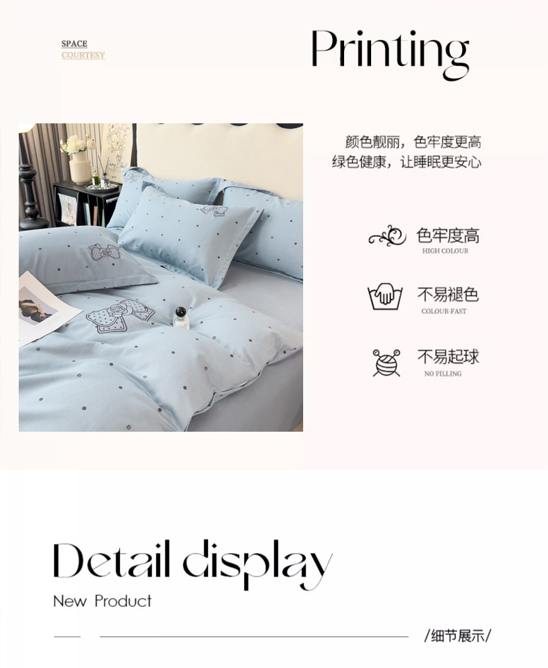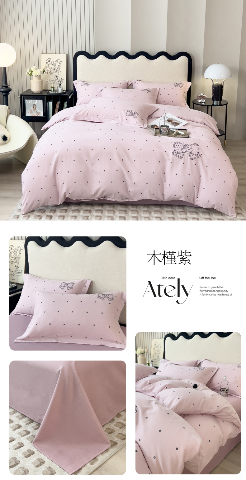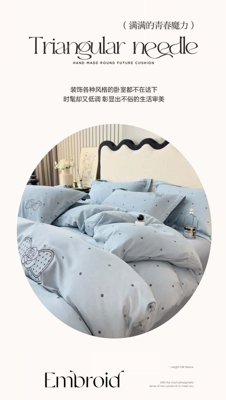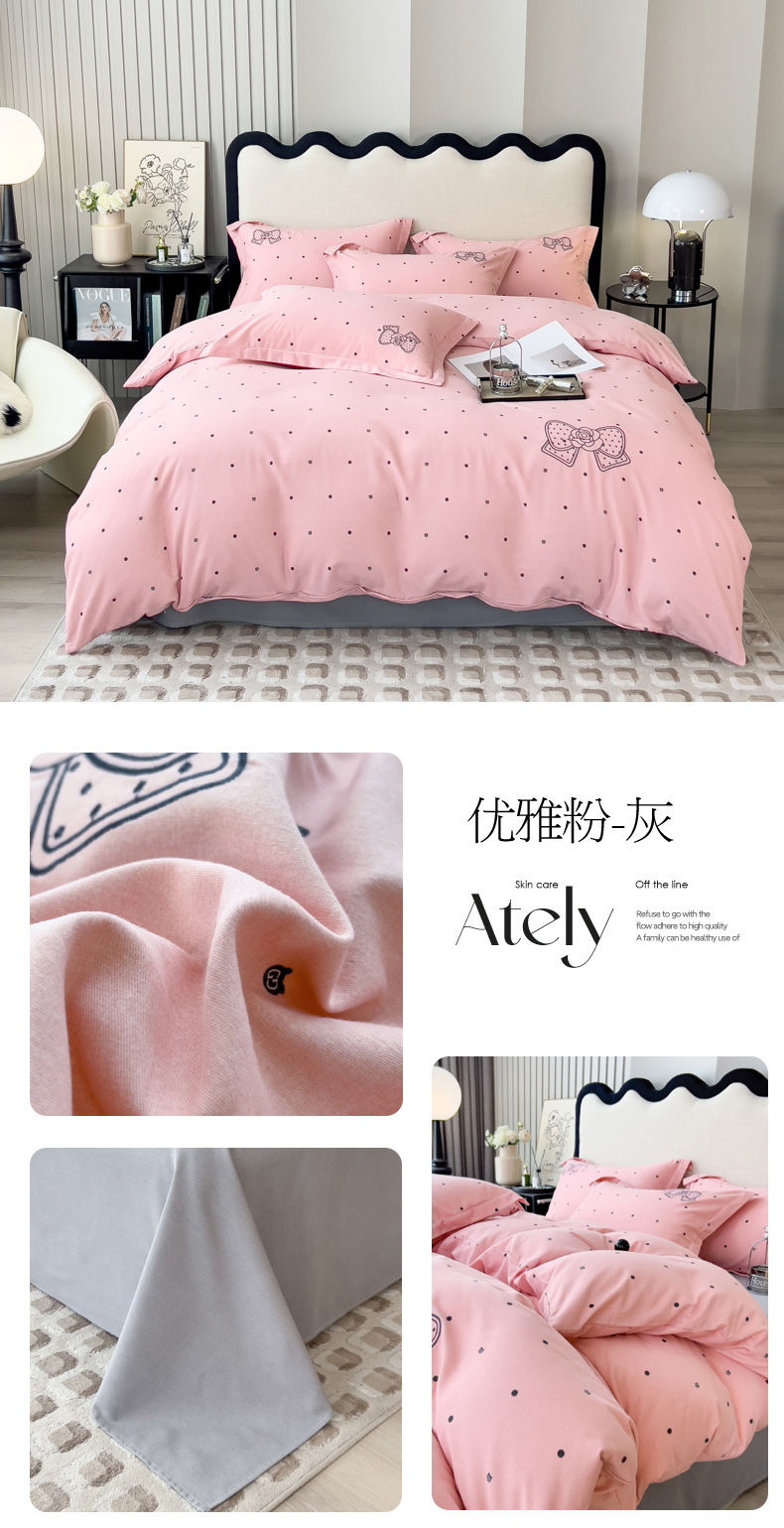 当前位置: 91家纺网 > 商品网购 > 床品套件 > 四件套 > 全棉普通四件套 > 印季家纺 2025新款全棉纯棉波点蝴蝶结绣花混纺磨毛四件套 螺甸青-灰