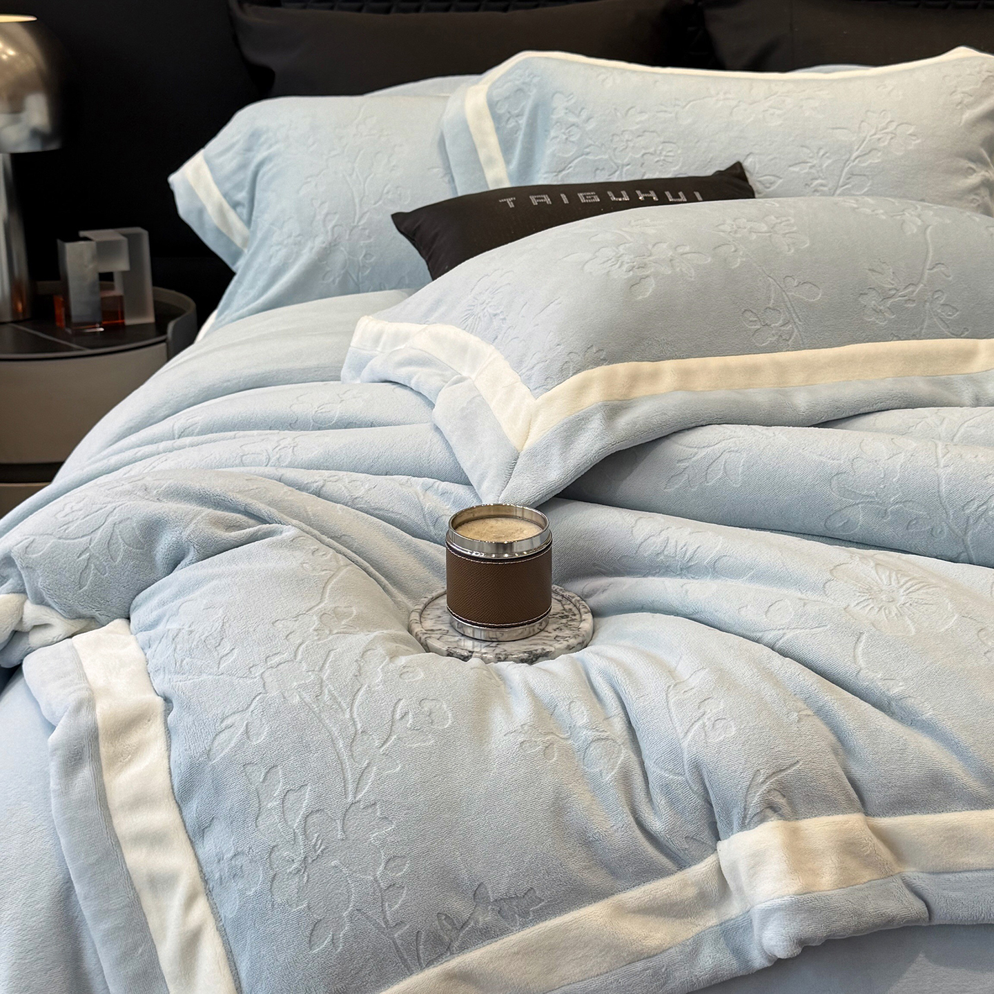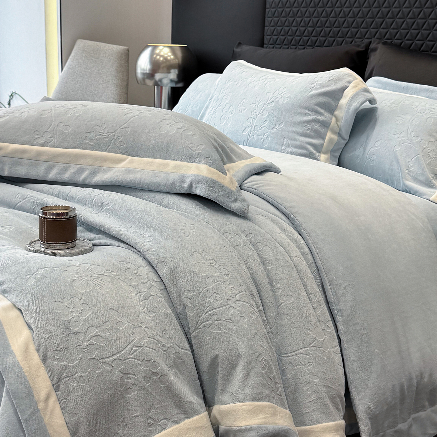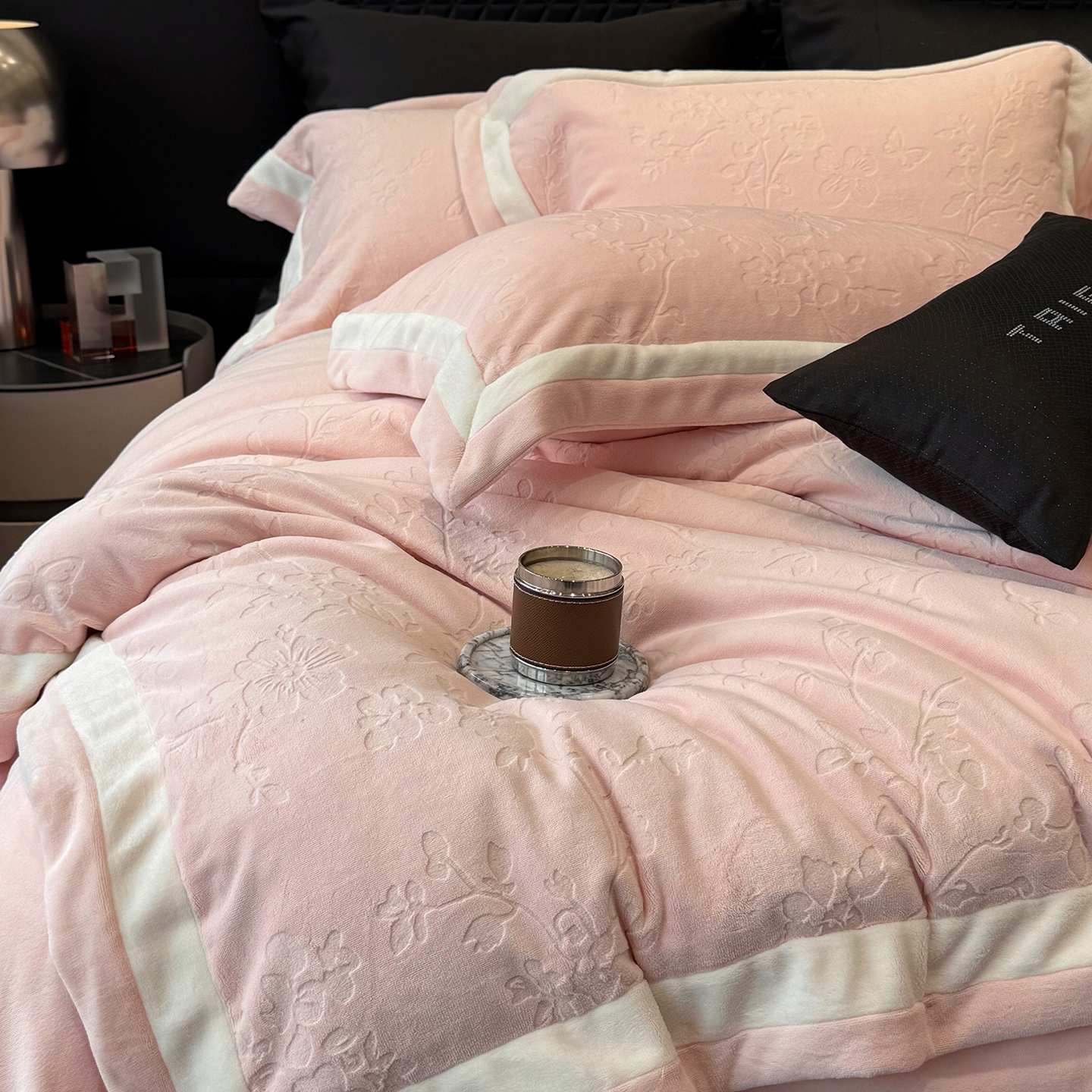 (总)太古汇家居 2025新款牛奶绒雕花+绣花四件套-薇薇安系列,薇薇安-粉色,薇薇安-卡其,薇薇安-蓝色,薇薇安-紫色