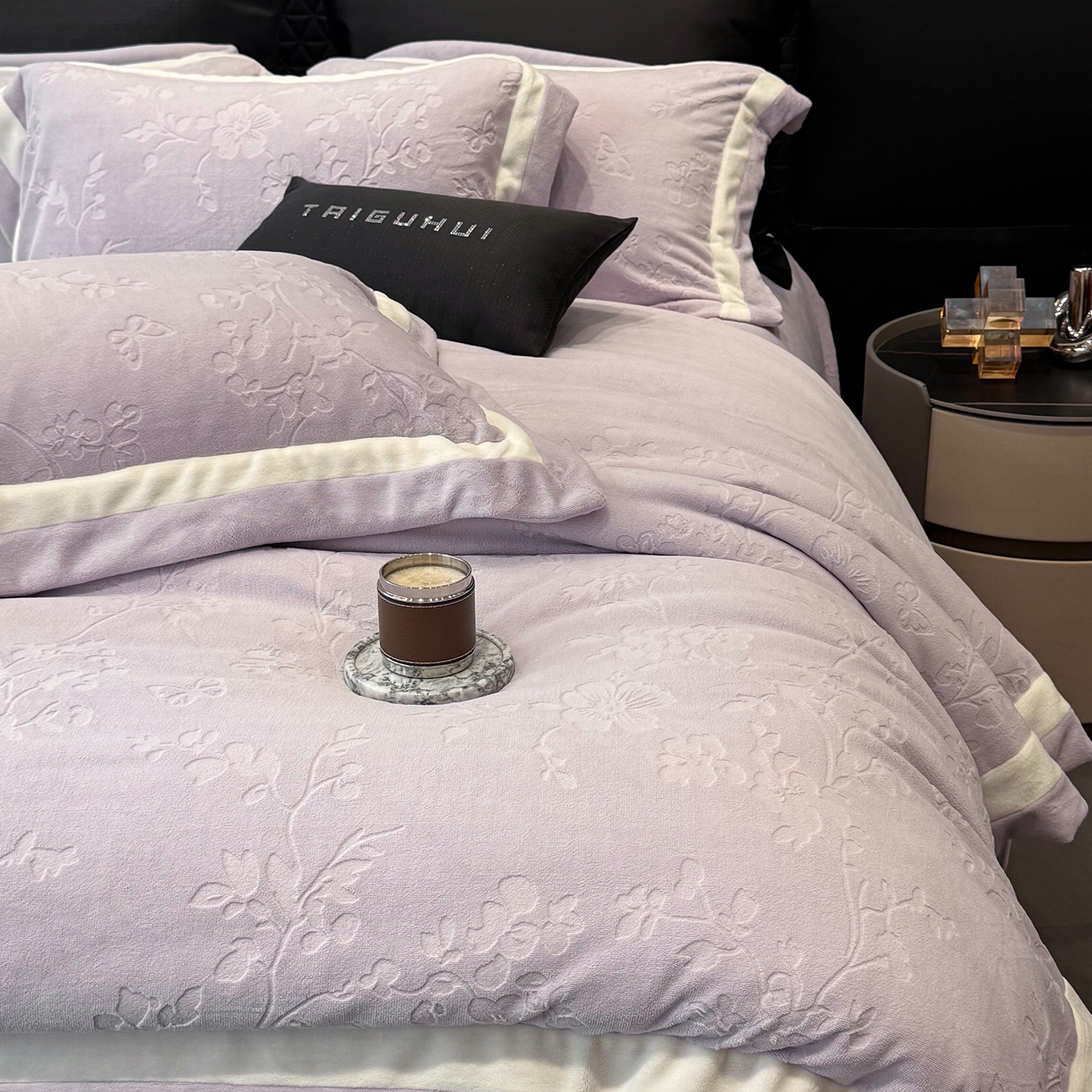 太古汇家居 2025新款高克重牛奶绒四件套-繁花系列 繁花-经典紫