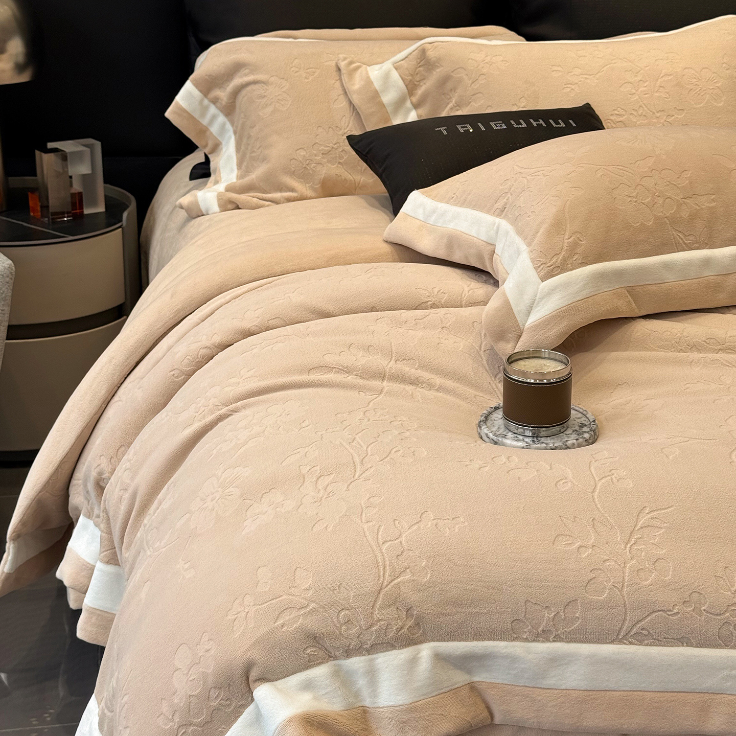 (总)太古汇家居 2025新款240克牛奶绒工艺款四件套-缪斯系列 (会员250/270,毛毡带包装,淘宝上图价格-券后不低于358),缪斯-大象灰,缪斯-果绿,缪斯-奶油咖,缪斯-甜心粉