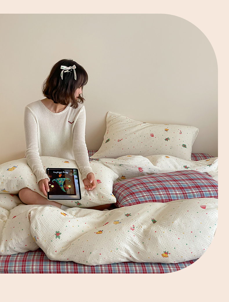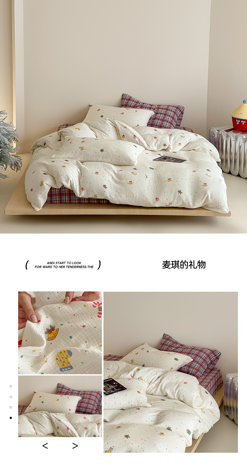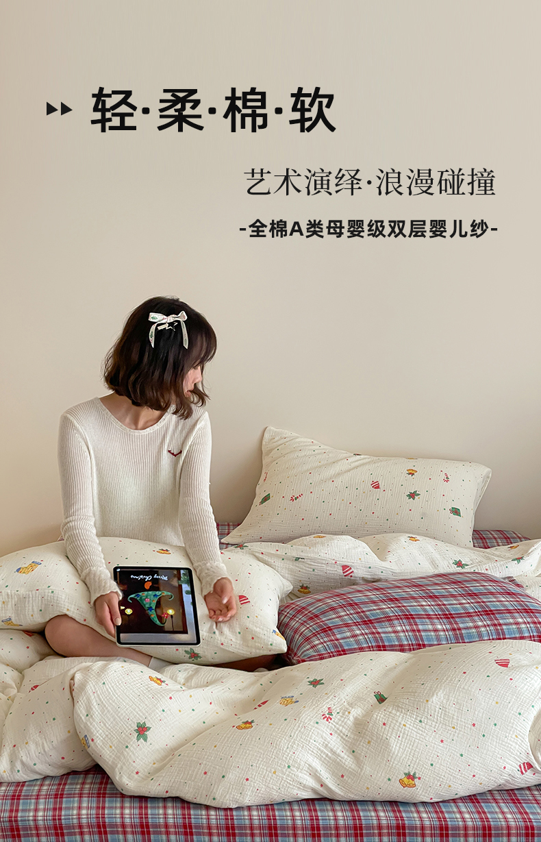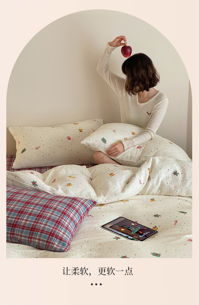 当前位置: 91家纺网 > 商品网购 > 床品套件 > 四件套 > 双层纱四件套 > 山舍家居 2025新款全棉双层皱皱纱圣诞特款四件套-圣诞系列 麦琪的礼物-格子床单
