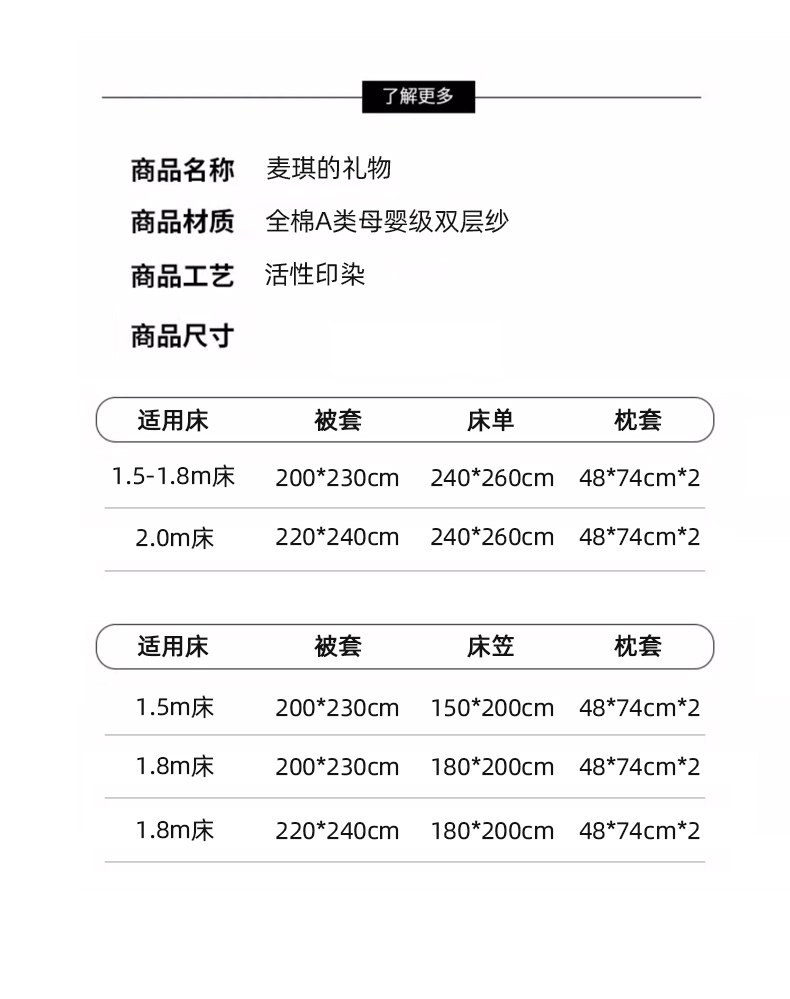1.8m床笠款四件套(被套加大) | ¥235.00 |