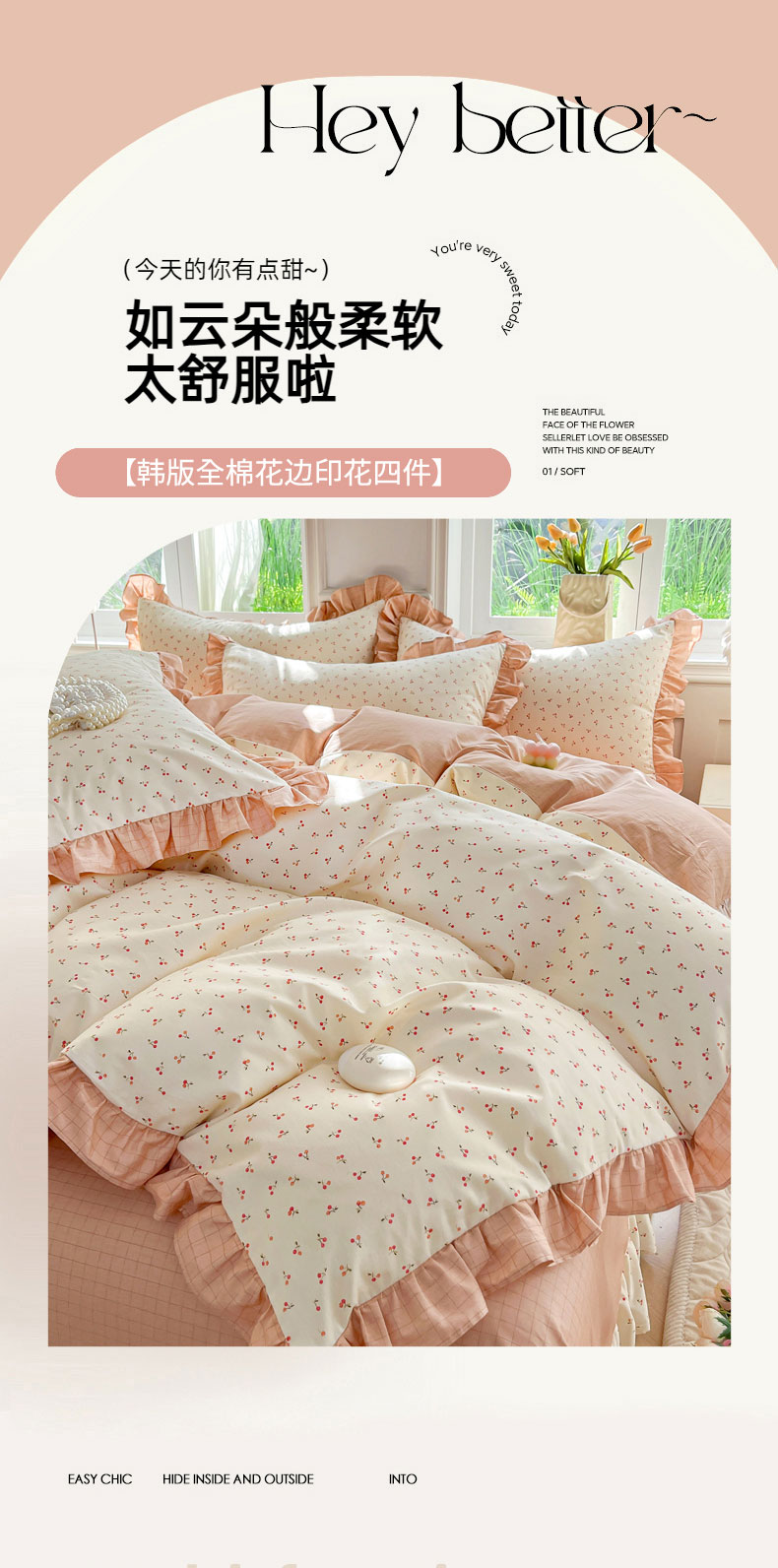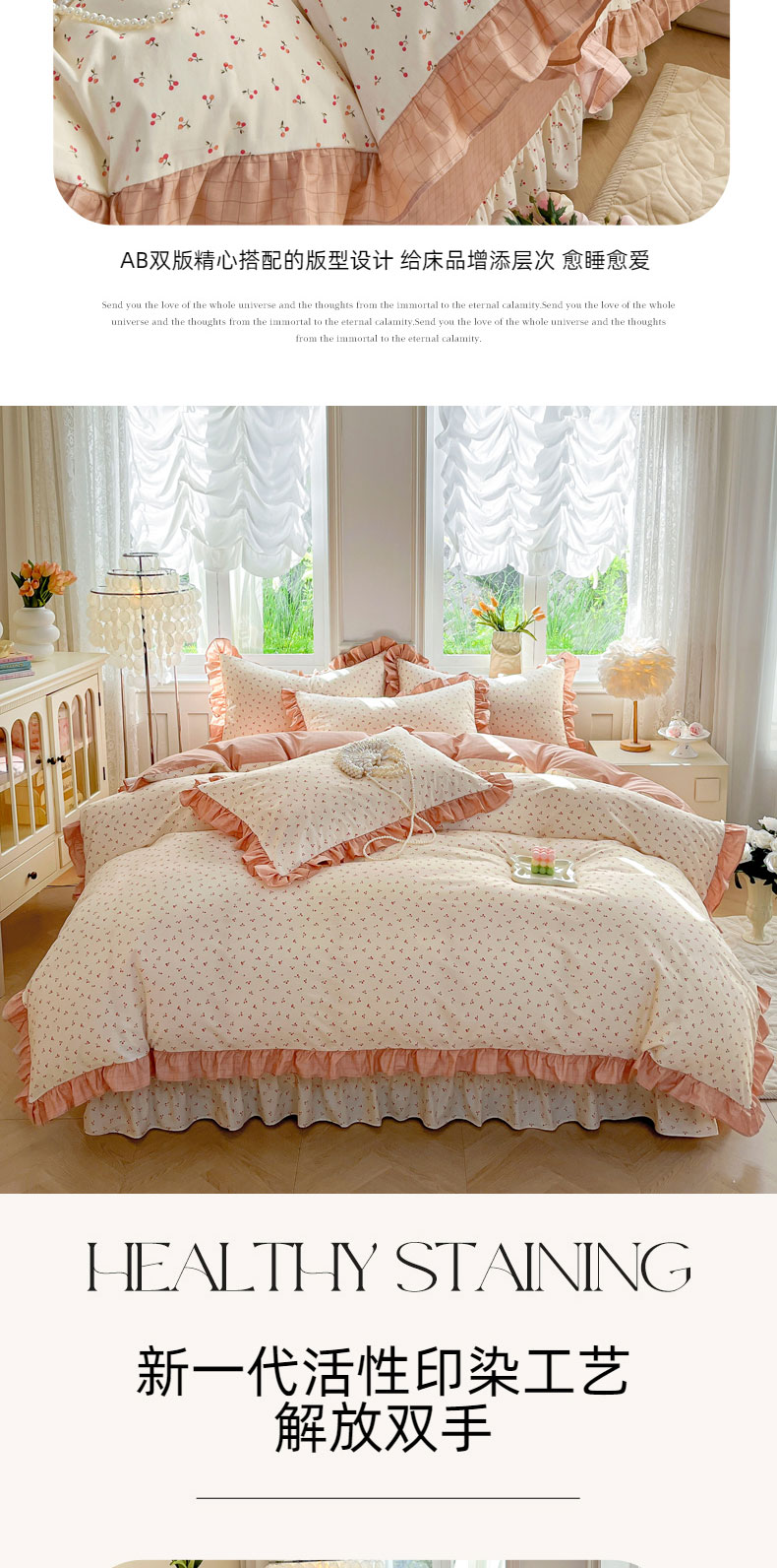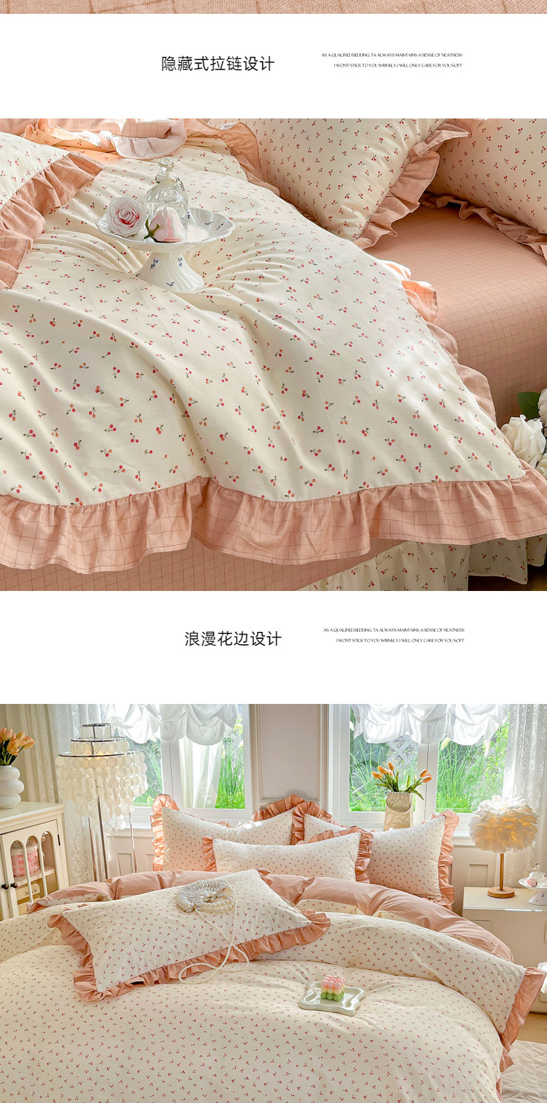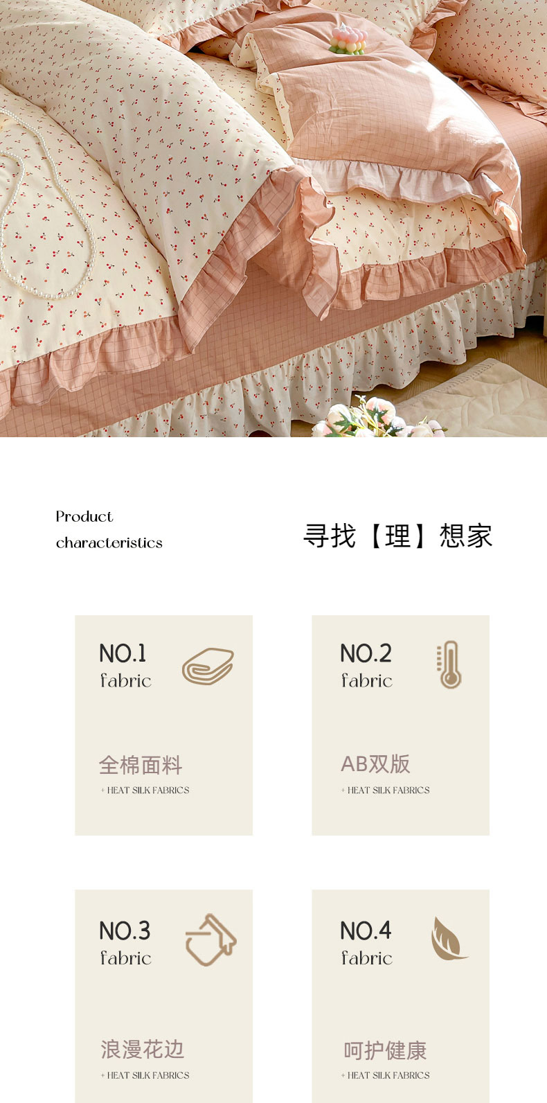 当前位置: 91家纺网 > 商品网购 > 床品套件 > 四件套 > 全棉普通四件套 > 兴美佳家纺 2026新款全棉印花韩版花边床裙款四件套 可可樱桃