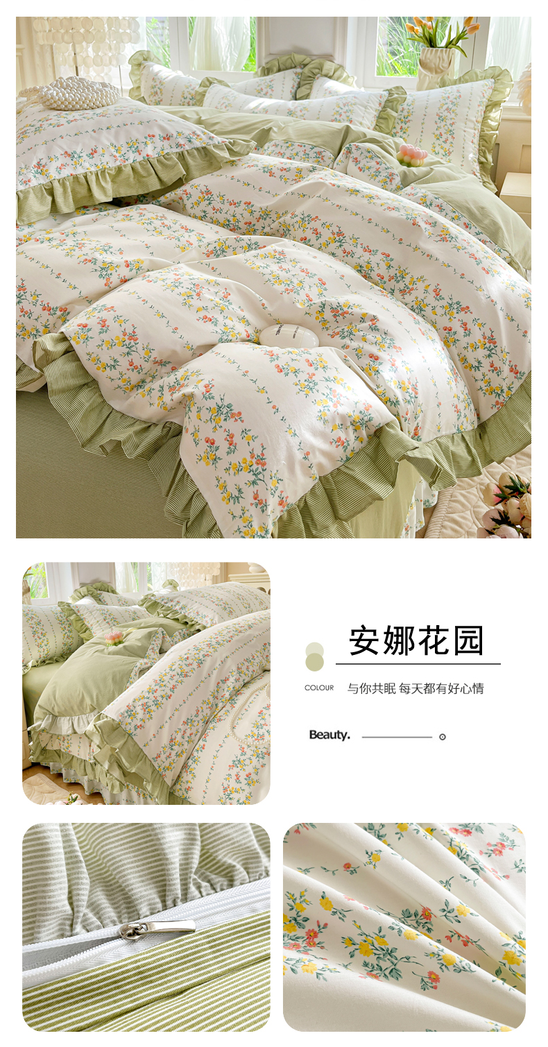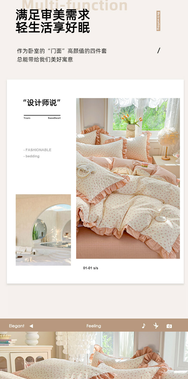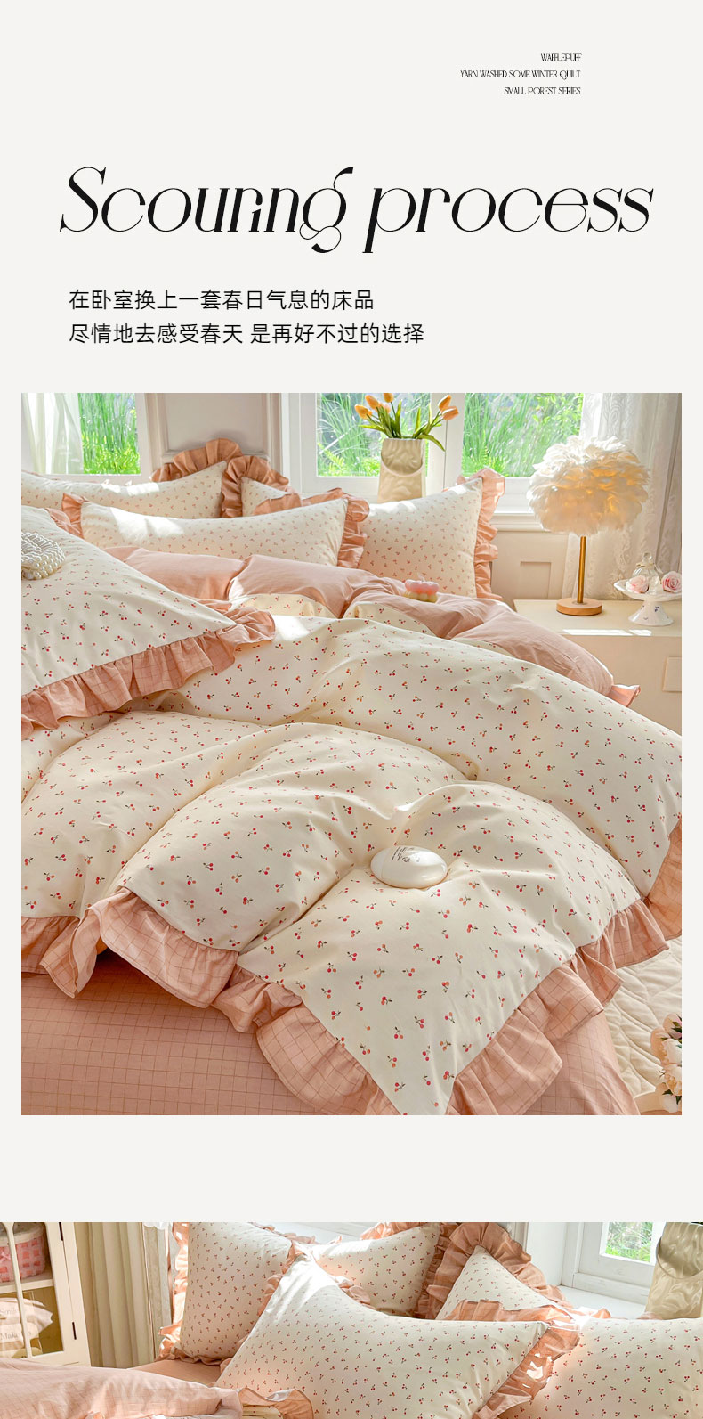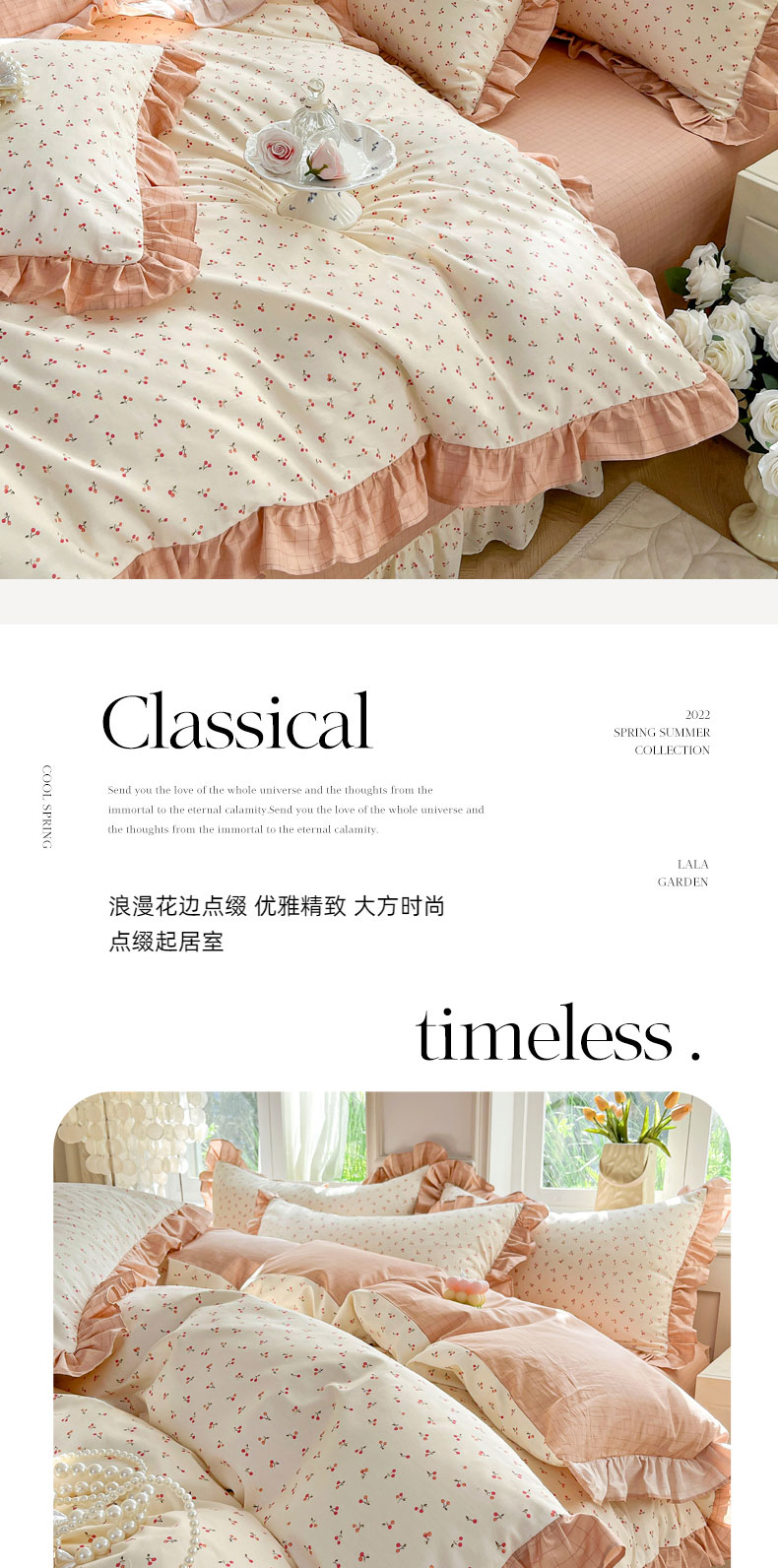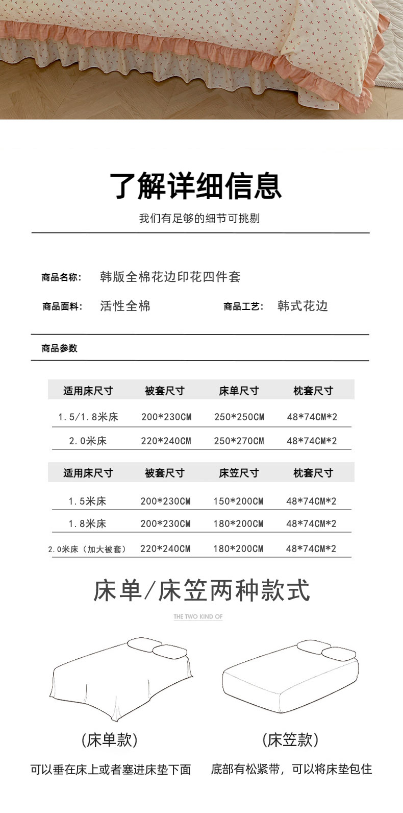 当前位置: 91家纺网 > 商品网购 > 床品套件 > 四件套 > 全棉普通四件套 > 兴美佳家纺 2026新款全棉印花韩版花边床裙款四件套 可可樱桃