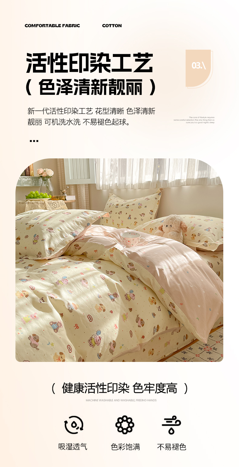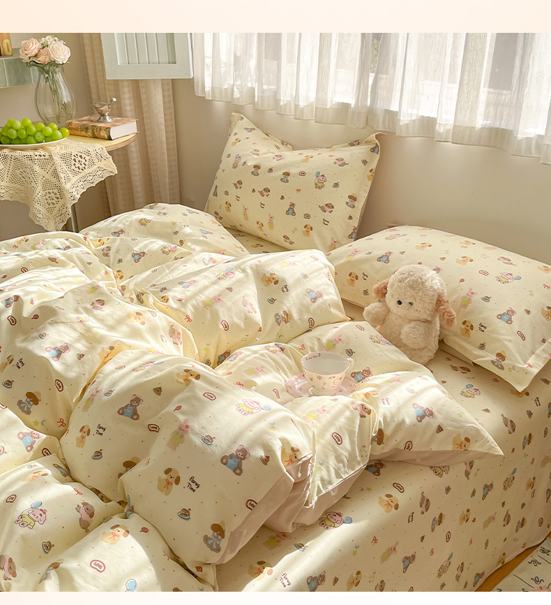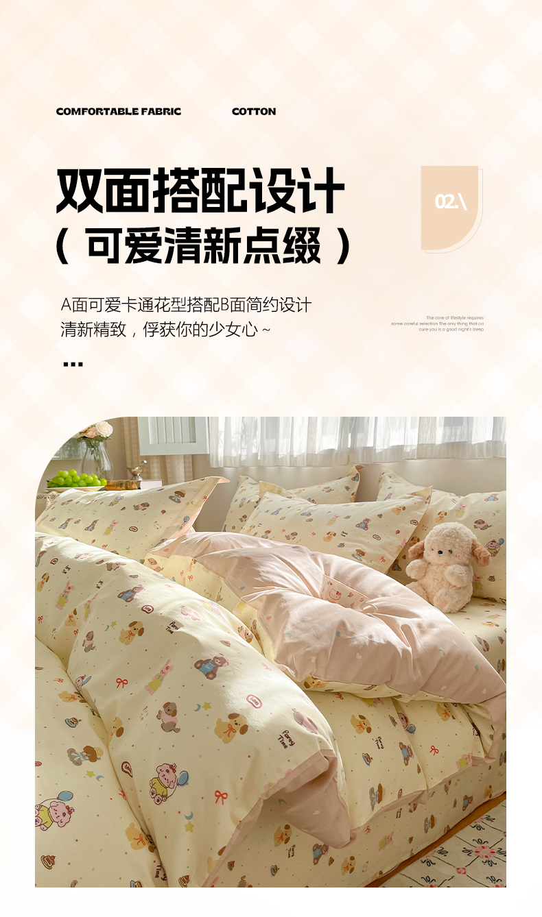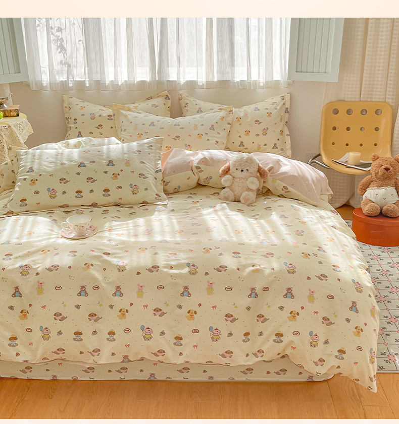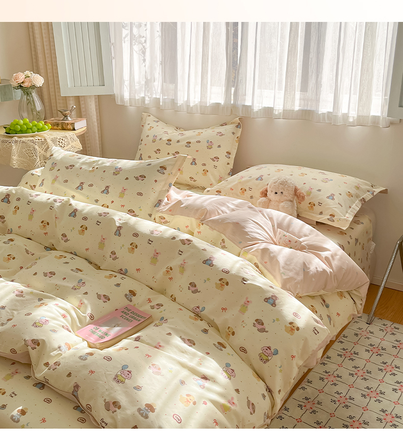 当前位置: 91家纺网 > 商品网购 > 床品套件 > 四件套 > 全棉普通四件套 > 花梦欣 2026新款全棉印花系列简约卡通款四件套 韩系小萌物