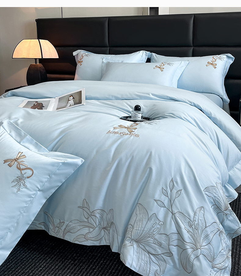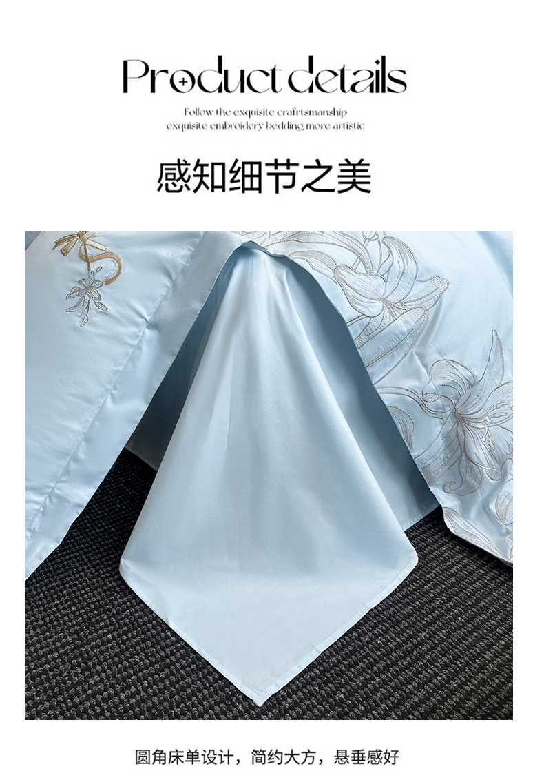 当前位置: 91家纺网 > 商品网购 > 床品套件 > 四件套 > 长绒棉四件套 > 金牛座家纺 2026新款新疆长绒棉全棉纯棉刺绣四件套-百合系列 百合-浅蓝
