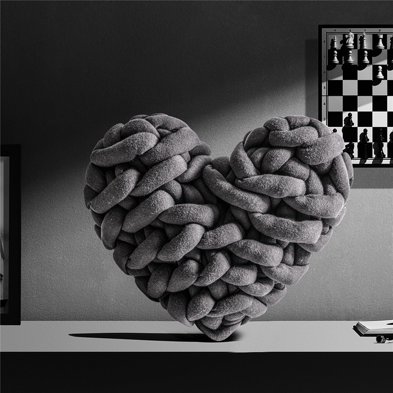 暖绵绵 新品哈特打结爱心抱枕针织靠枕抱枕靠垫 碳灰色