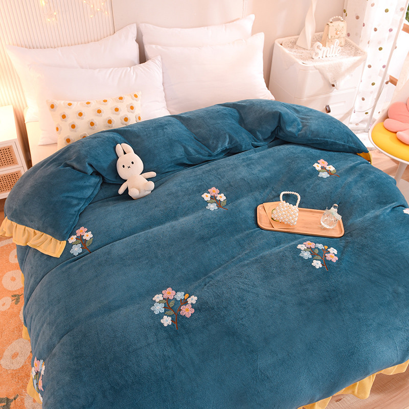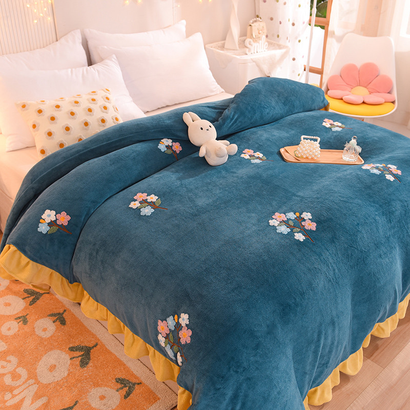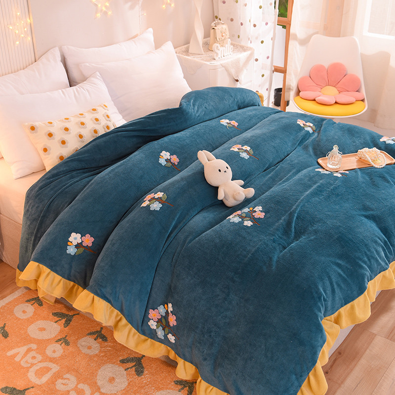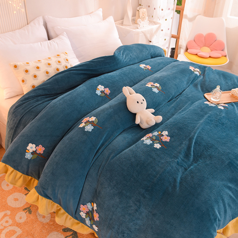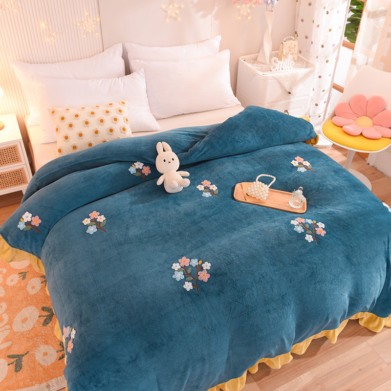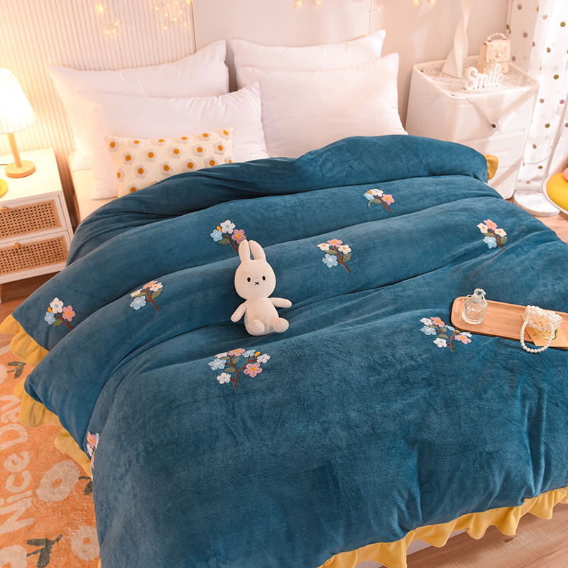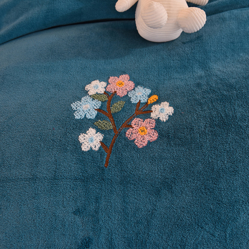• 91家纺网 家纺一手货源 找家纺 甜之梦 2025新款毛巾绣牛奶绒单被套 满天星宝石蓝