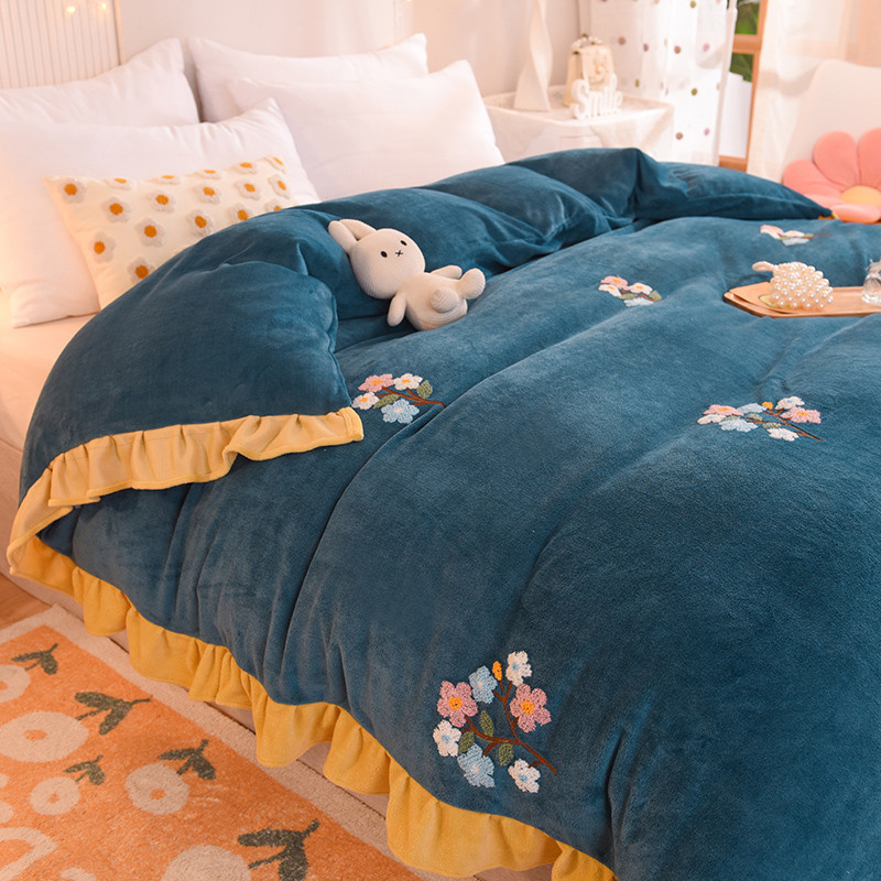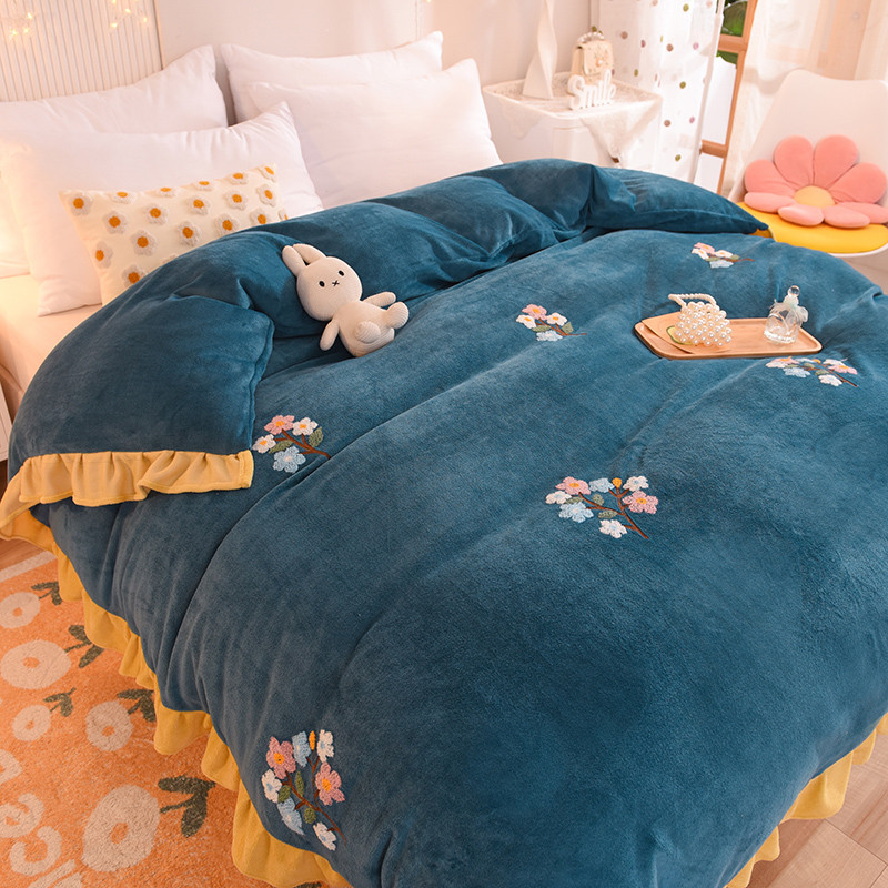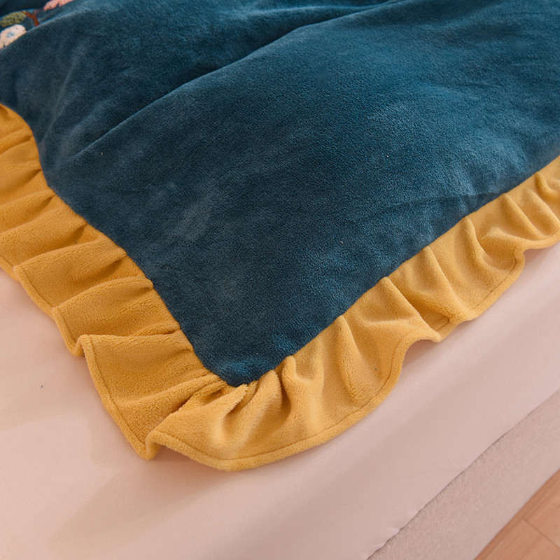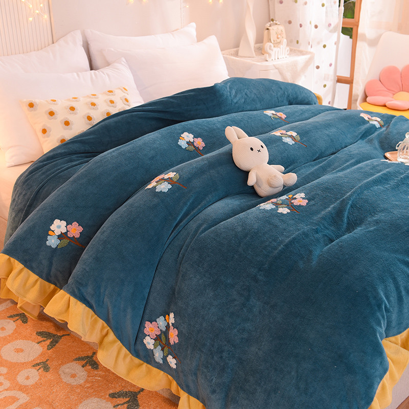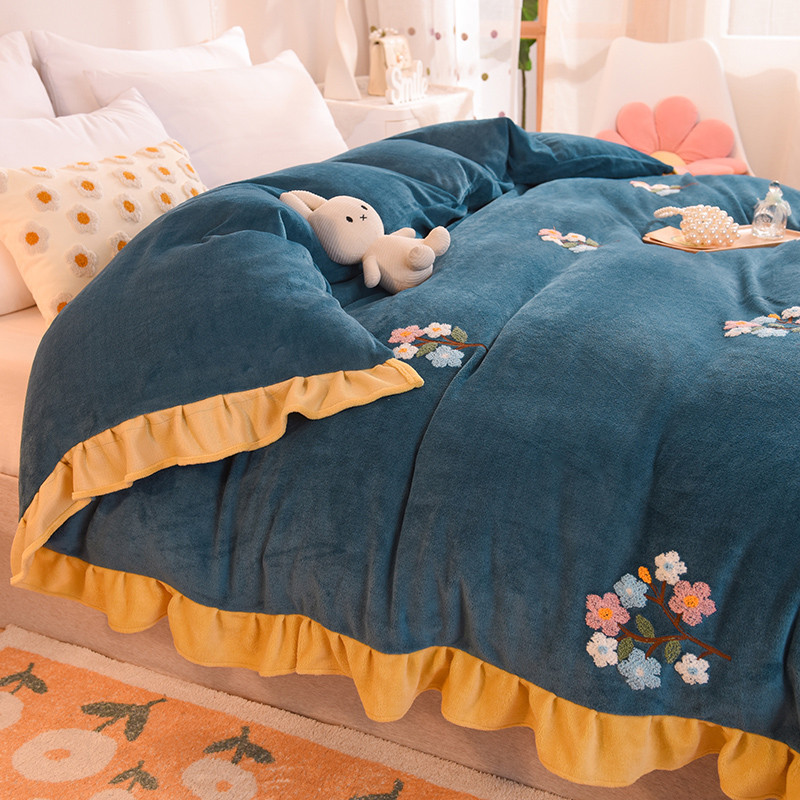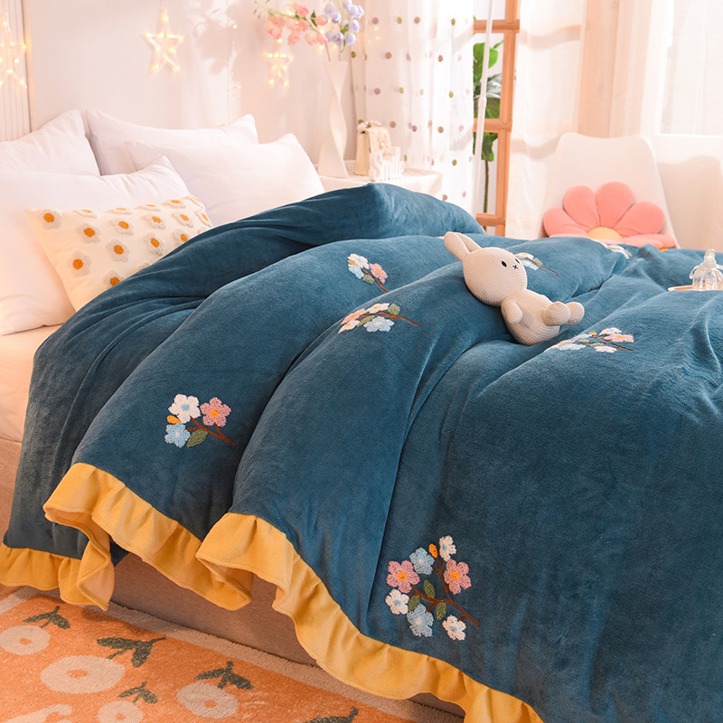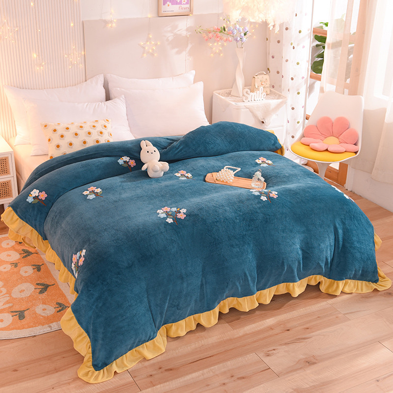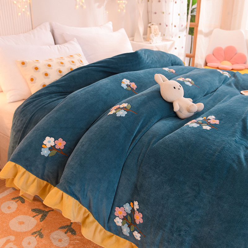 • 91家纺网 家纺一手货源 找家纺 甜之梦 2025新款毛巾绣牛奶绒单被套 满天星宝石蓝