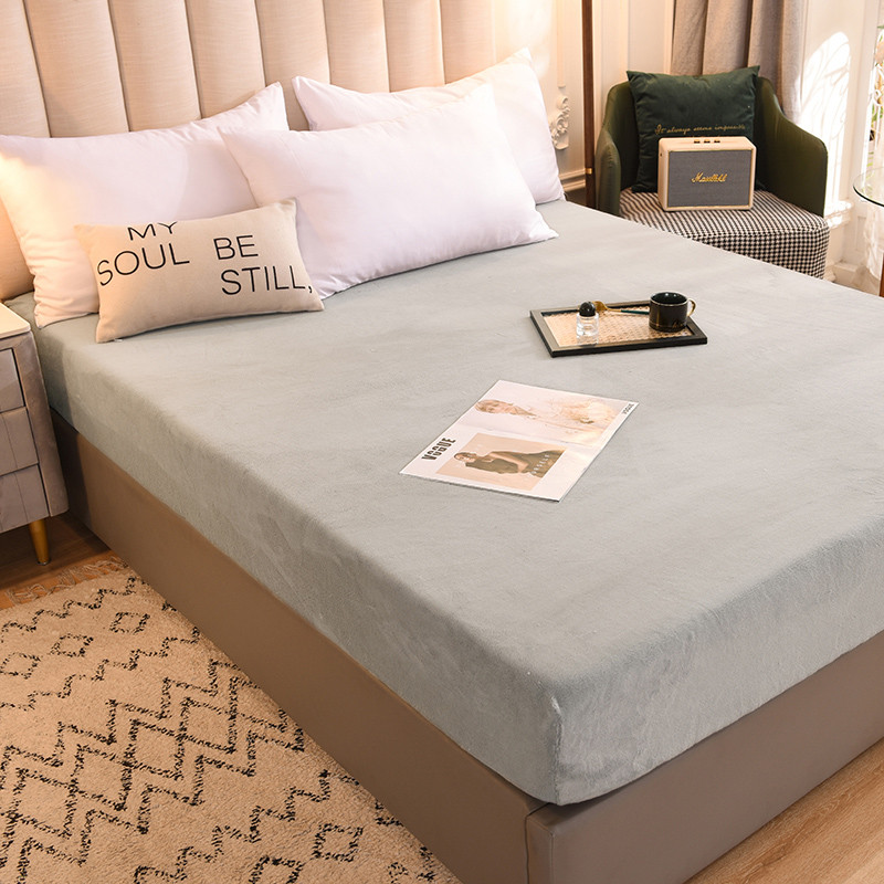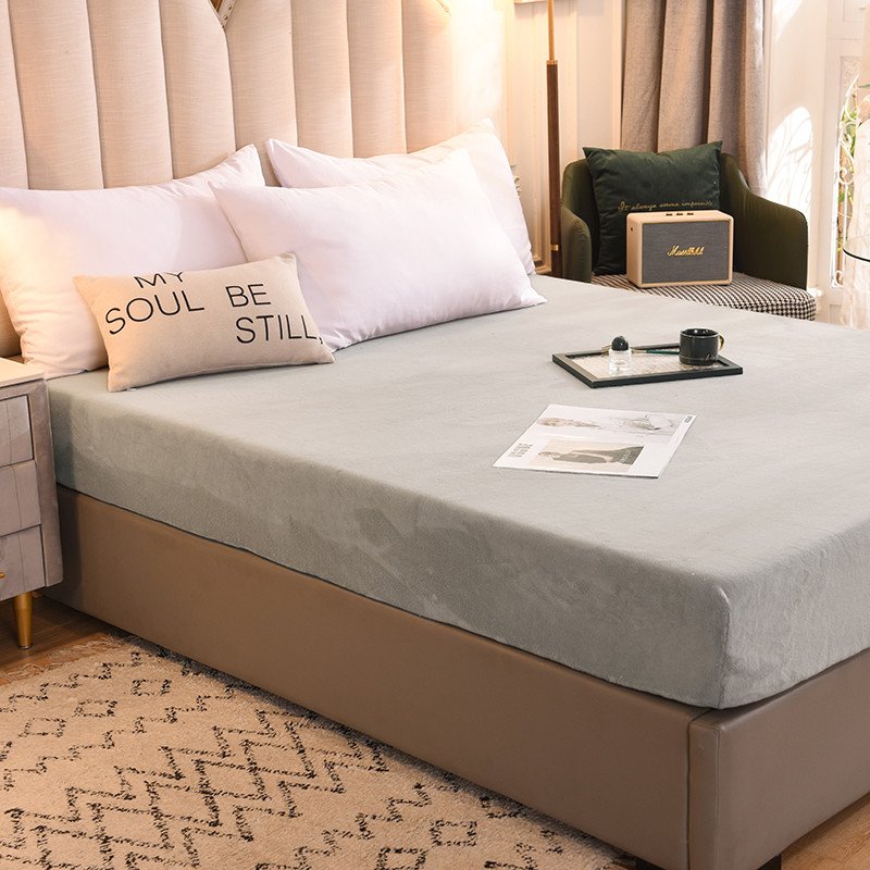 总甜之梦家纺 2025新款韩版泥点绒单床笠(任何尺寸异型缺角都可定做),贵族蓝,玛瑙绿,泥点绒淡粉,优雅灰