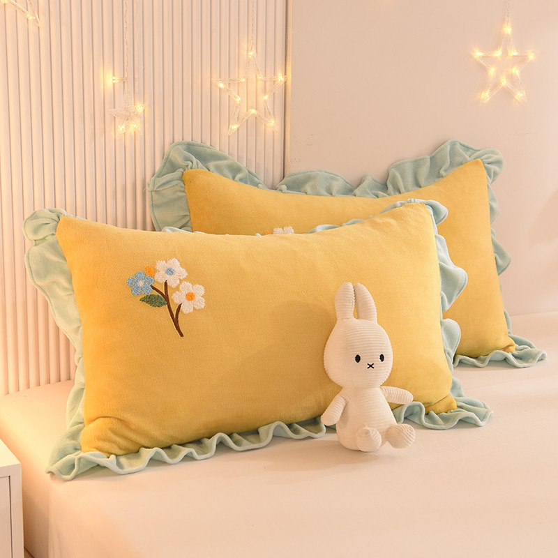 商品名称:甜之梦 2025新款毛巾绣牛奶绒单枕套 满天星嫩黄