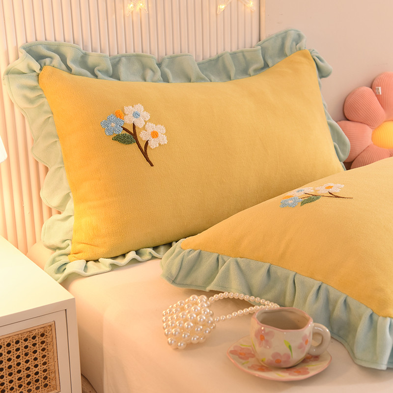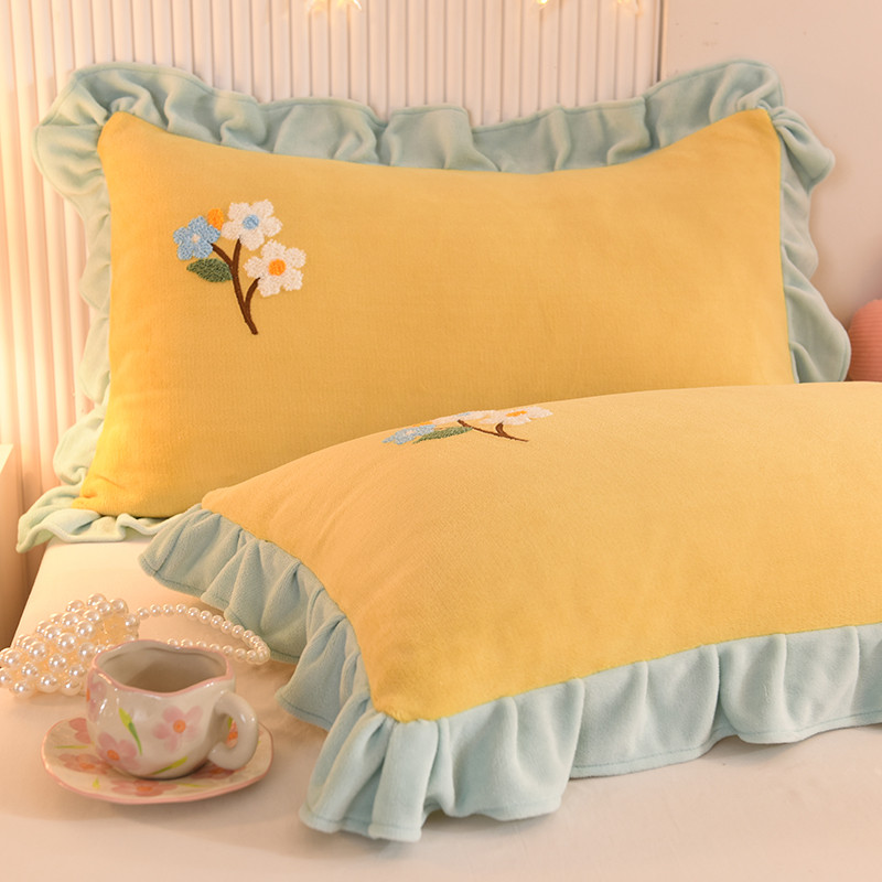 甜之梦 2025新款毛巾绣牛奶绒单枕套 满天星嫩黄