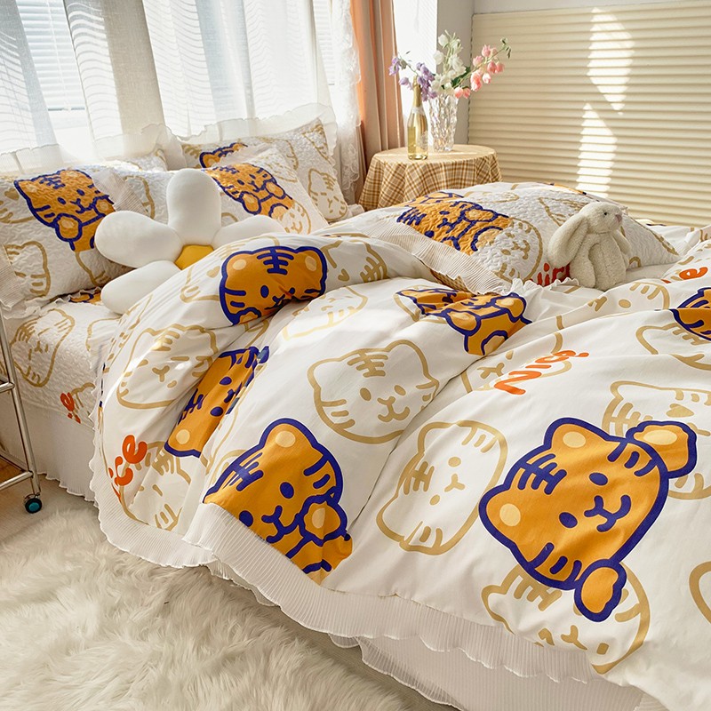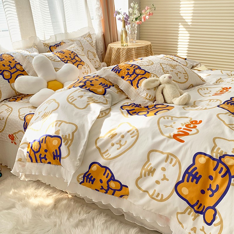仟网汇 2022新款全棉喷气13070床盖三件套四件套顽皮虎