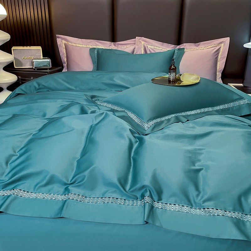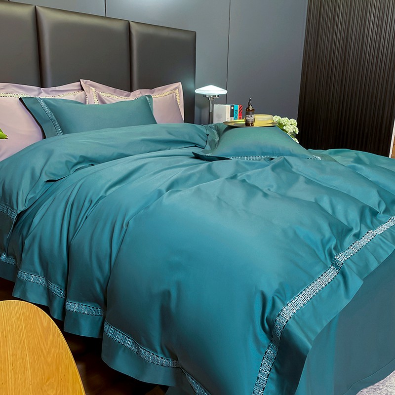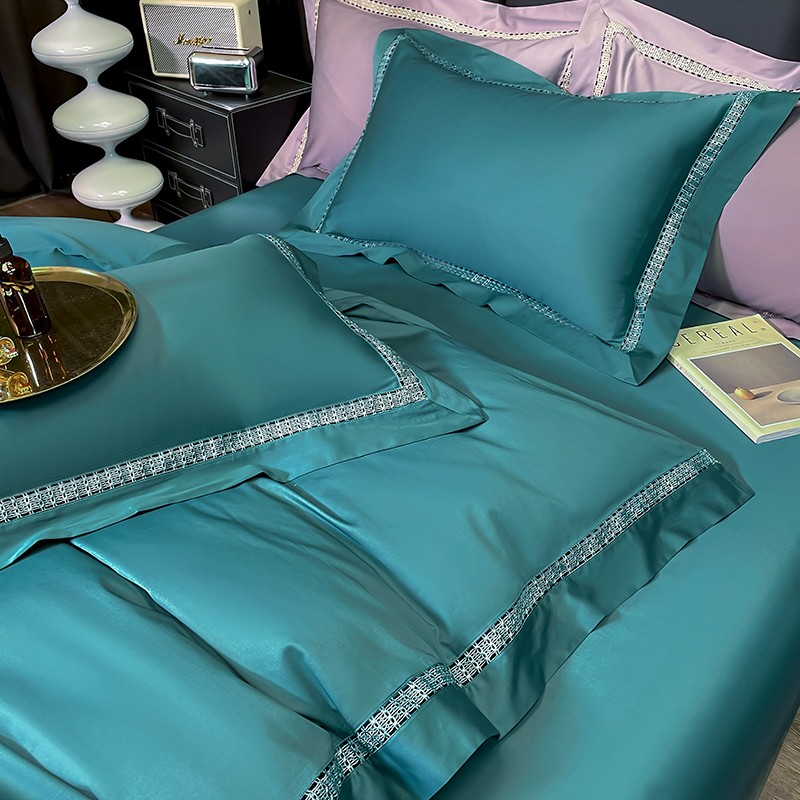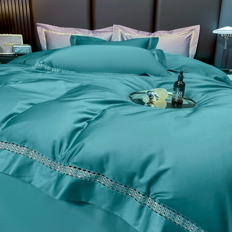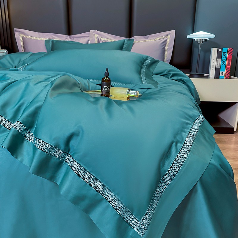 商品名称:栩裕纺织 2022新款锦棉镂空四件套 卡瑞-孔雀蓝