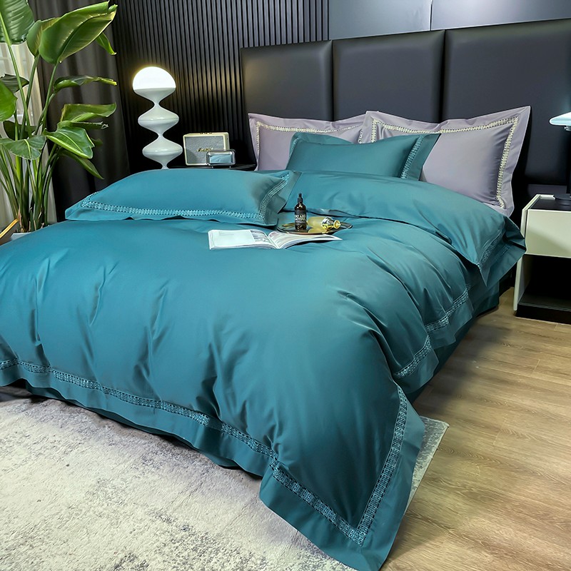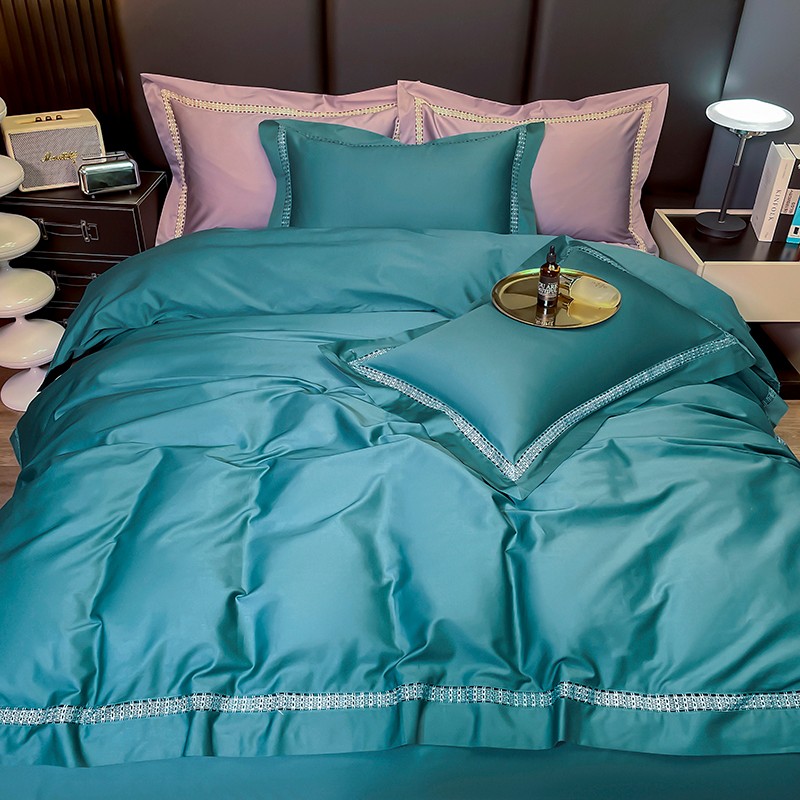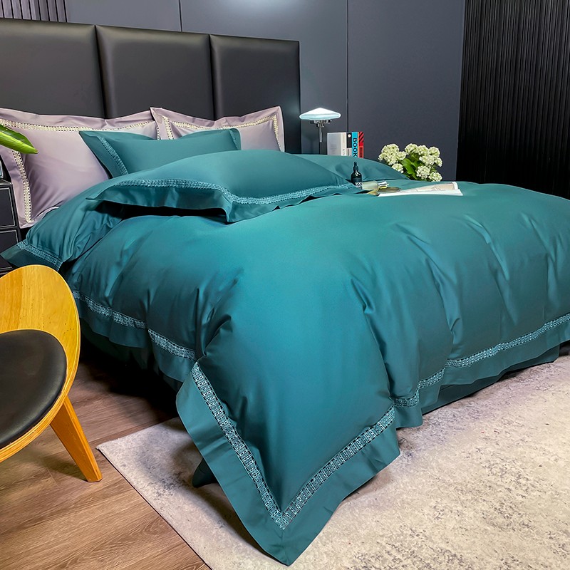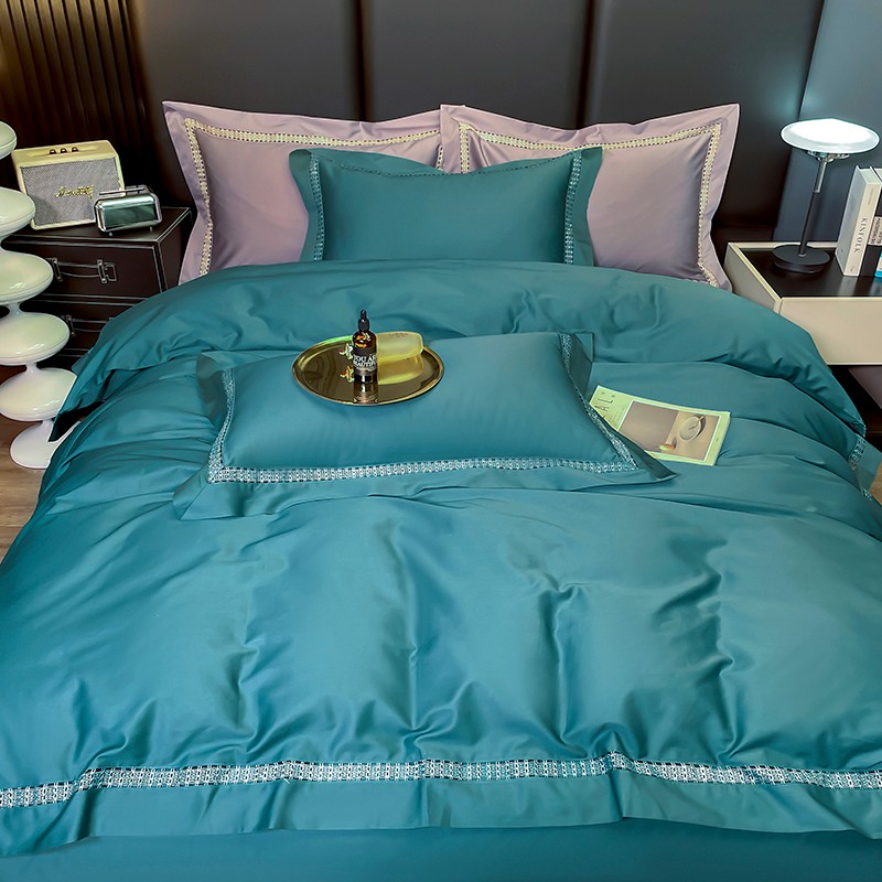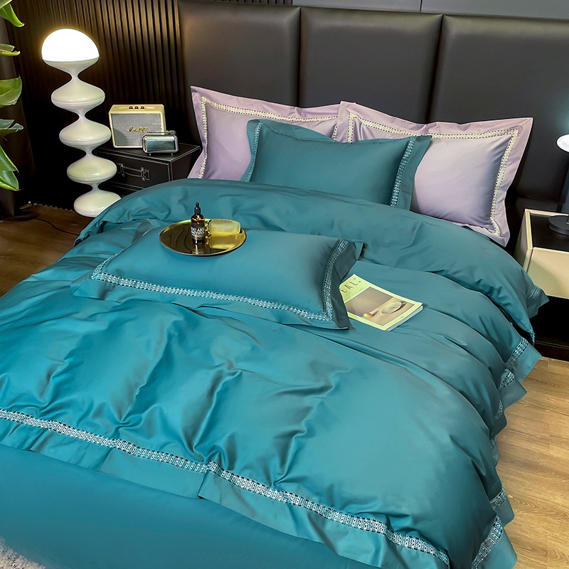 商品名称:栩裕纺织 2022新款锦棉镂空四件套 卡瑞-孔雀蓝