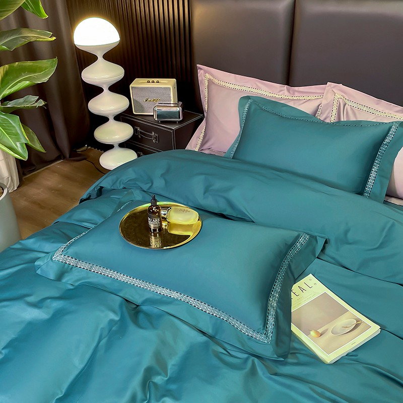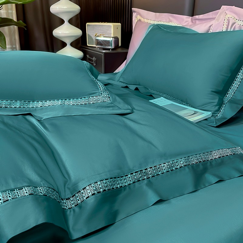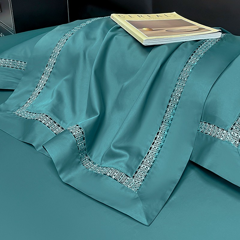 栩裕纺织 2022新款锦棉镂空四件套 卡瑞-孔雀蓝