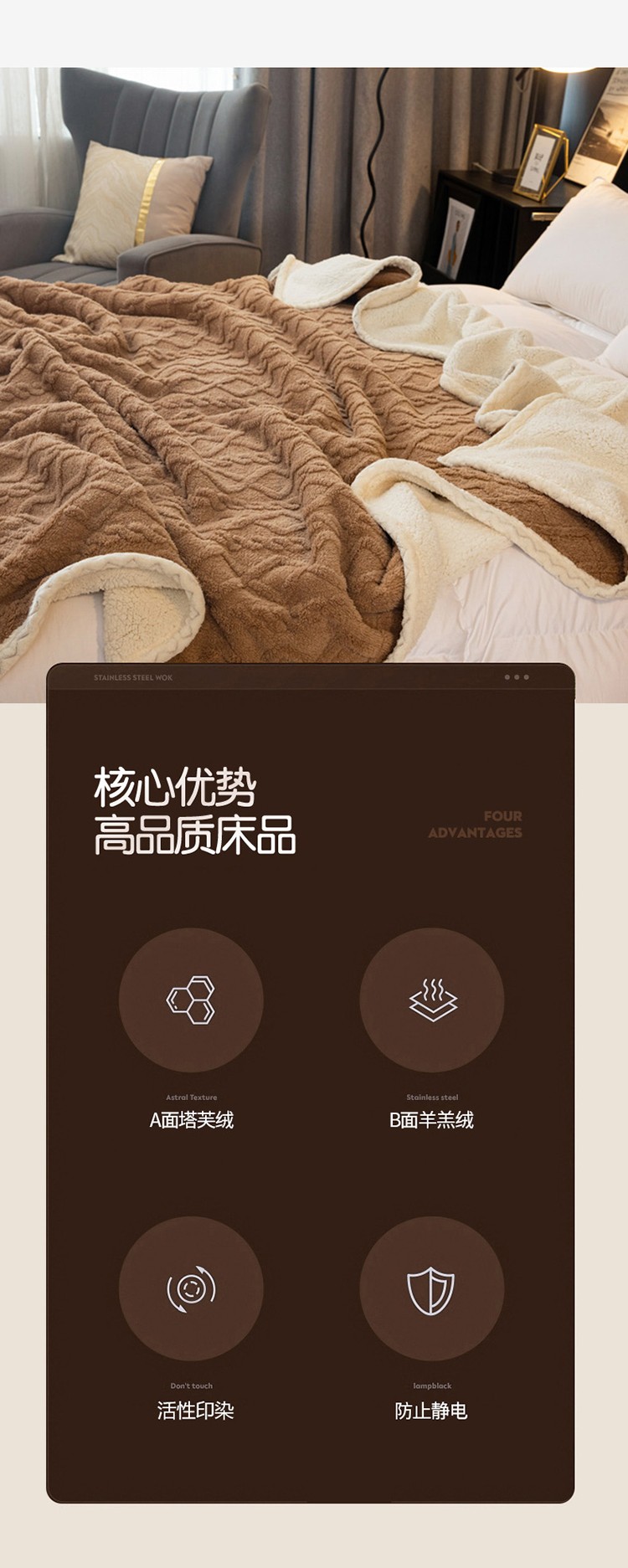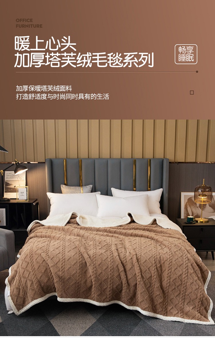 卡琪曼 2022双面塔芙绒羊羔绒毛毯办公室午睡盖毯子 咖色