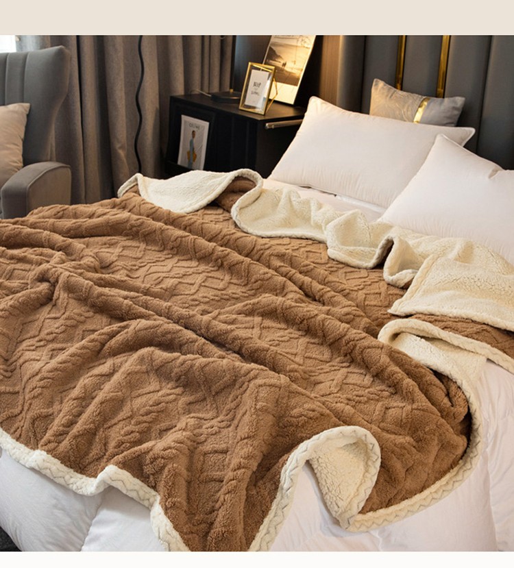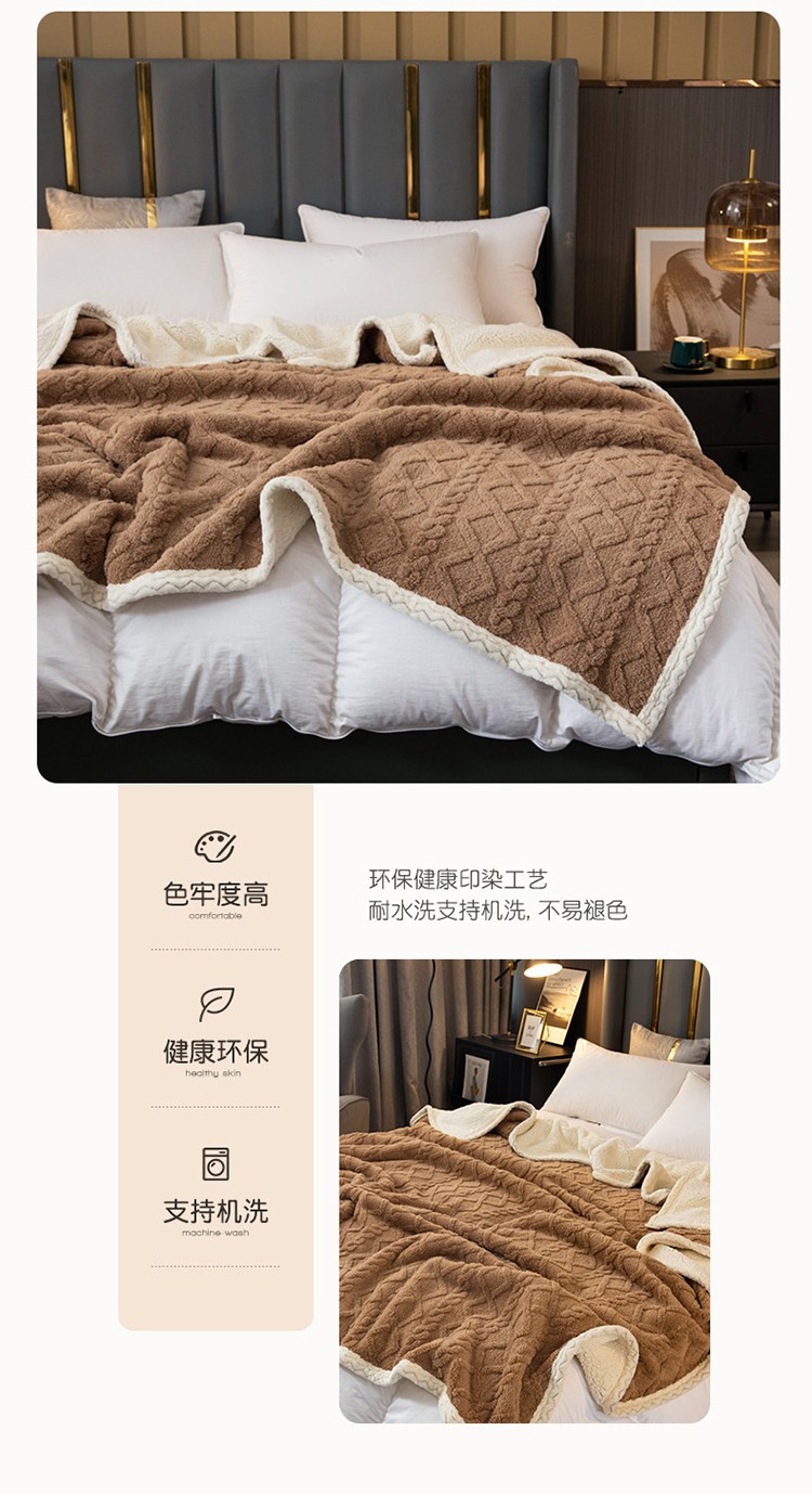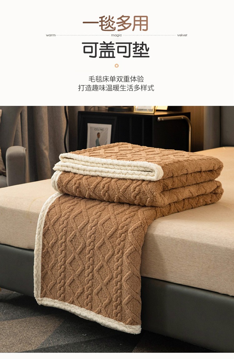 (总)卡琪曼 2025新款阳离子提花羊羔绒毛毯盖毯毯子,军绿,粉色,米白,浅灰,浅紫色,深灰,驼色,雾蓝