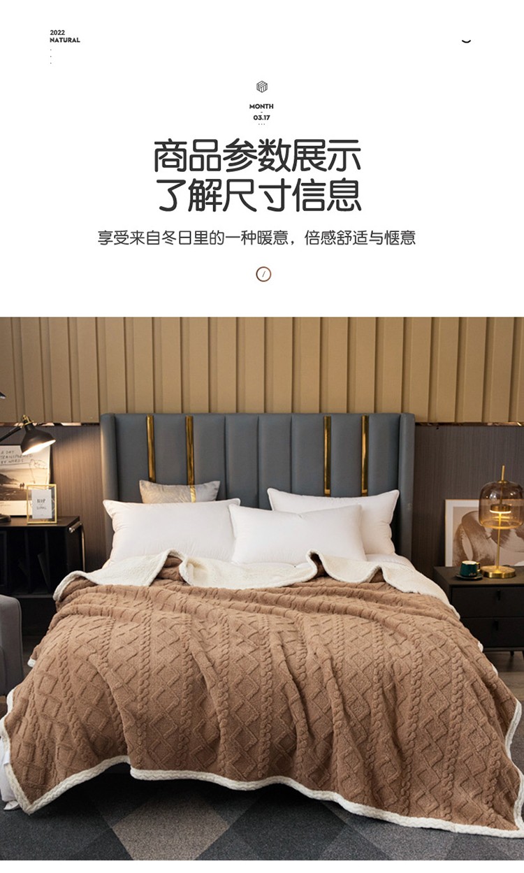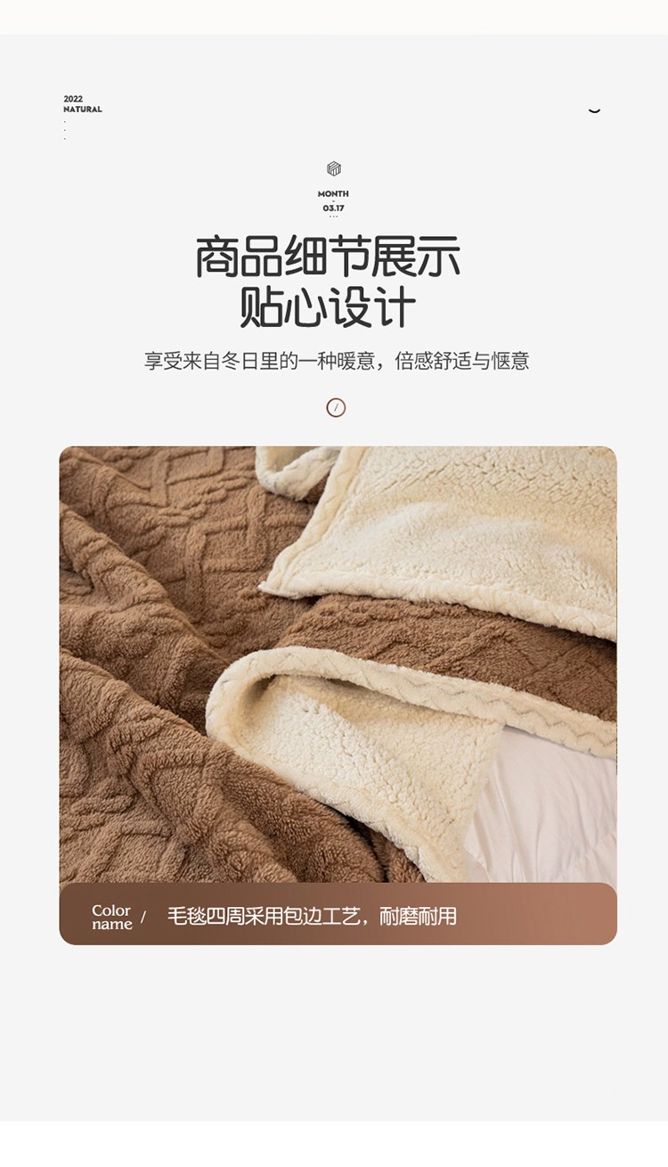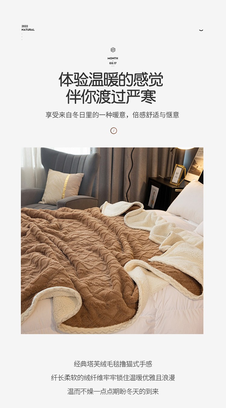 商品名称:卡琪曼 2022双面塔芙绒羊羔绒毛毯办公室午睡盖毯子 咖色