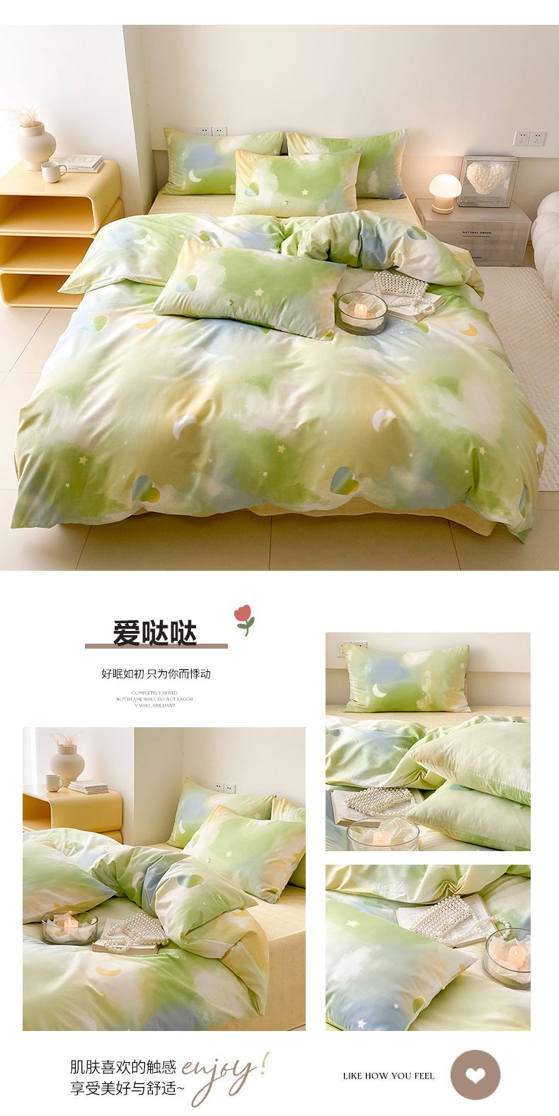 当前位置: 91家纺网 > 商品网购 > 床品套件 > 四件套 > 全棉普通四件套 > 川悦生活 2024爆款13372全棉卡通小清新四件套三件套 爱哒哒