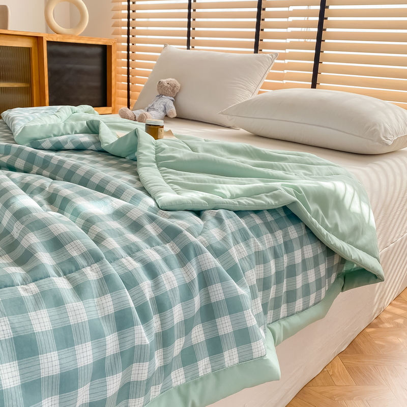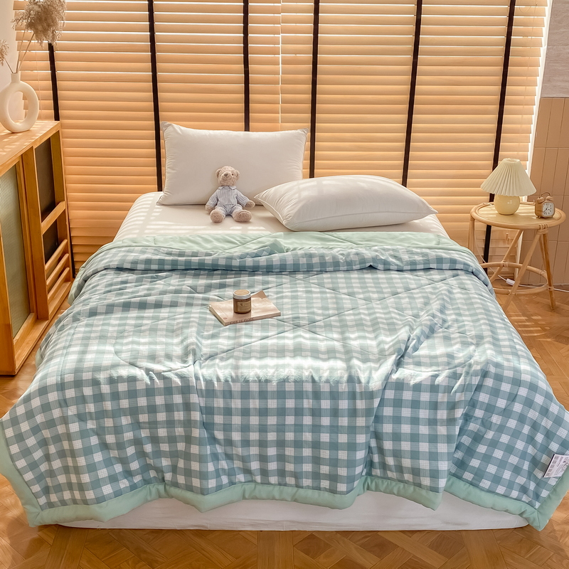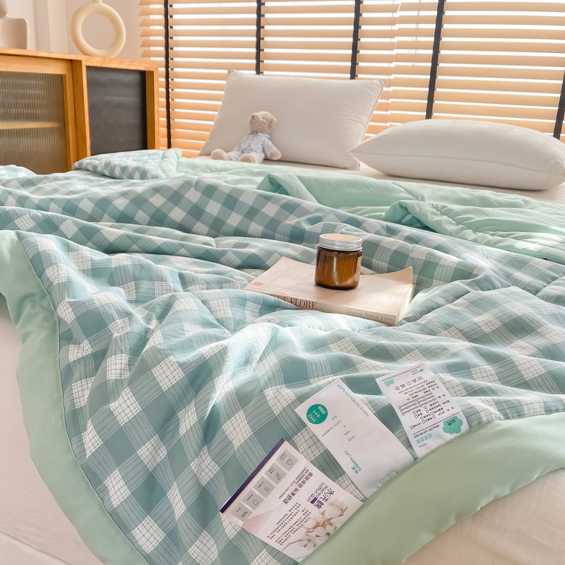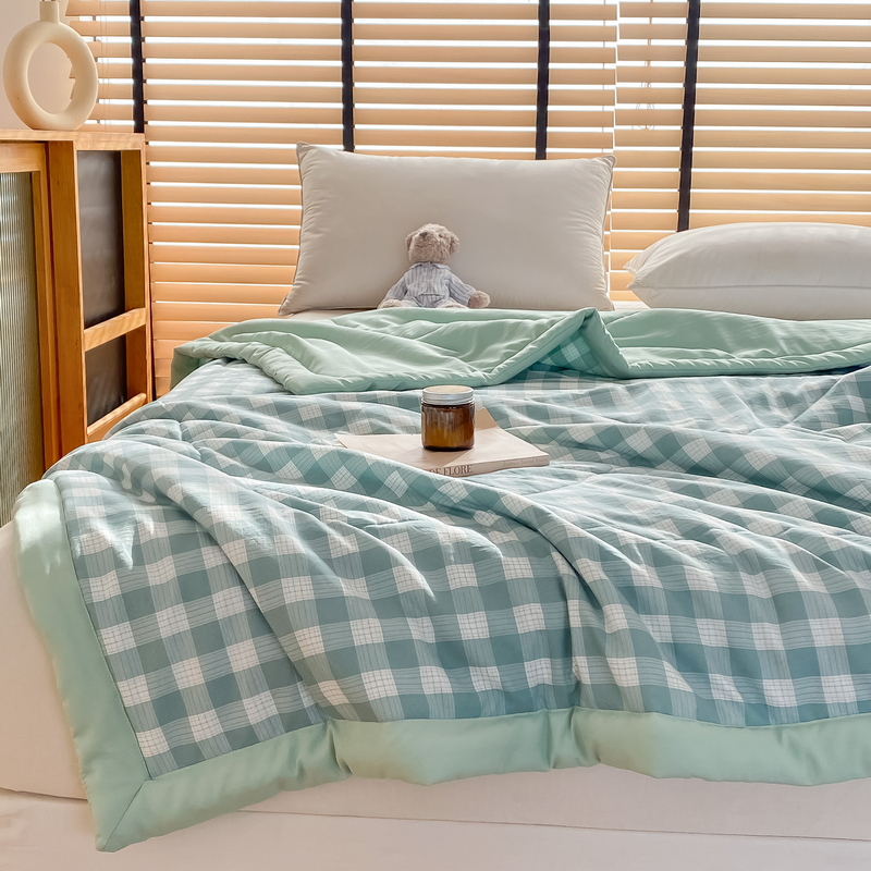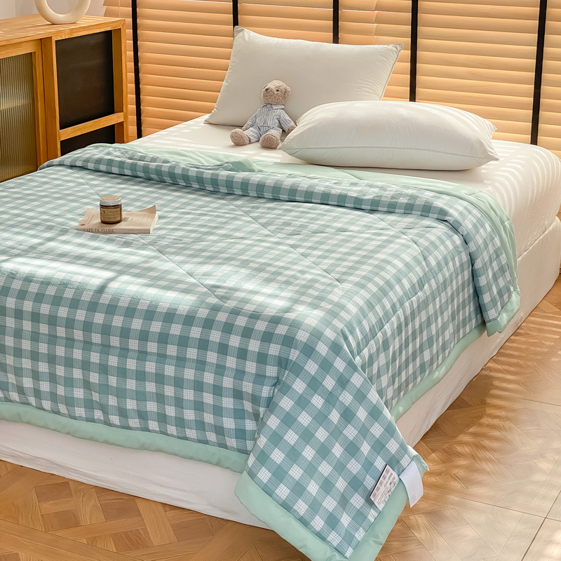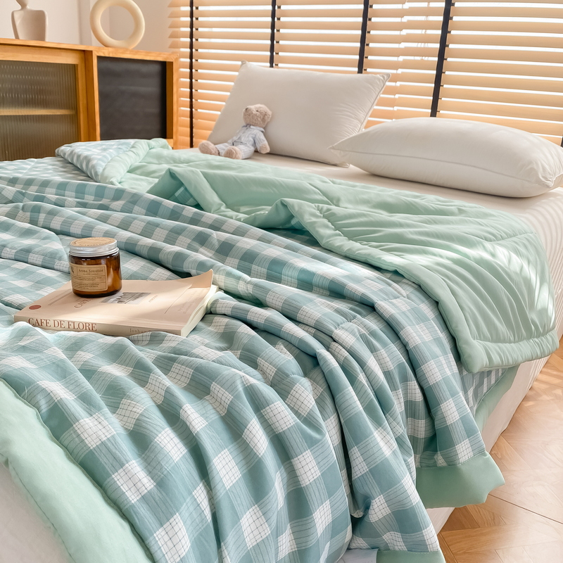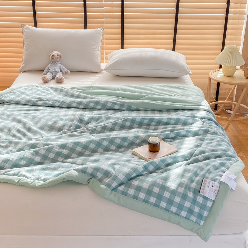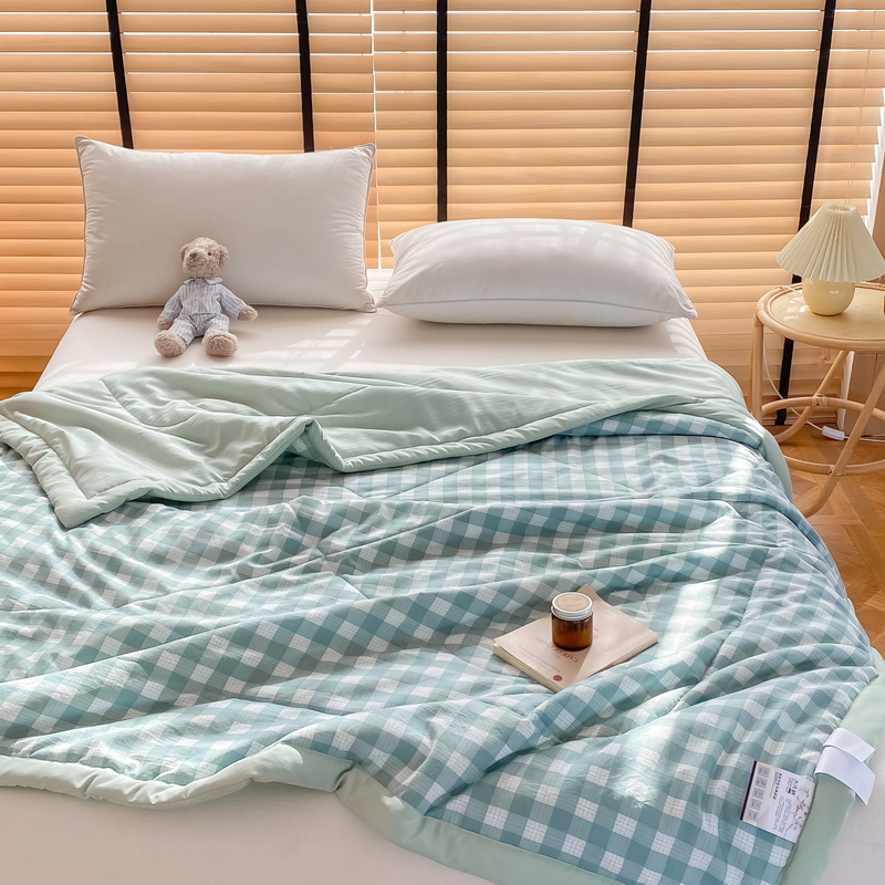 梦恬佳2024新款无印风水洗棉夏被-绿小格