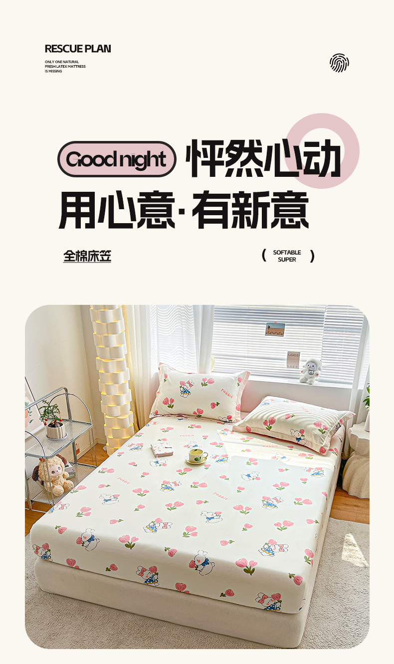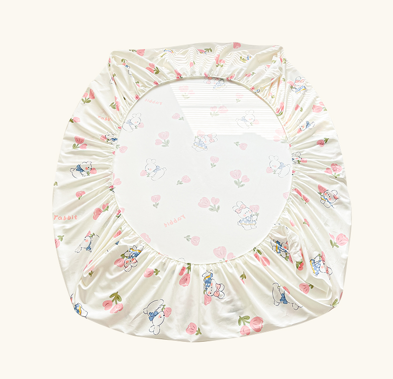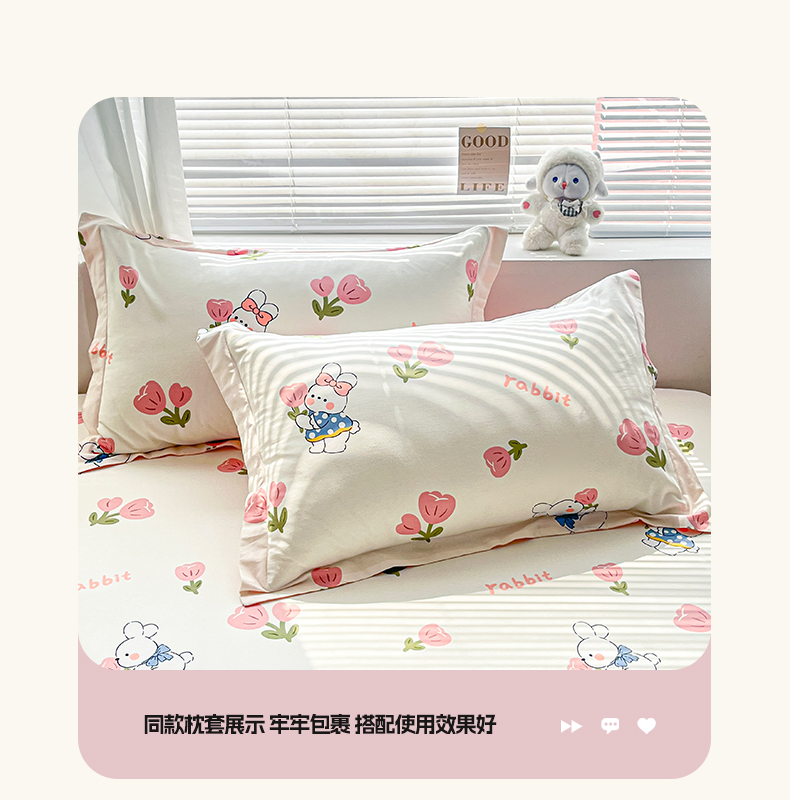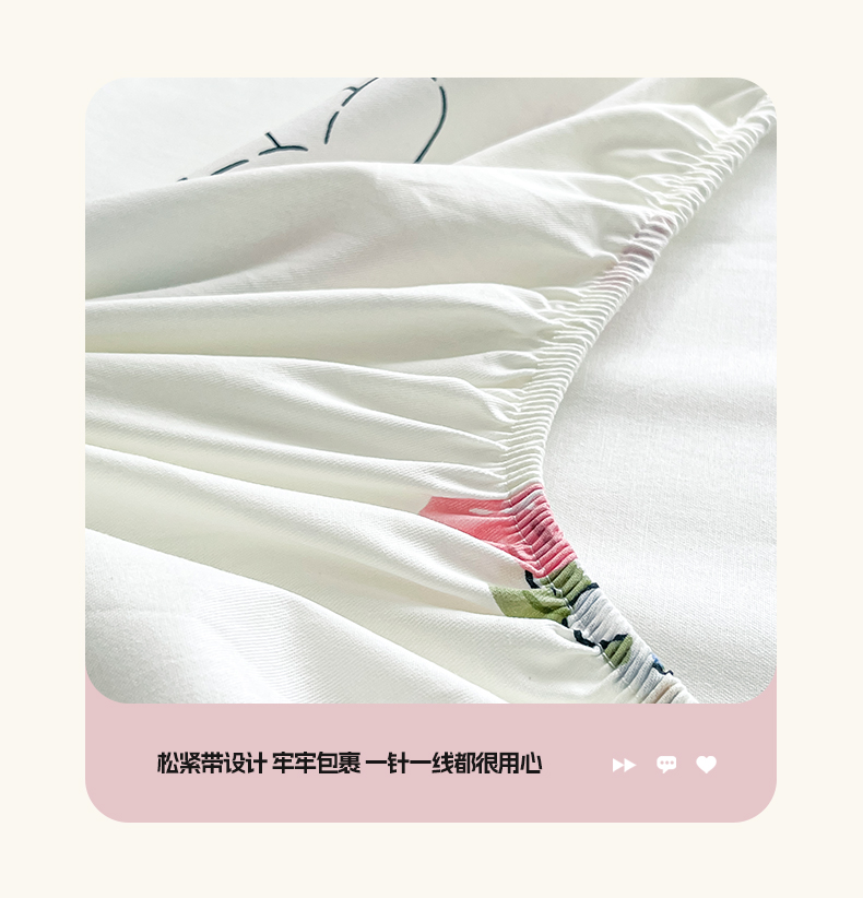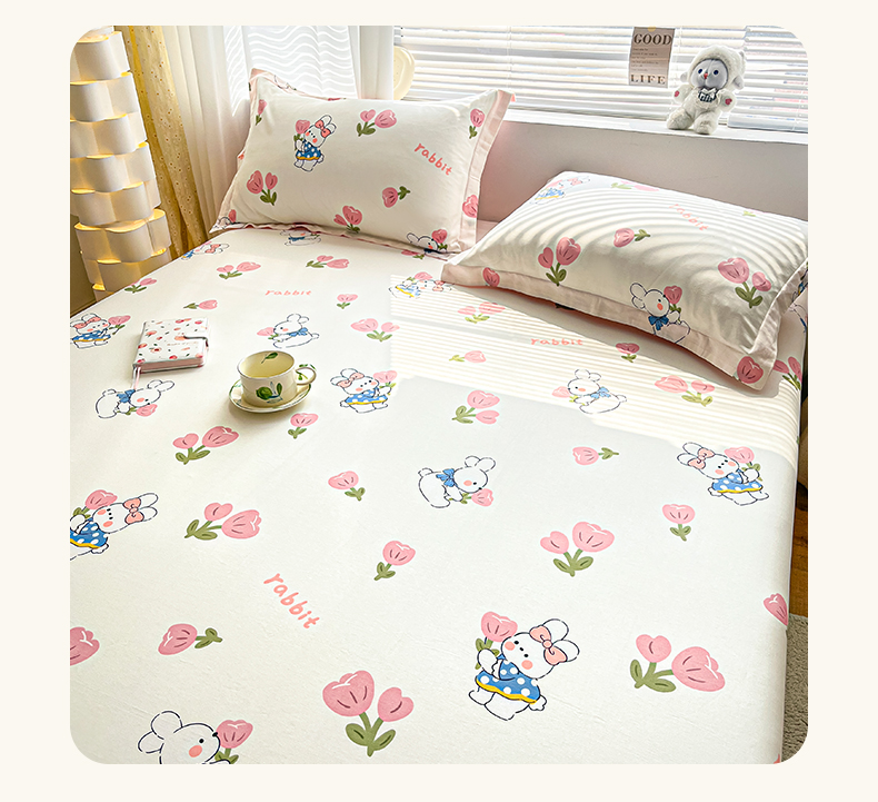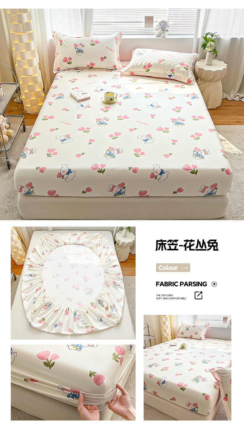 • 91家纺网 家纺一手货源 找家纺 涵宸家纺 2024新款全棉小清新印花单品套件--单床笠 床笠-花丛兔