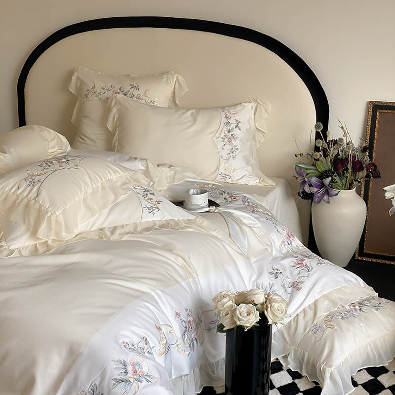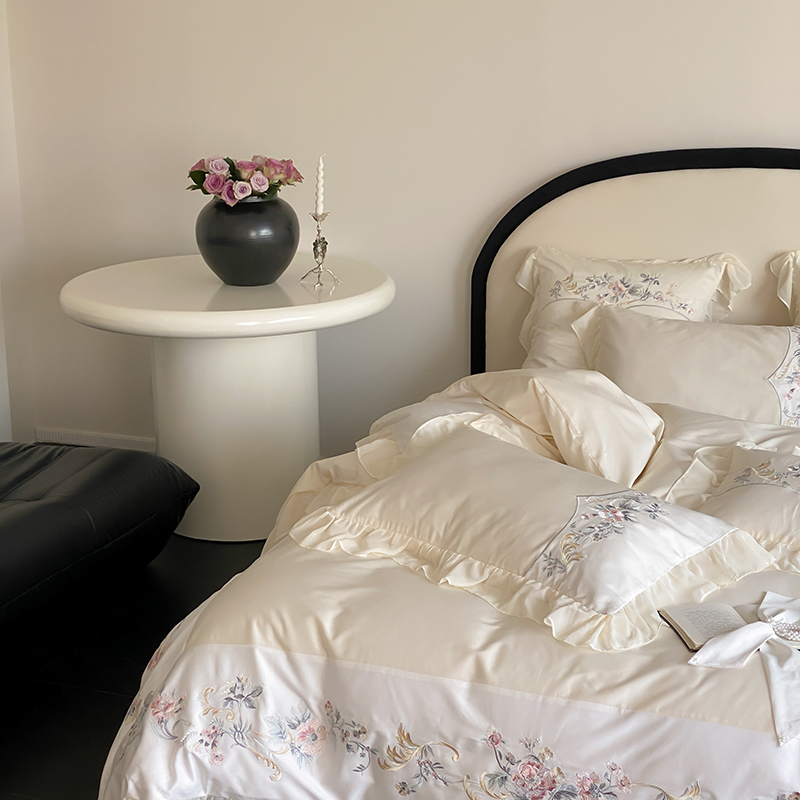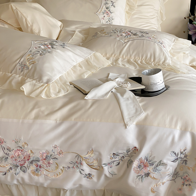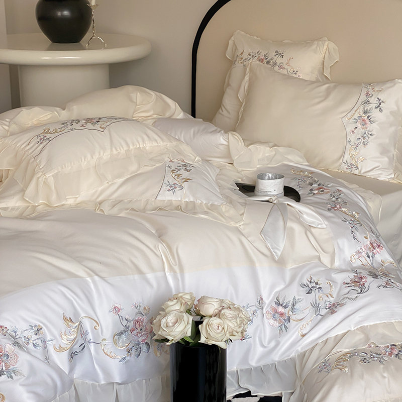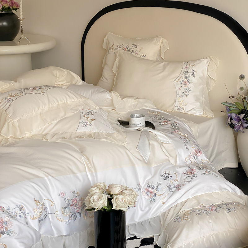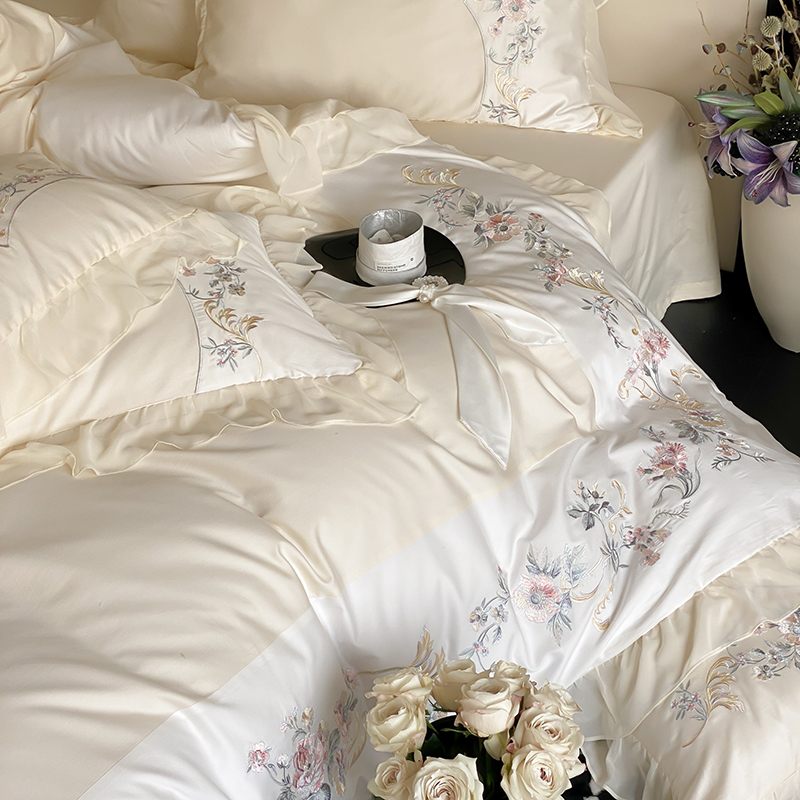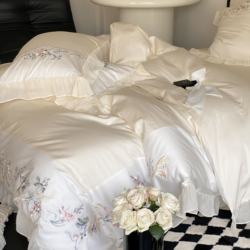 品家居 2025新款全棉100支长绒棉刺绣四件套-夏洛特 浅香槟