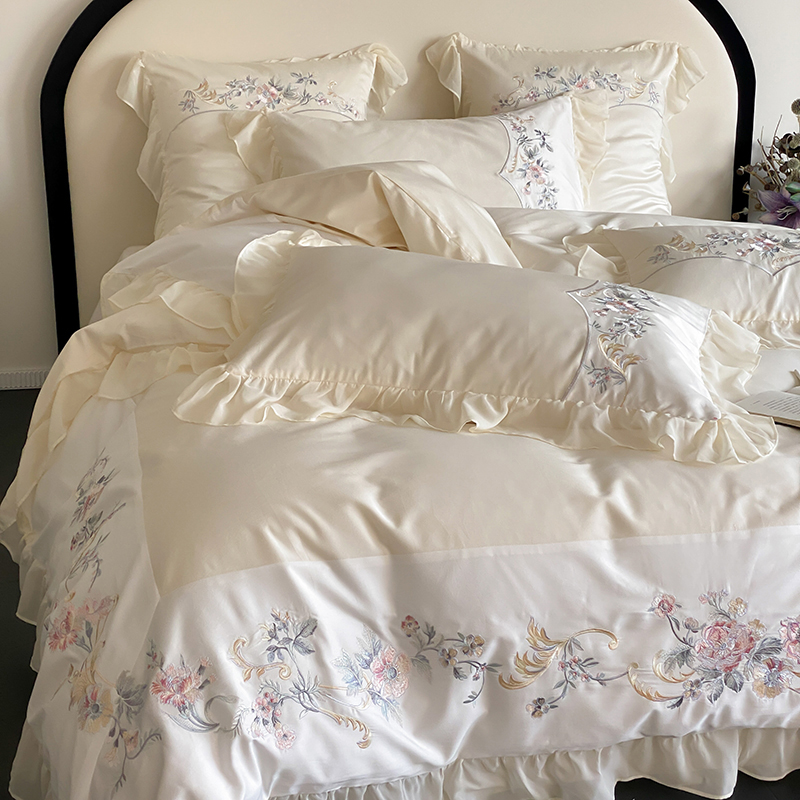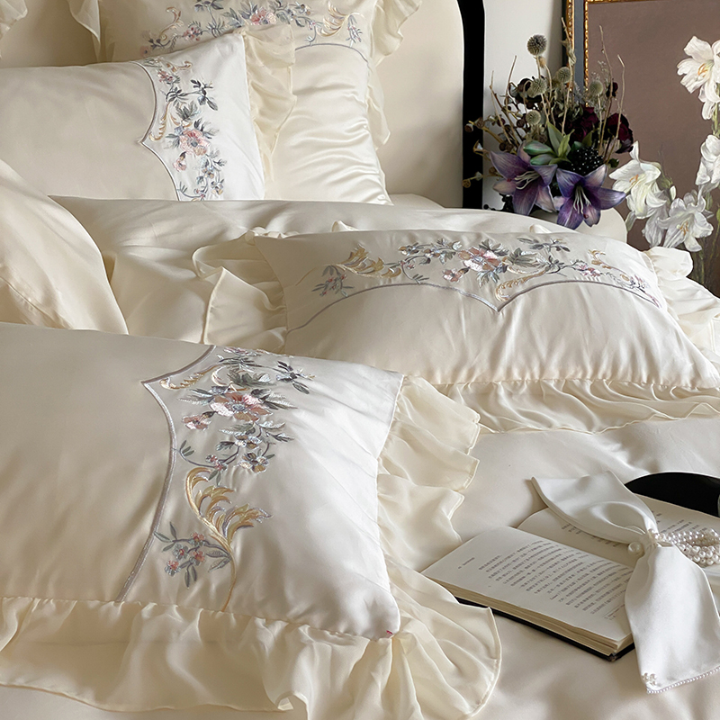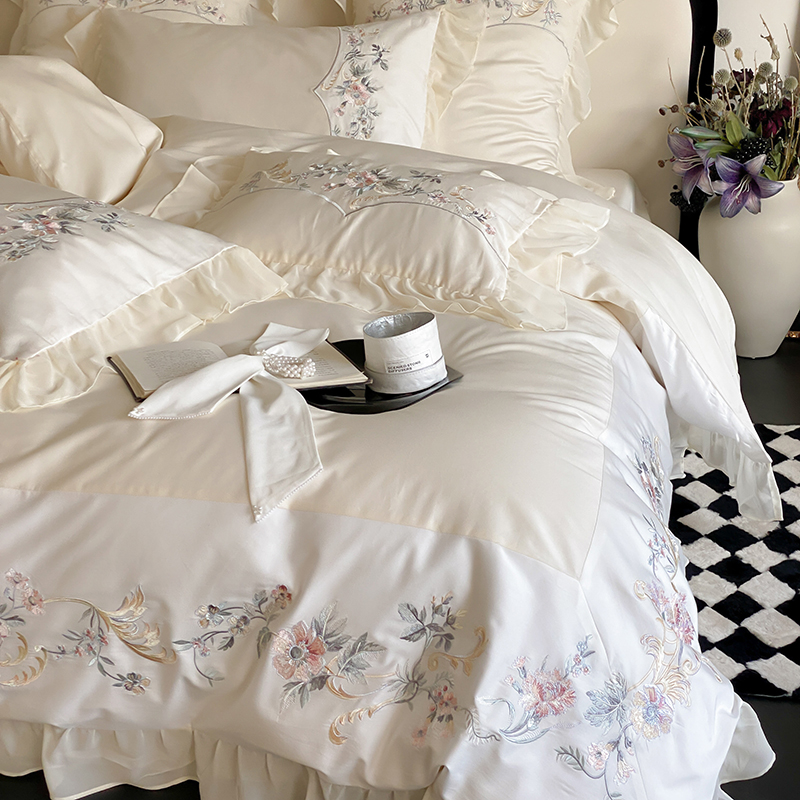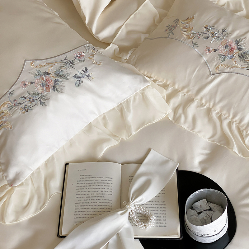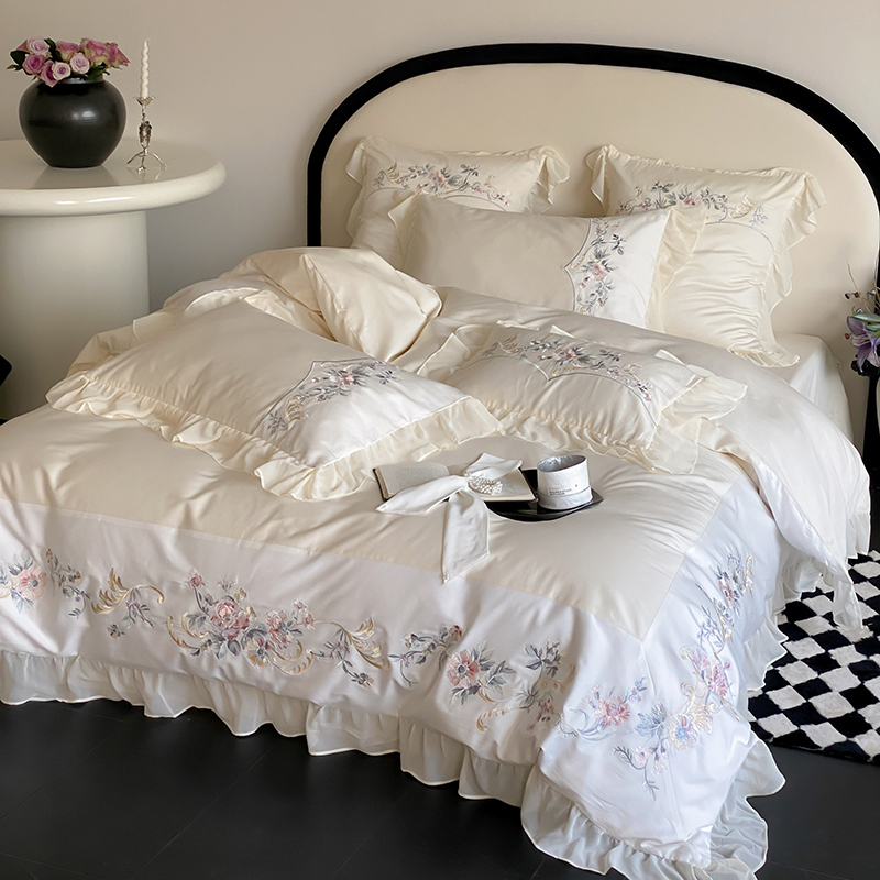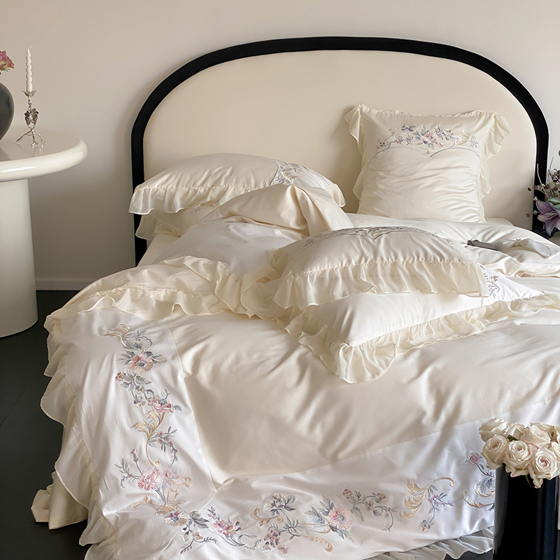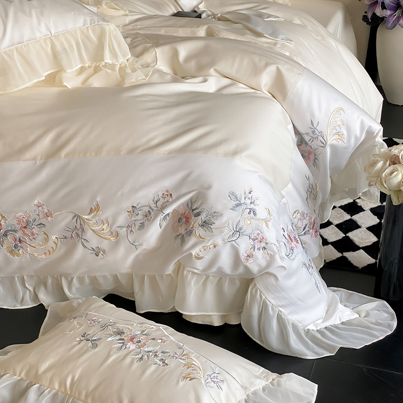 品家居 2025新款全棉100支长绒棉刺绣四件套-夏洛特 浅香槟