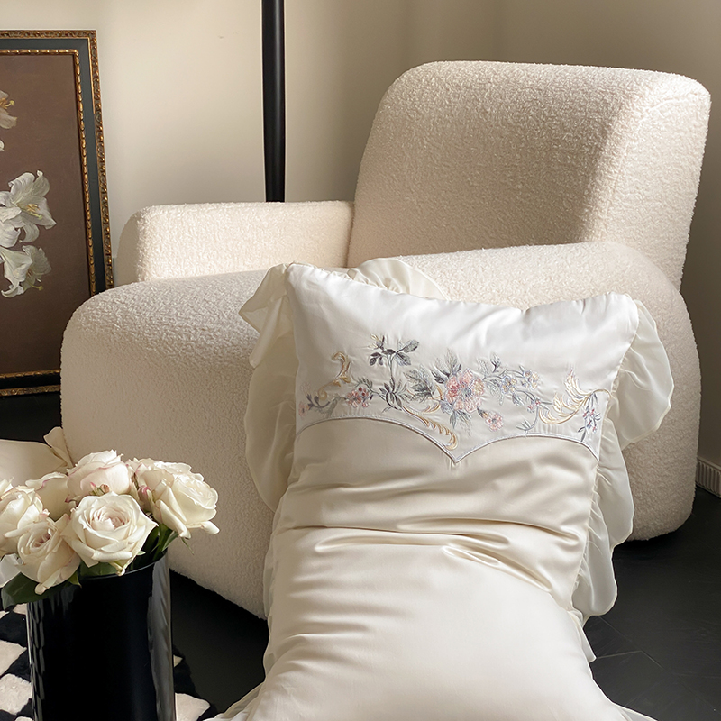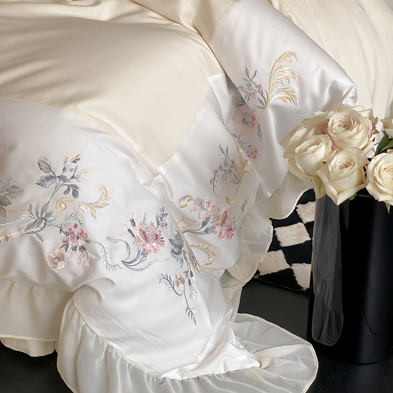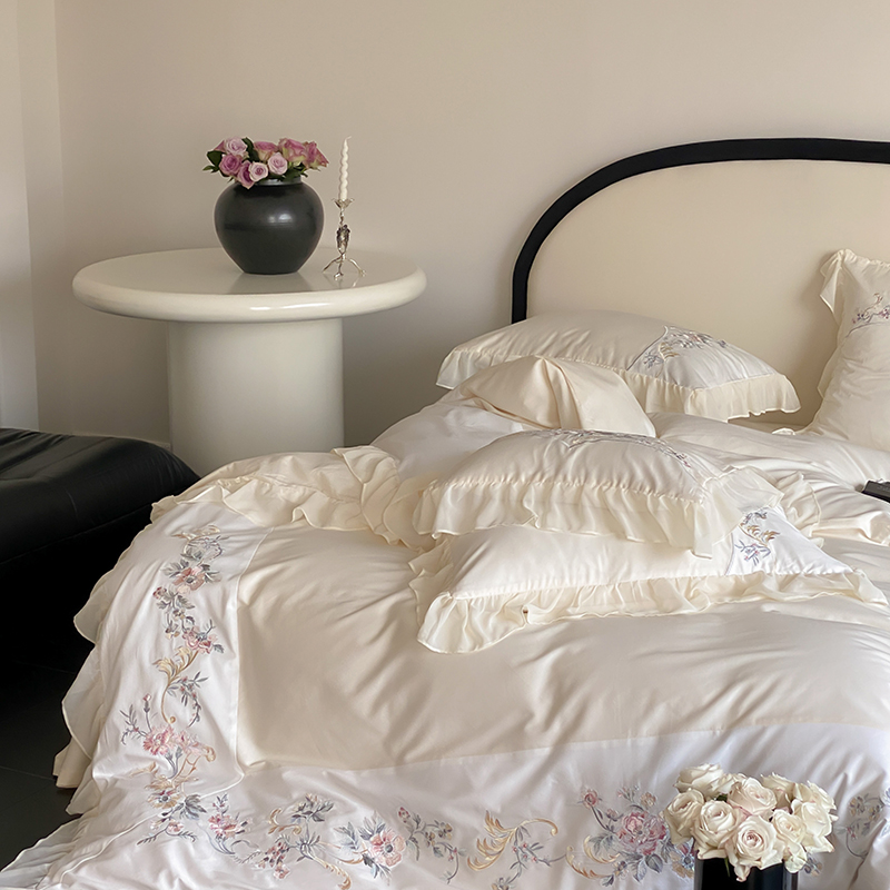 商品名称:品家居 2025新款全棉100支长绒棉刺绣四件套-夏洛特 浅香槟