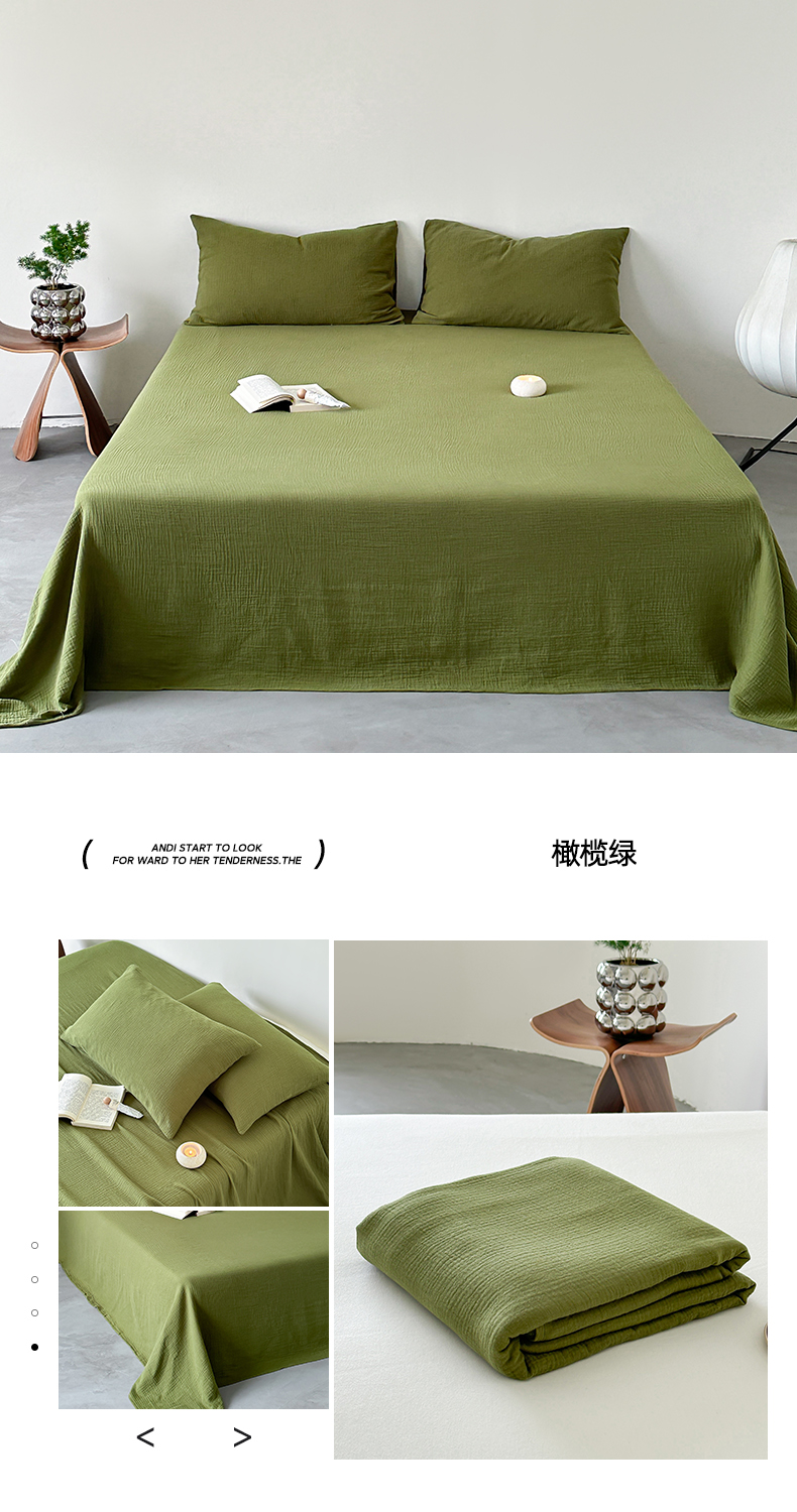 商品名称:山舍家居 2024新款纯色全棉双层皱皱纱单品系列--单床单 橄榄绿