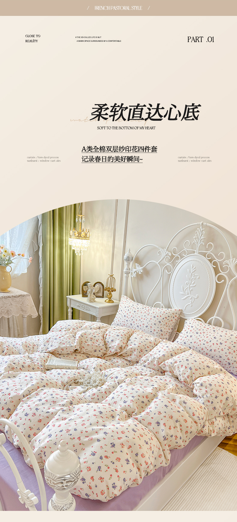 当前位置: 91家纺网 > 商品网购 > 床品套件 > 四件套 > 双层纱四件套 > 麒豆豆 2024款全棉双层纱四件套小幸运