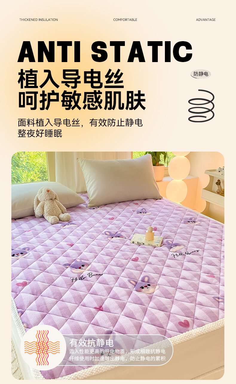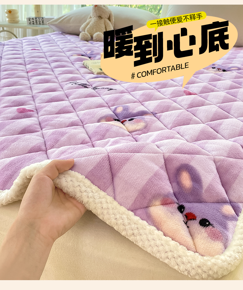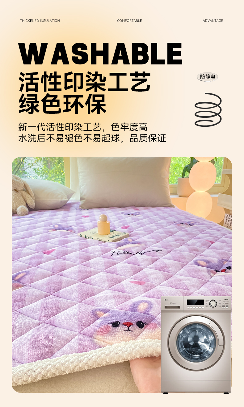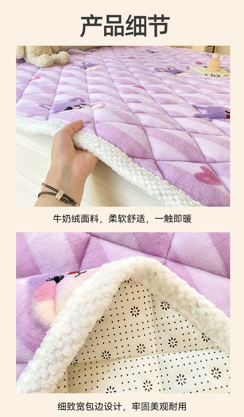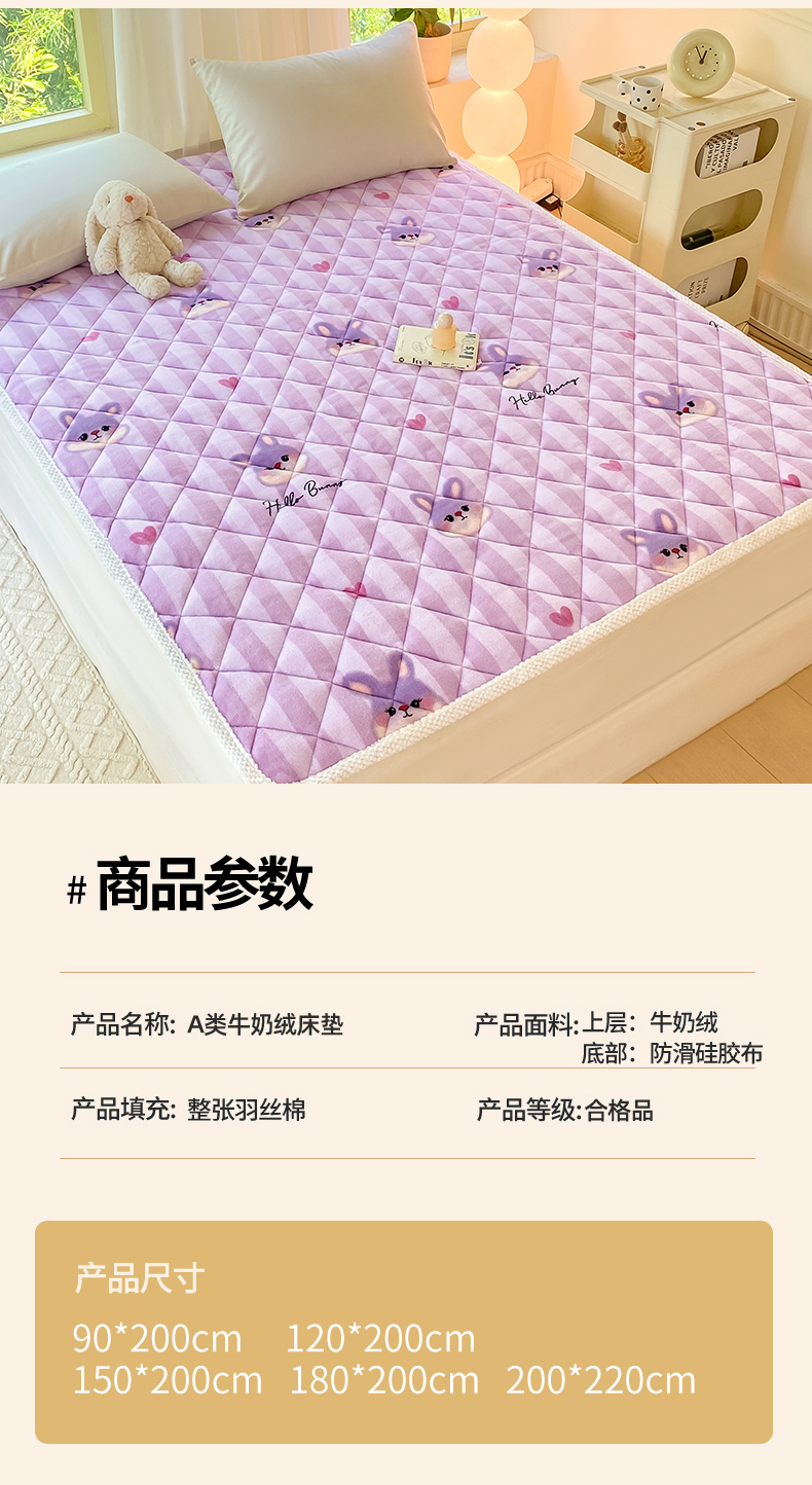 商品名称:正邦家纺 2024新款牛奶绒床垫小清新加厚床褥保暖宽包边可机洗床护垫床褥 可优米