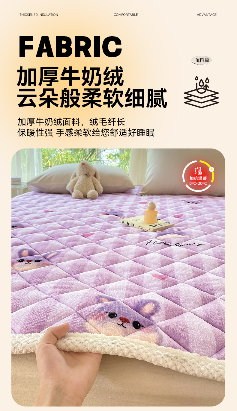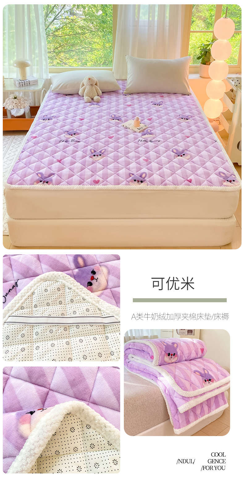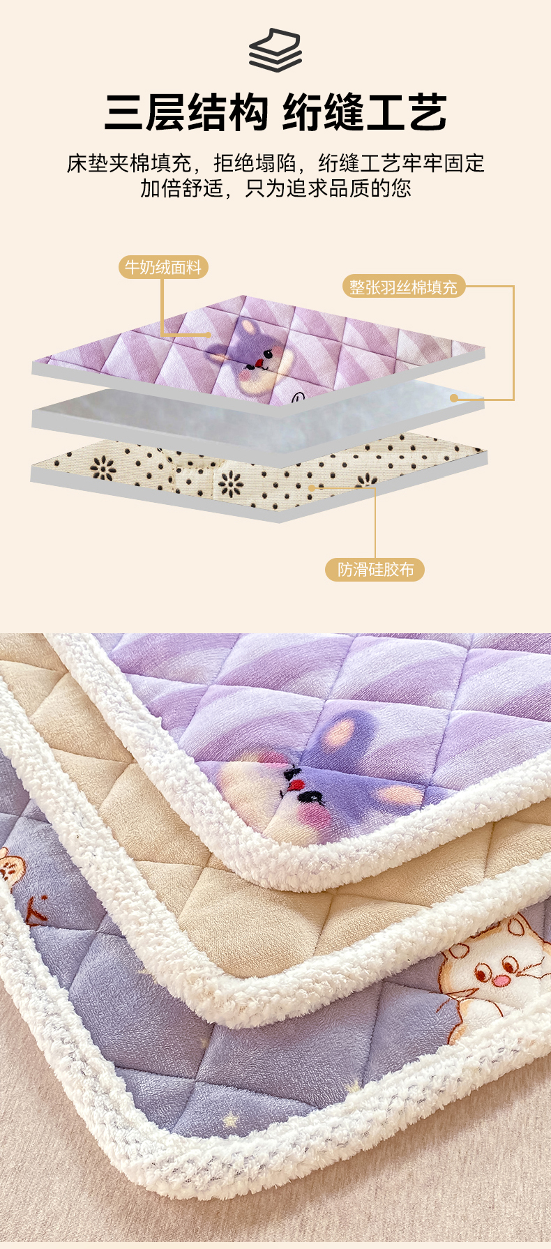 正邦家纺 2024新款牛奶绒床垫小清新加厚床褥保暖宽包边可机洗床护垫床褥 可优米