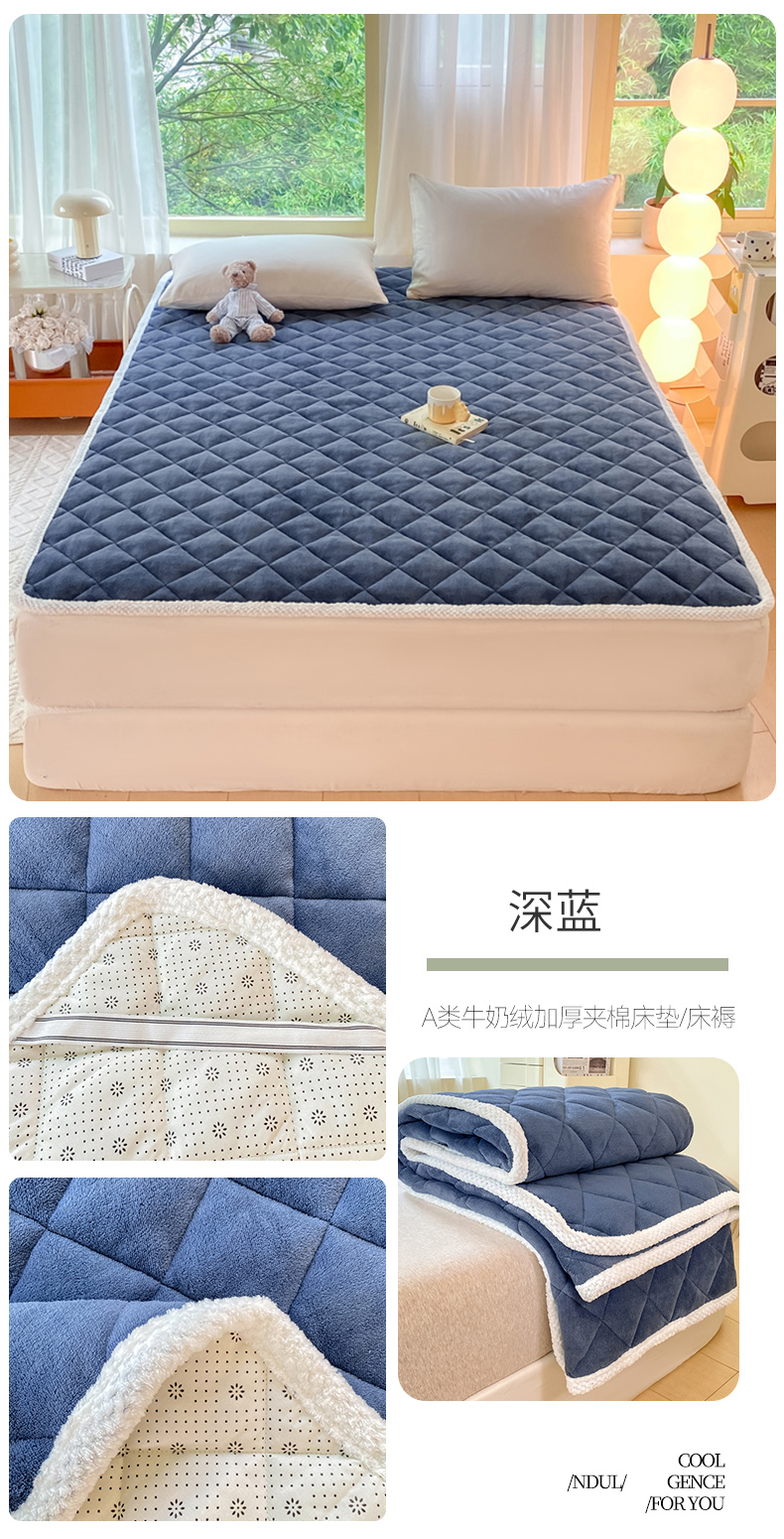 正邦家纺 2024新款牛奶绒床垫小清新加厚床褥保暖宽包边可机洗床护垫床褥 深蓝