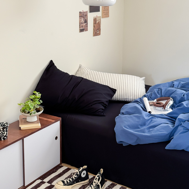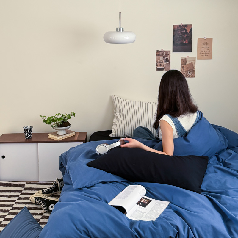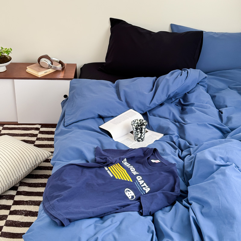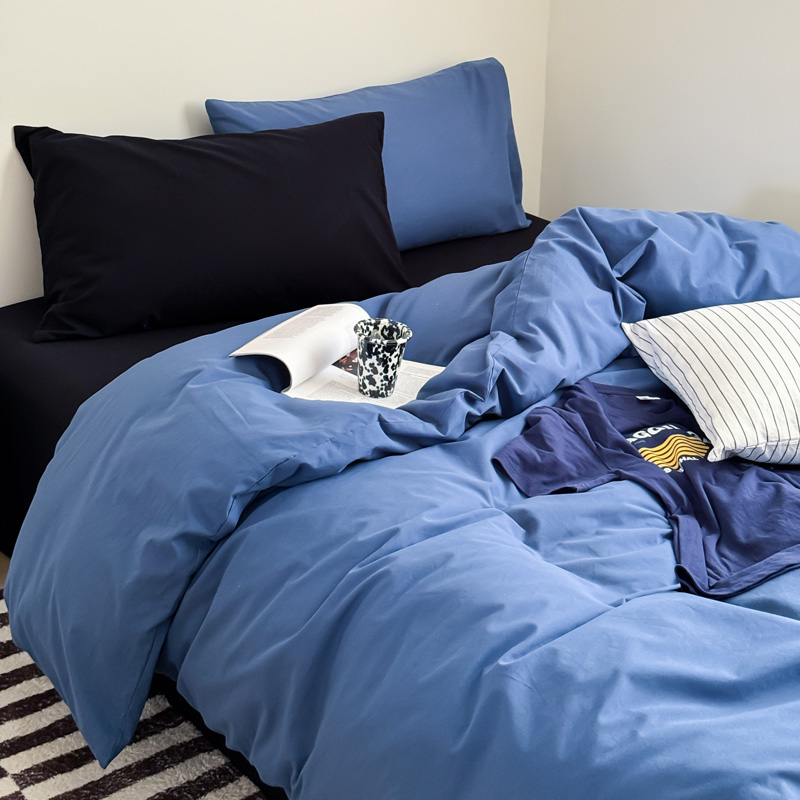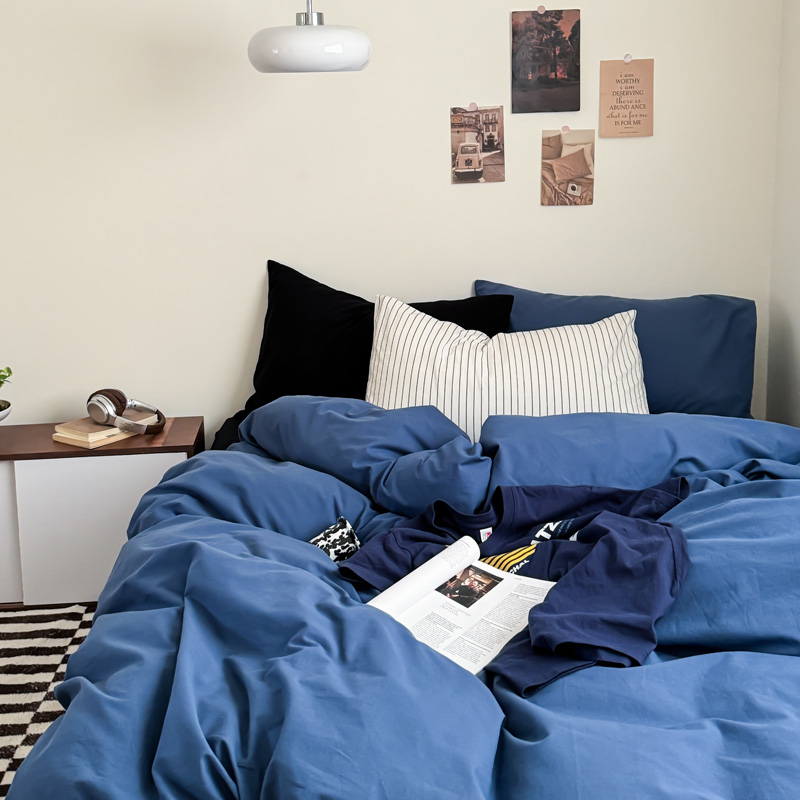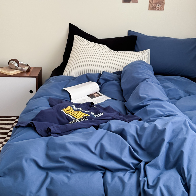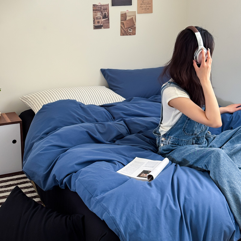 当前位置: 91家纺网 > 商品网购 > 床品套件 > 四件套 > 全棉普通四件套 > 艾沁家纺 2024新款简约风全棉色织水洗棉混搭四件套 深蓝+黑(深蓝枕+黑色枕)