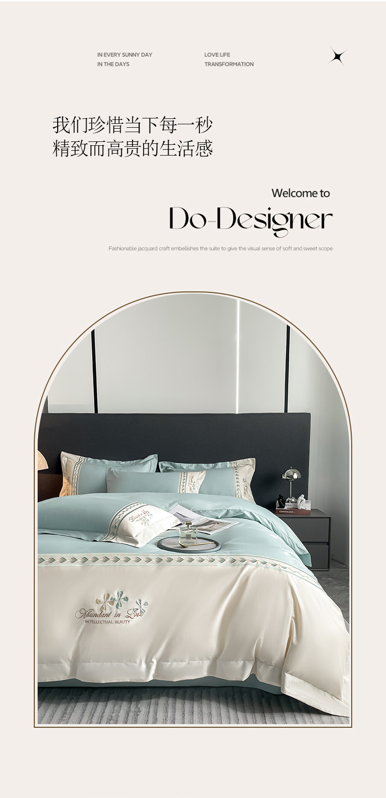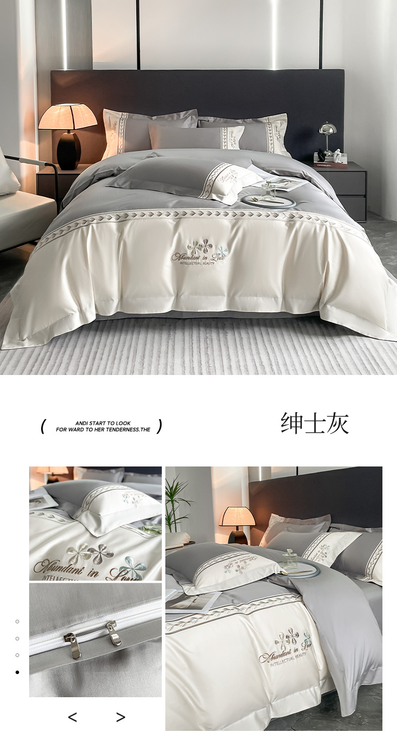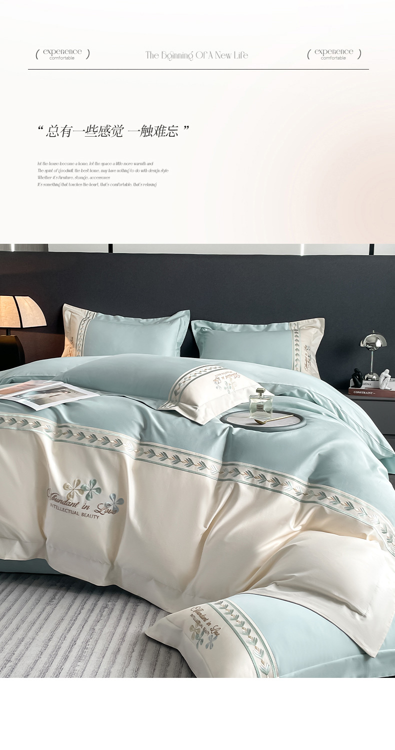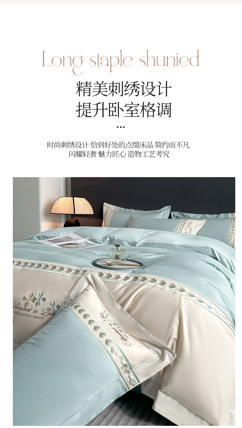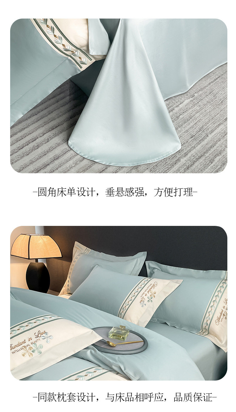 (总)桃园 2025新款纯棉全棉长绒棉刺绣绣花四件套(高端礼盒)-叶语,叶语-飘蓝,叶语-轻奢粉,叶语-绅士灰,叶语-香槟金