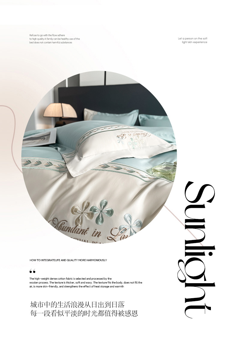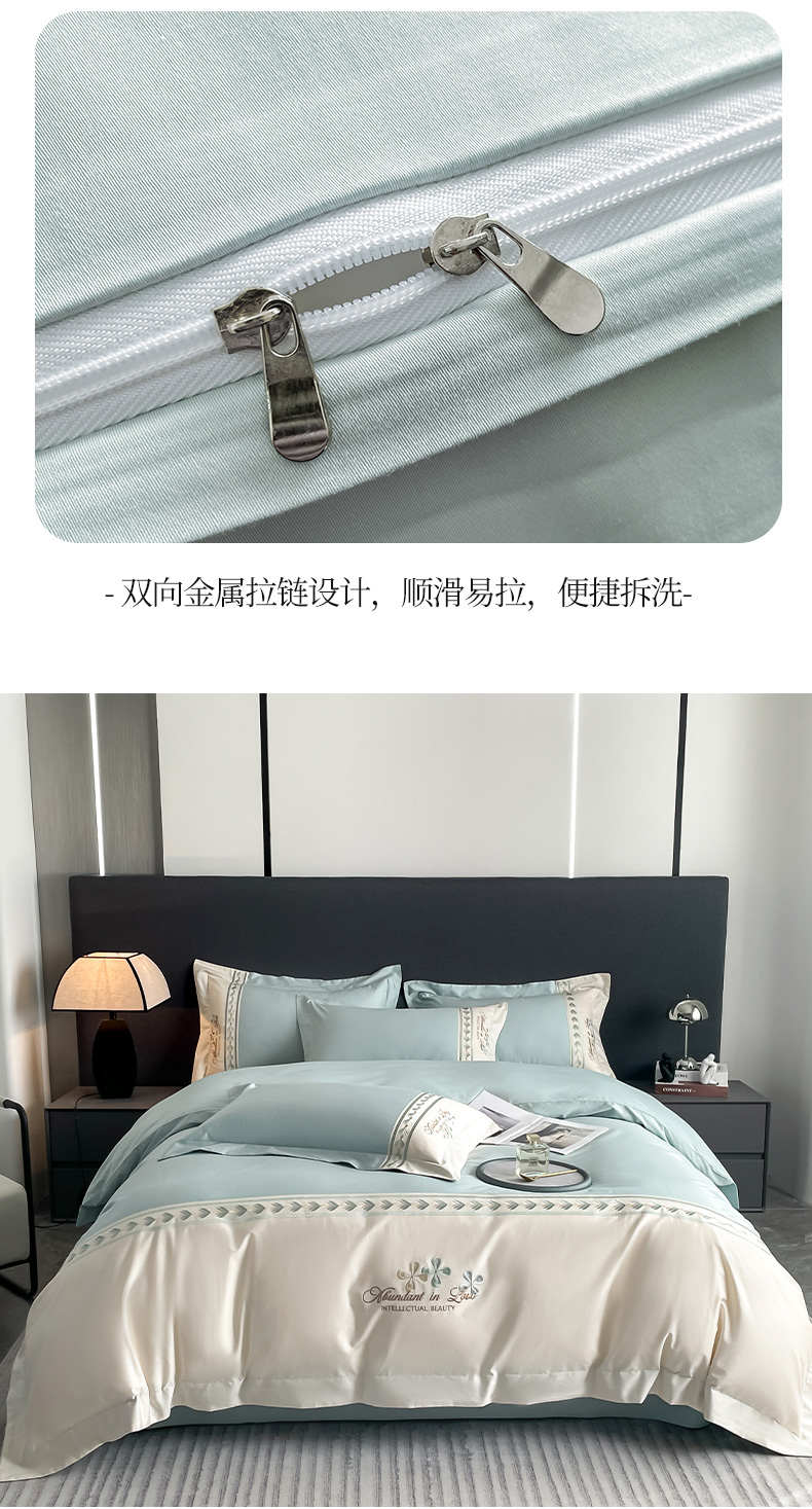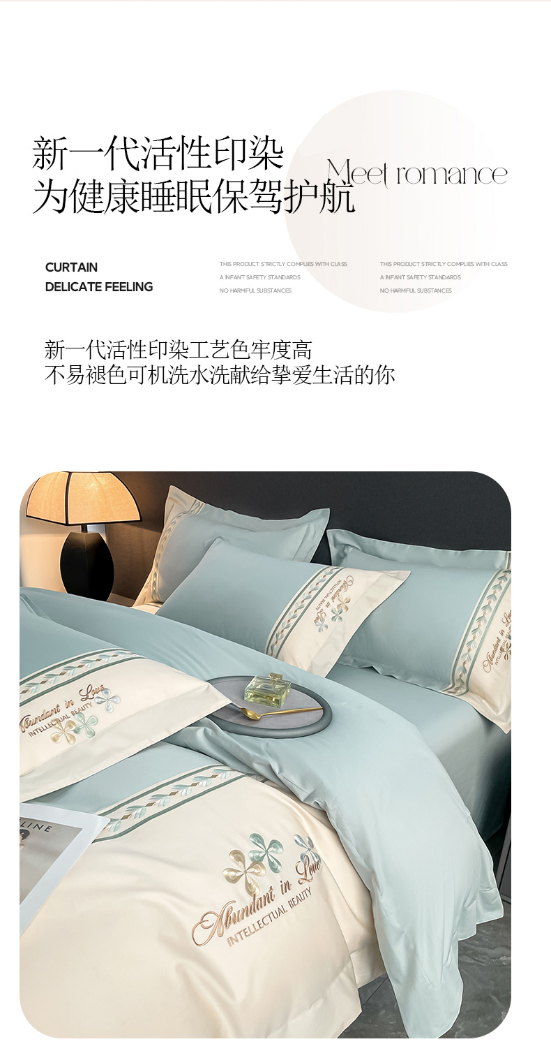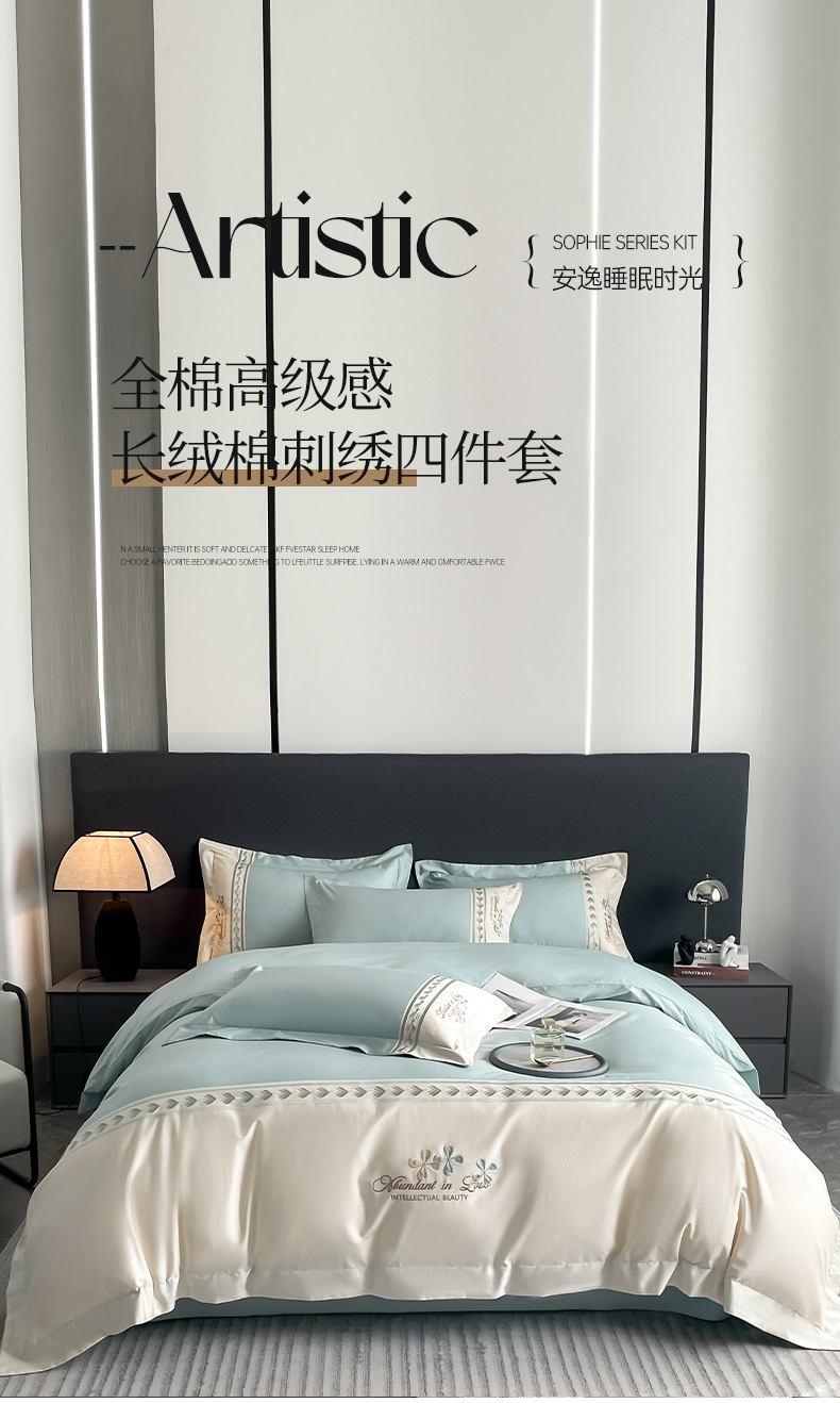 (总)桃园 2025新款全棉长绒棉刺绣绣花四件套-西西里系列,飘蓝,轻奢粉,绅士灰,香槟