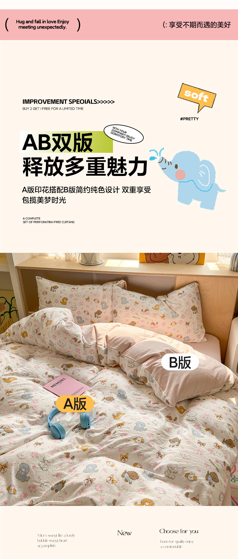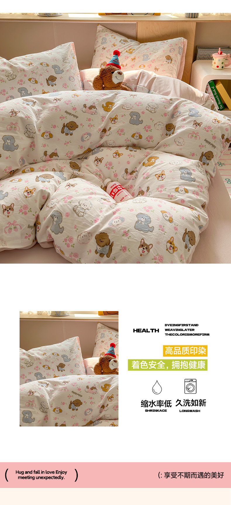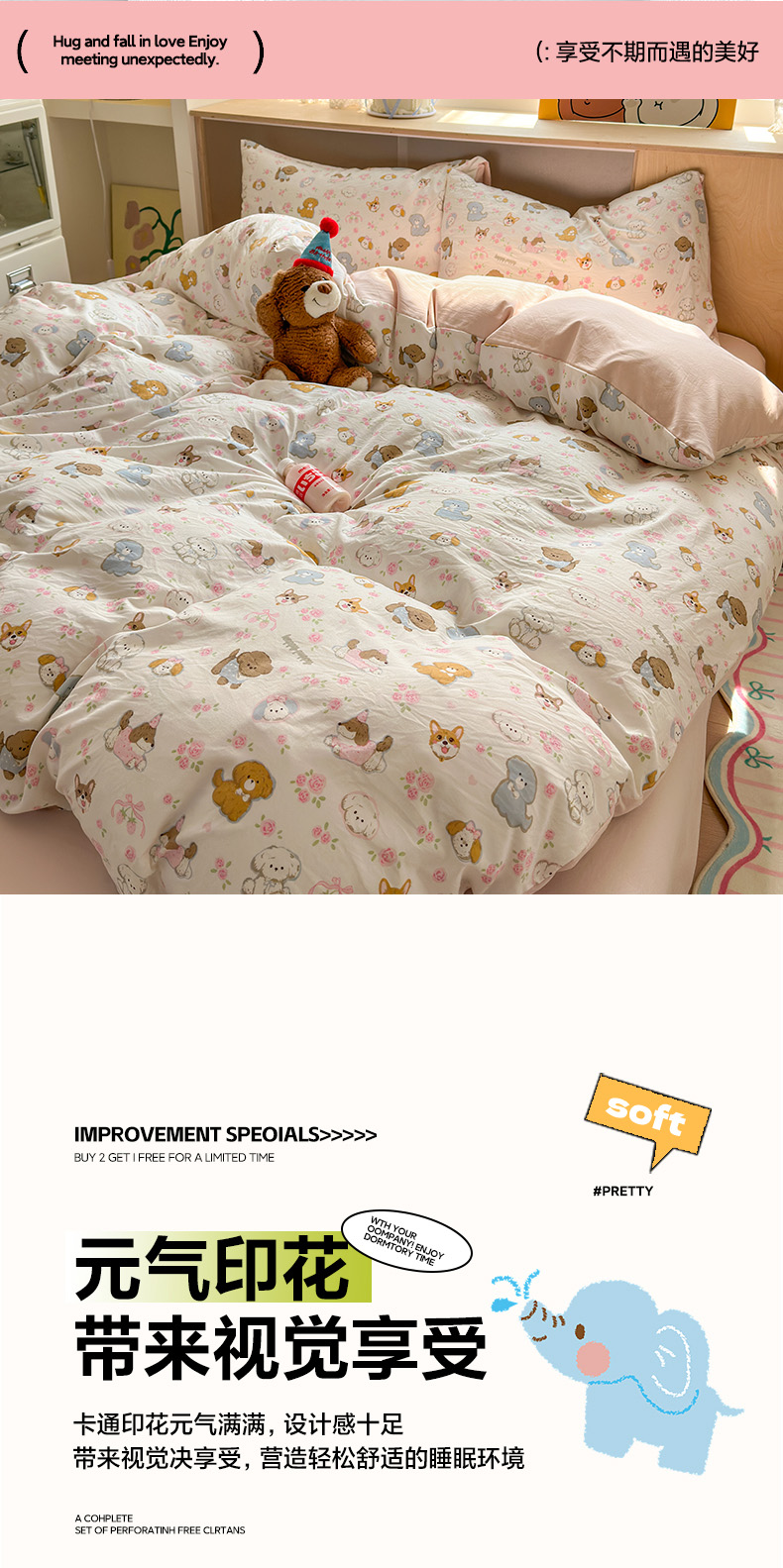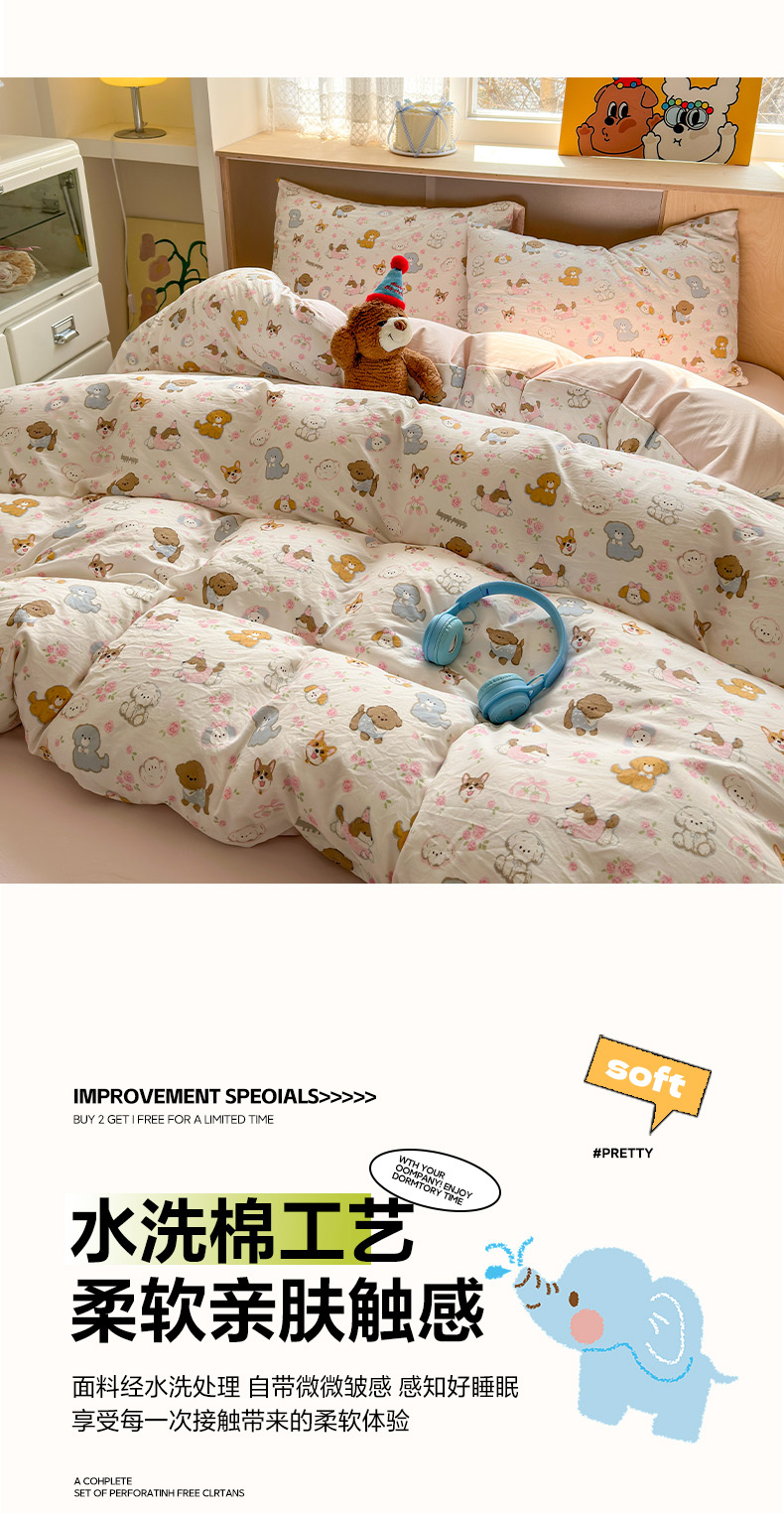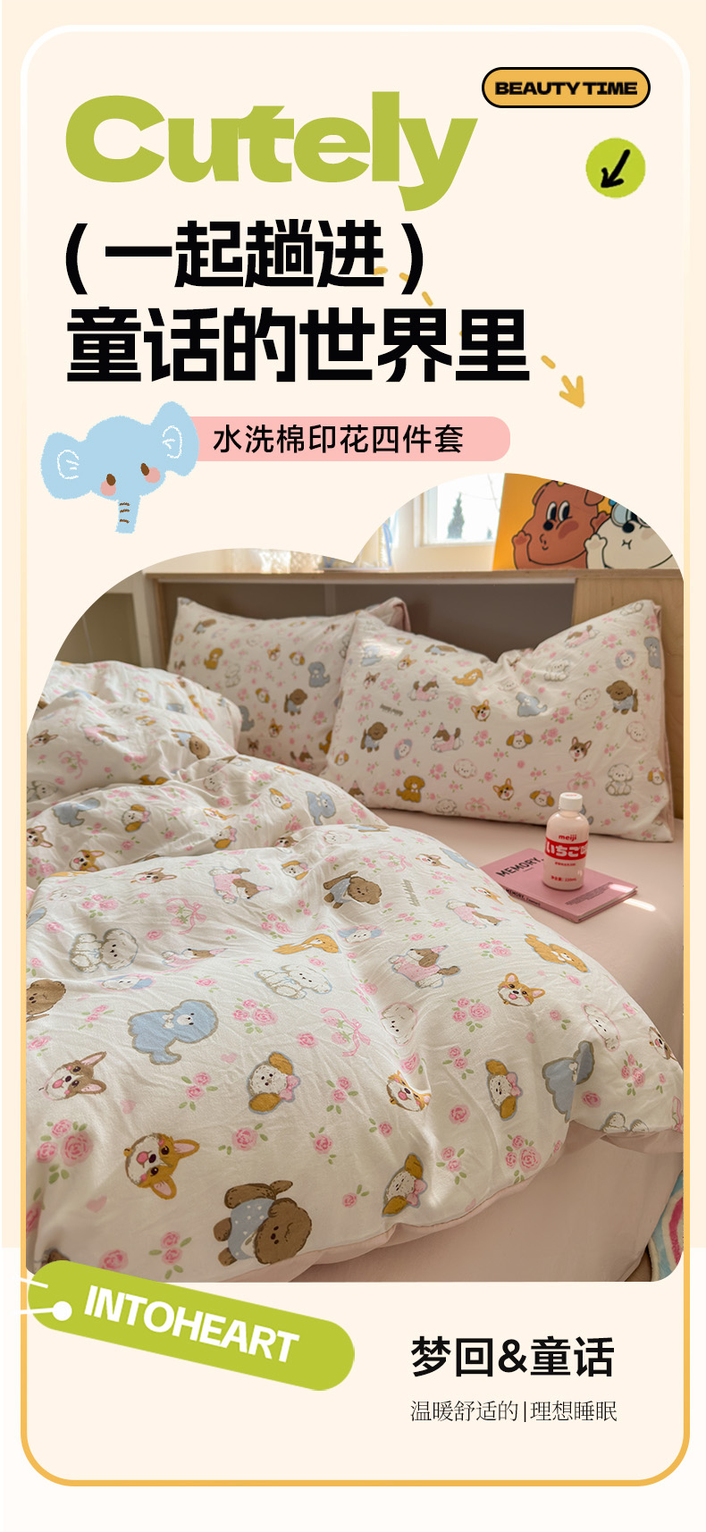 (总)冕悠家纺 2026新款超柔软105克卡通水洗棉四件套 提供买家秀,冰淇凌奶黄,粉猫奶蓝,狗狗奶黄,狗狗奶紫,留香,猫猫奶蓝,猫猫奶紫,奶酪派派对,兔兔奶黄,兔兔奶紫,星月小狗