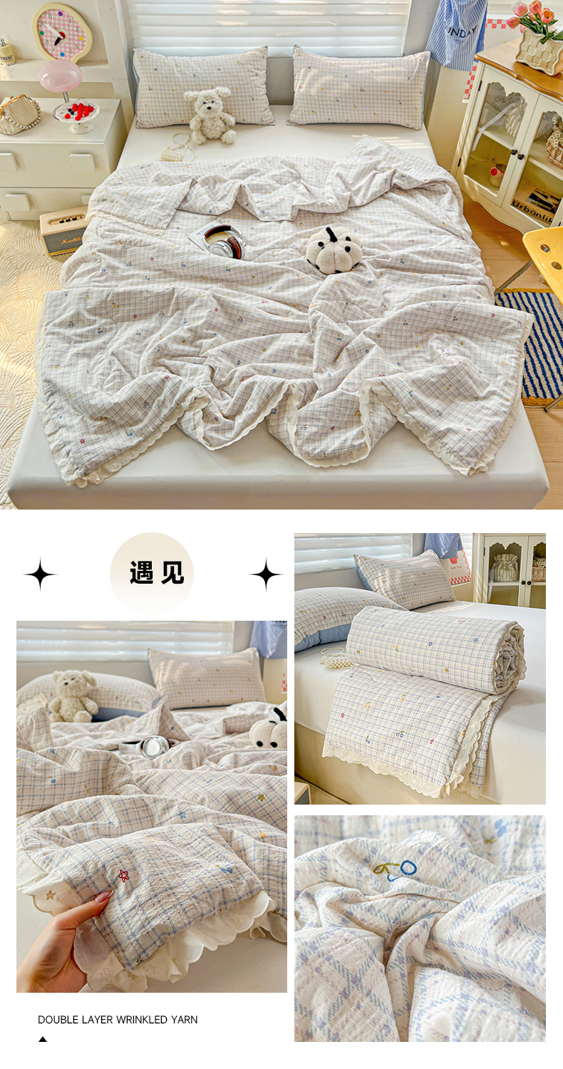 商品名称:一比一家纺 2025新款云感皱皱双层纱全棉纯棉花边单夏被夏凉被空调被系列 遇见