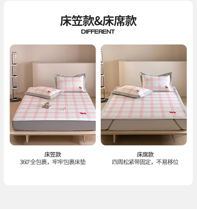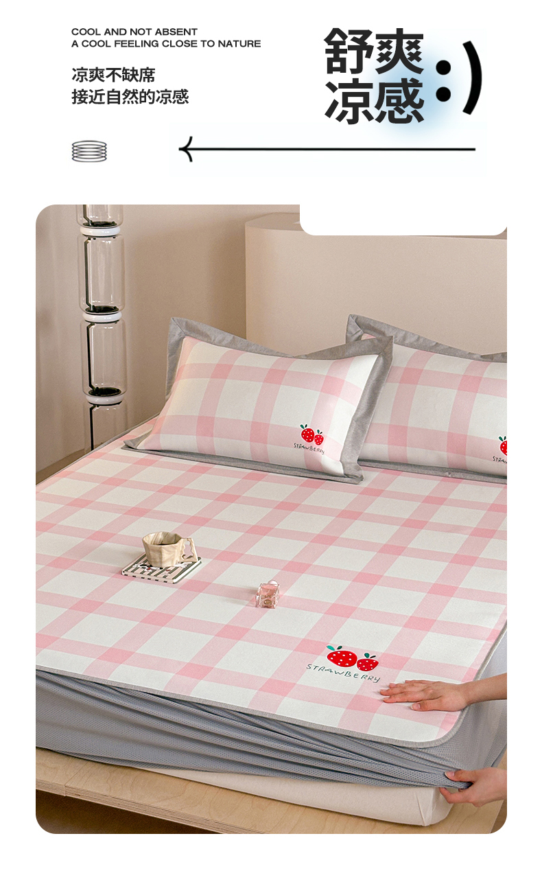 商品名称:Sweet dreams甜梦 2025新款母婴级7A抗菌养生冰藤席席子凉席-影棚2床笠款 格子草莓