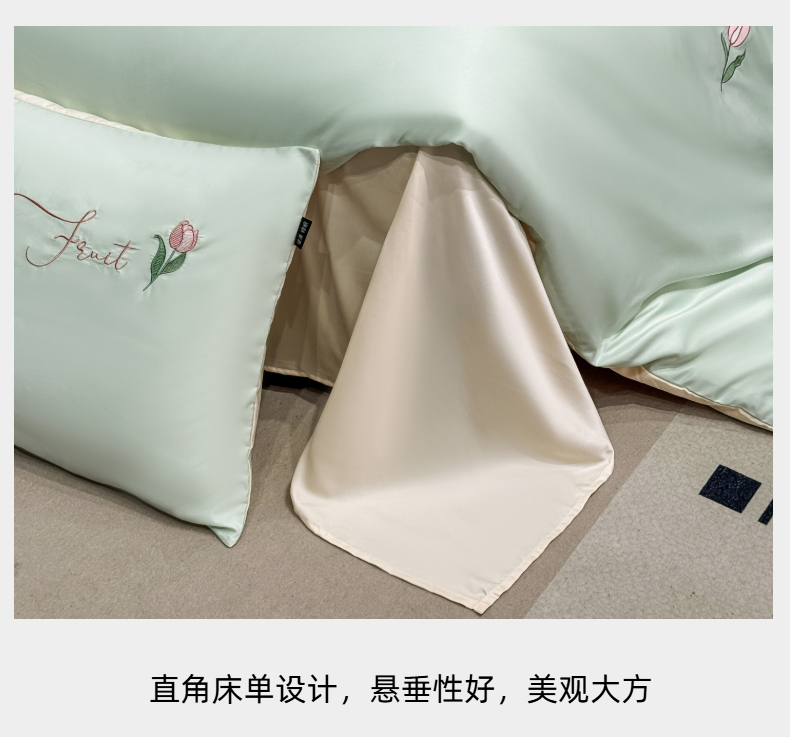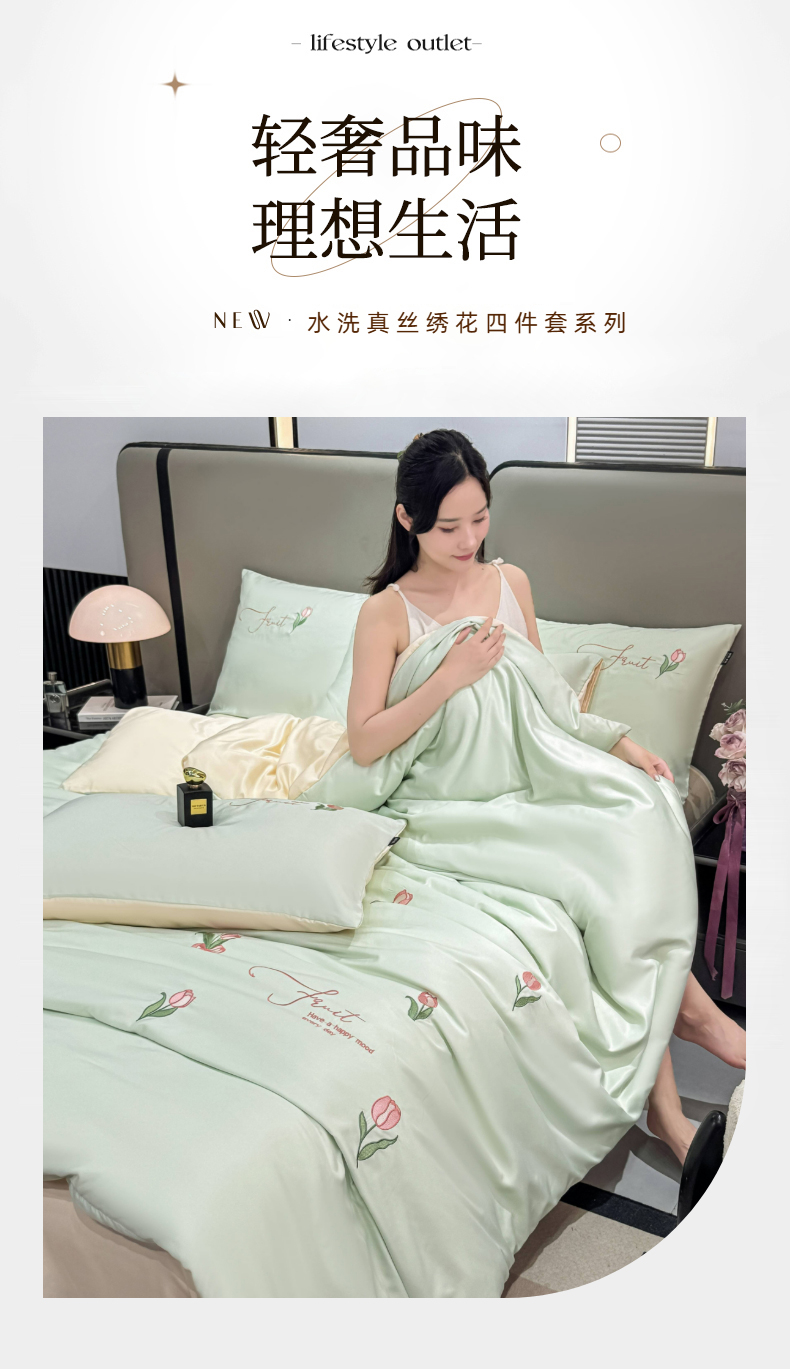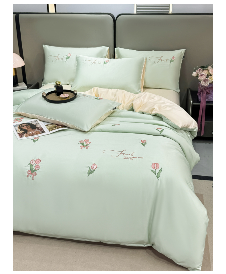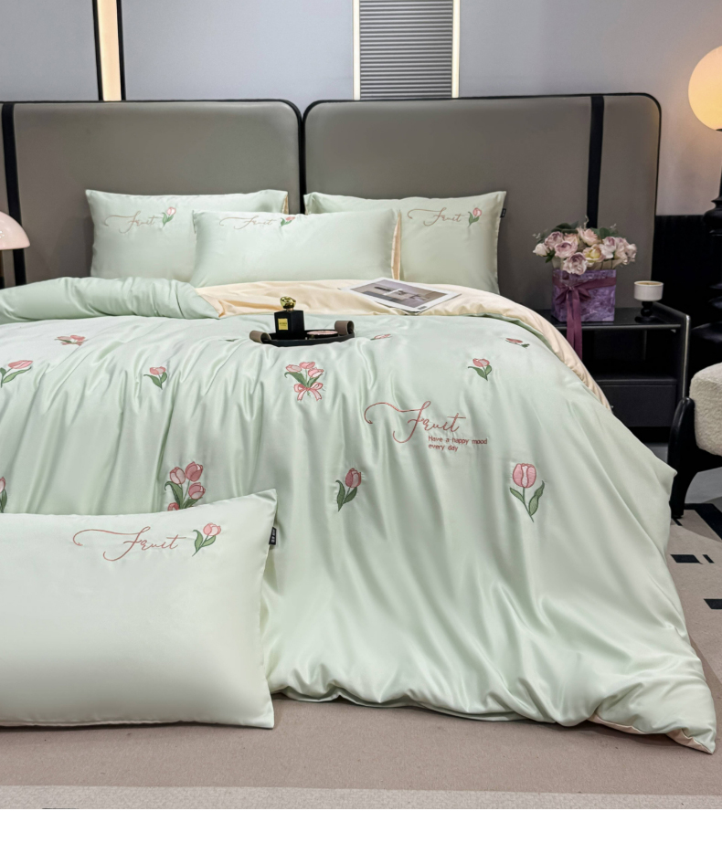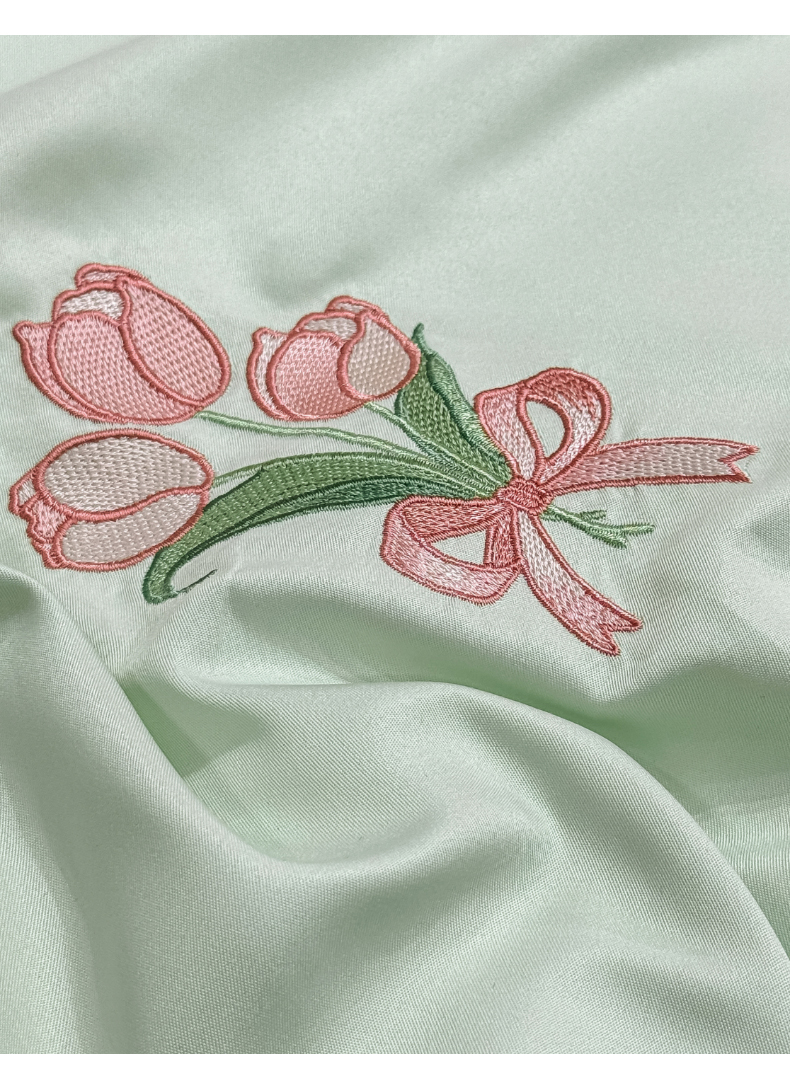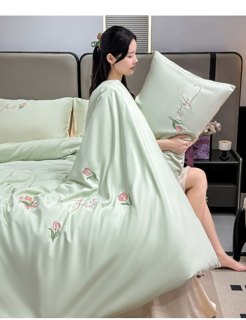 当前位置: 91家纺网 > 商品网购 > 床品套件 > 四件套 > 水洗真丝四件套 > 乐沐家纺 2025春夏新款水洗真丝绣花冰丝四件套 郁金香-清香绿