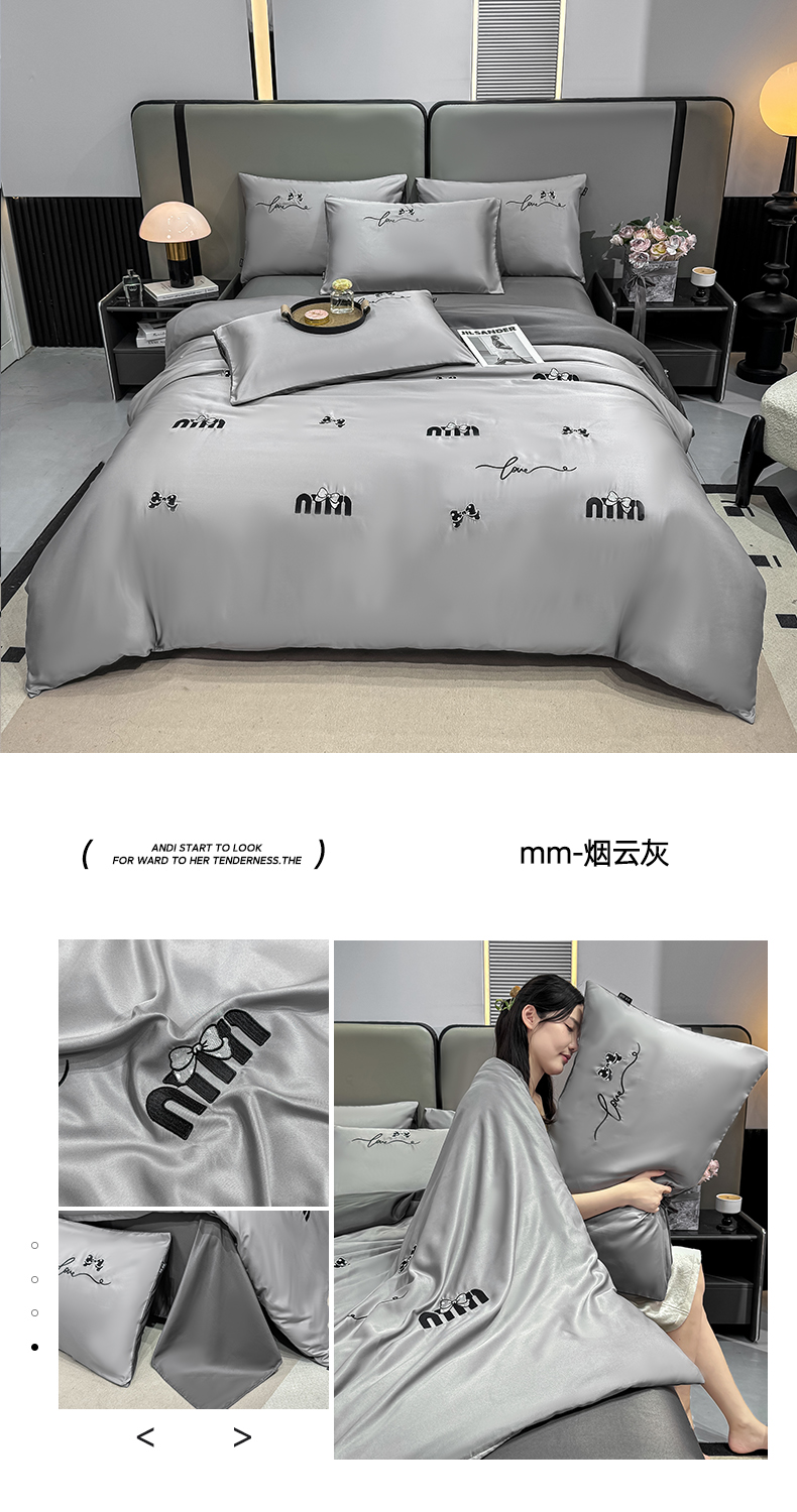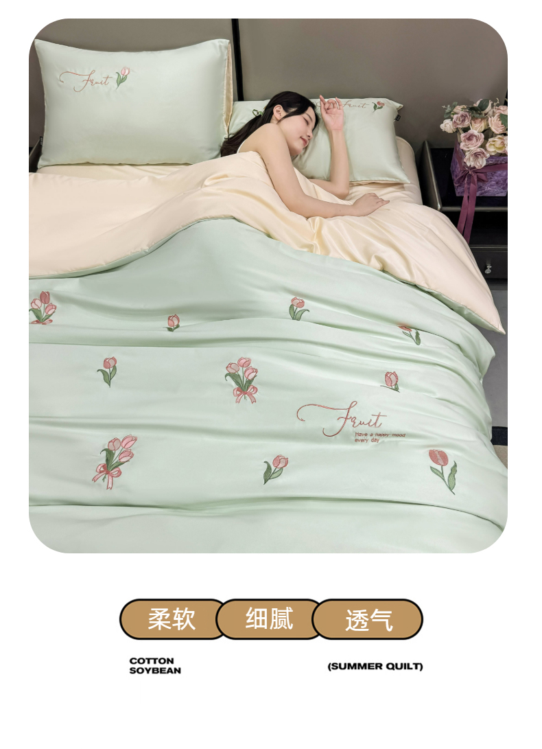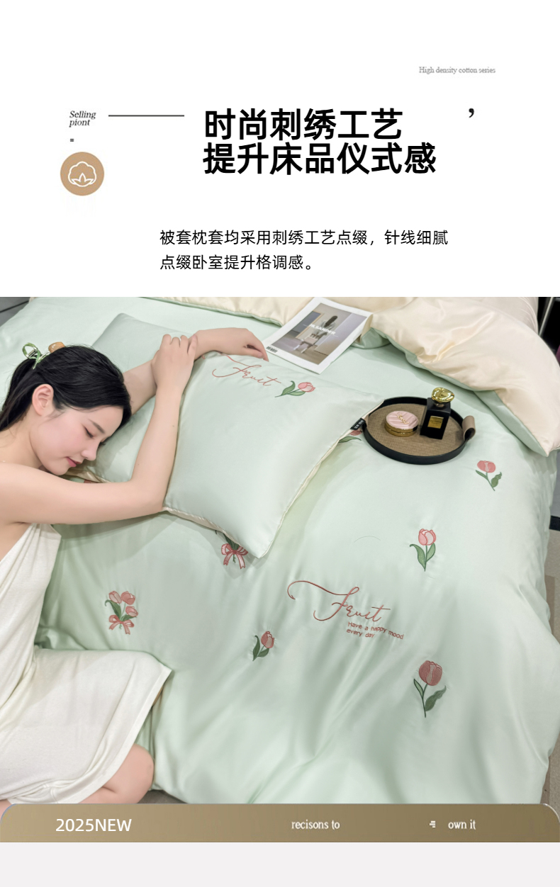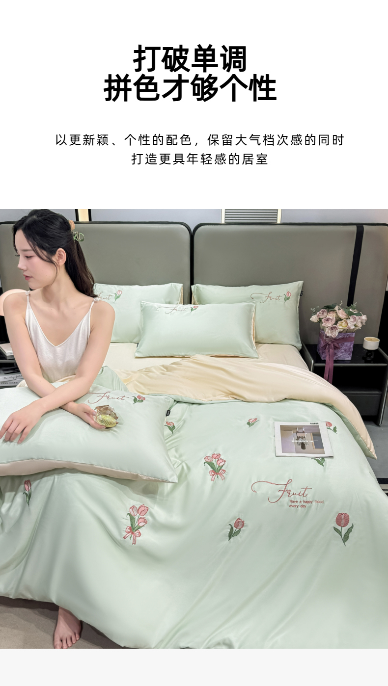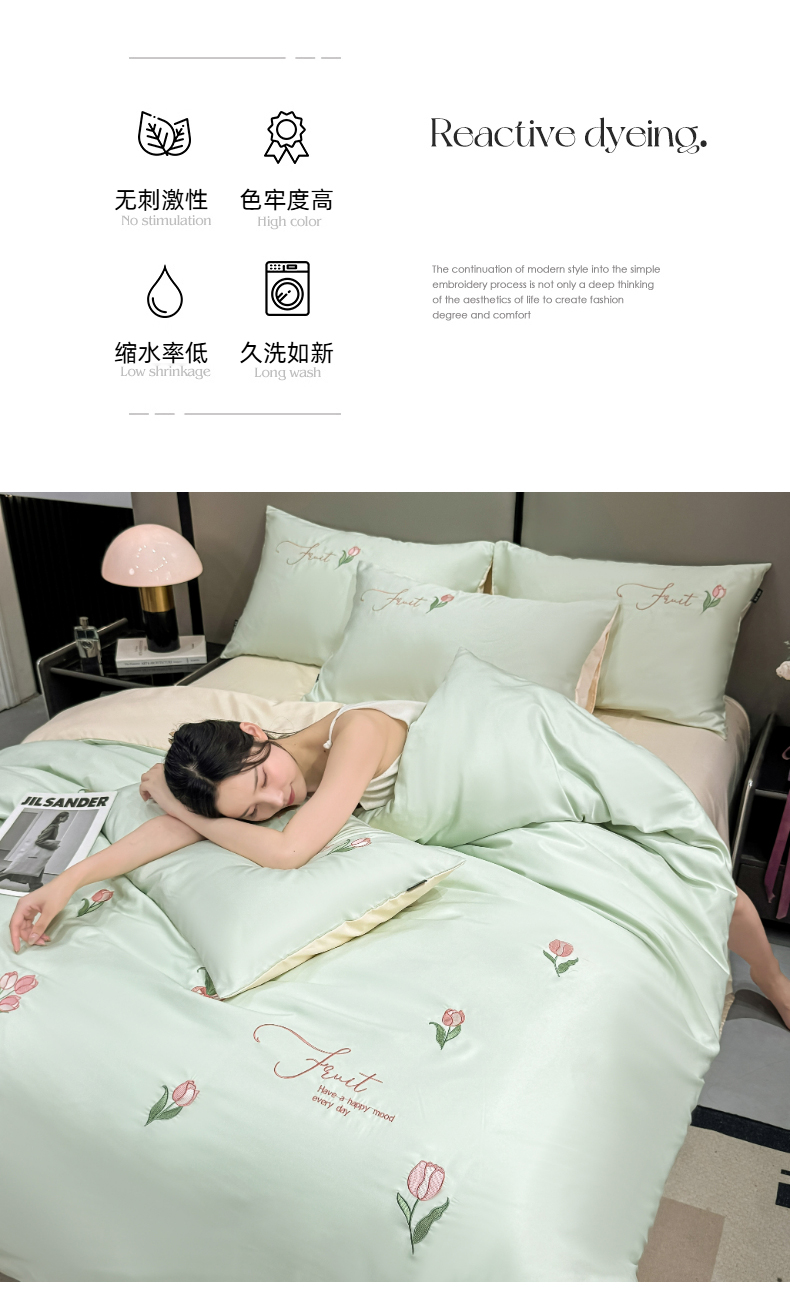 当前位置: 91家纺网 > 商品网购 > 床品套件 > 四件套 > 水洗真丝四件套 > 乐沐家纺 2025春夏新款水洗真丝绣花冰丝四件套 郁金香-清香绿