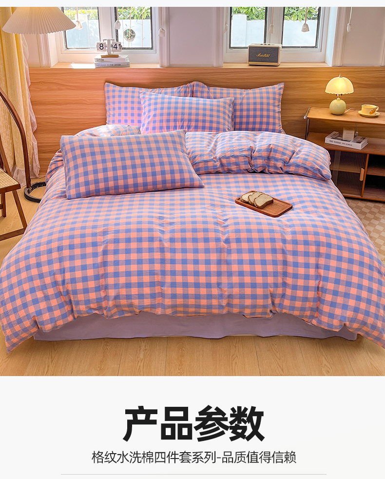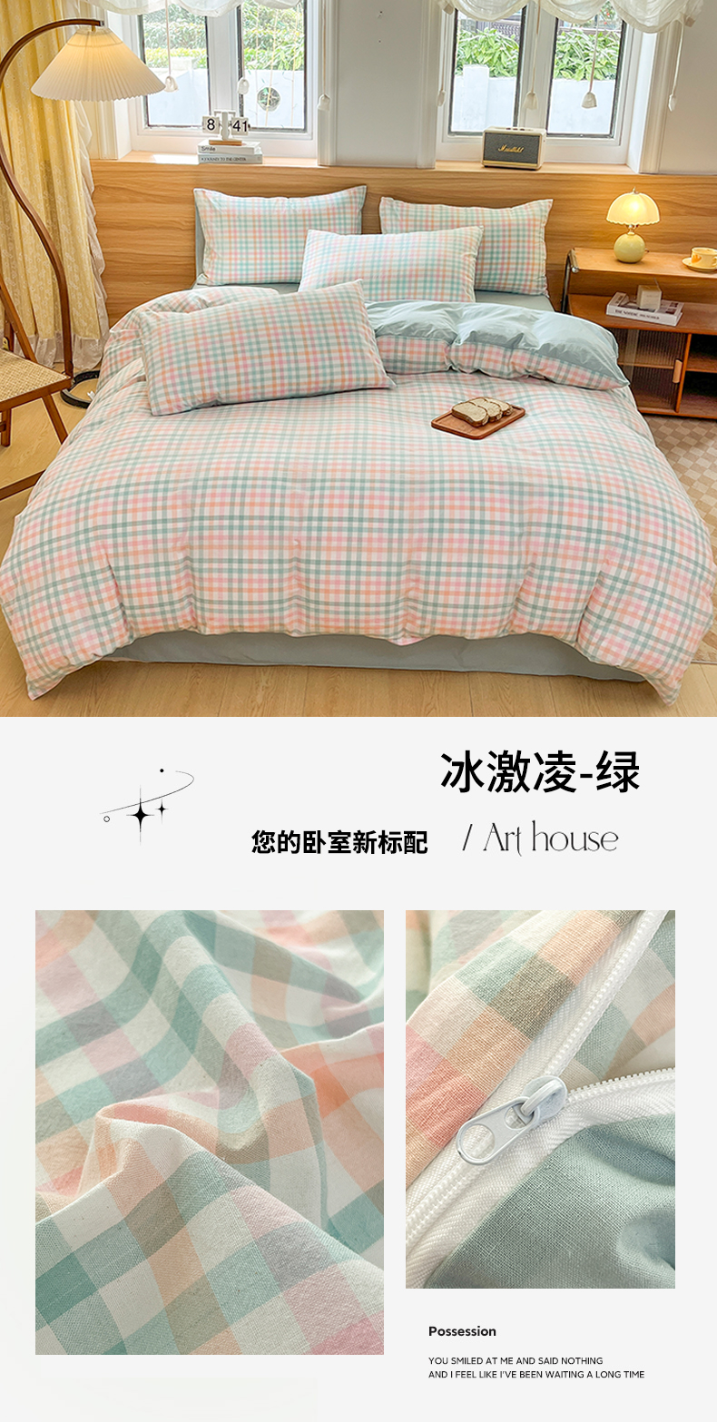 当前位置: 91家纺网 > 商品网购 > 床品套件 > 四件套 > 色织四件套 > 美尔惠家纺 2025直播热款无印风色织水洗四件套简约格子款学生宿舍三件套床单款 蓝绿小格