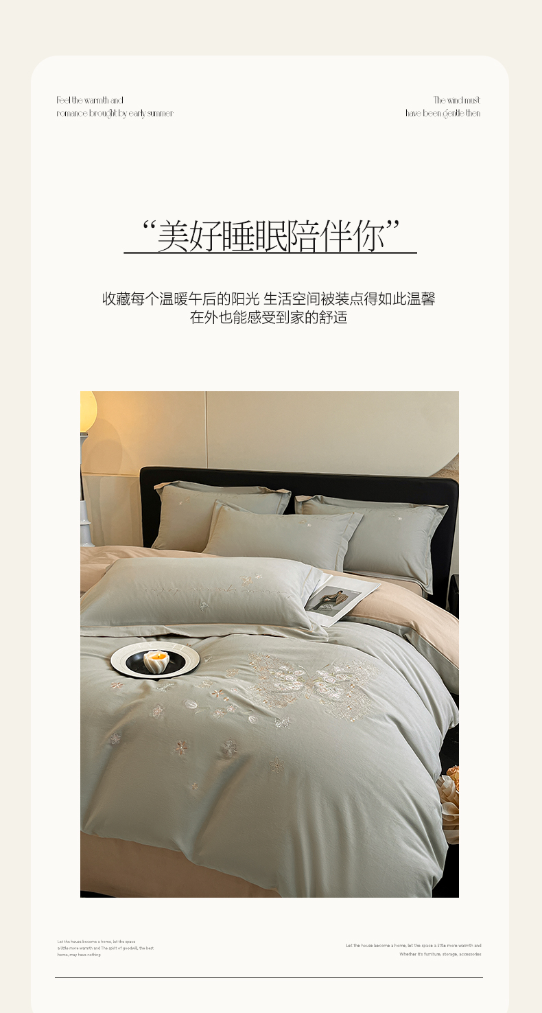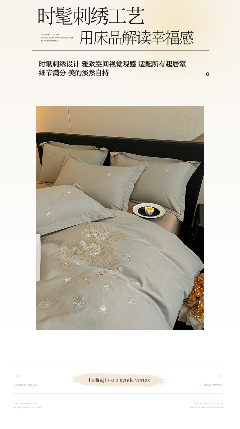 (总)涵宸家纺 2025新款全棉磨毛刺绣四件套系列-普莉,普莉-粉,普莉-绿,普莉-奶白