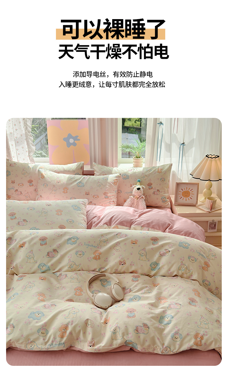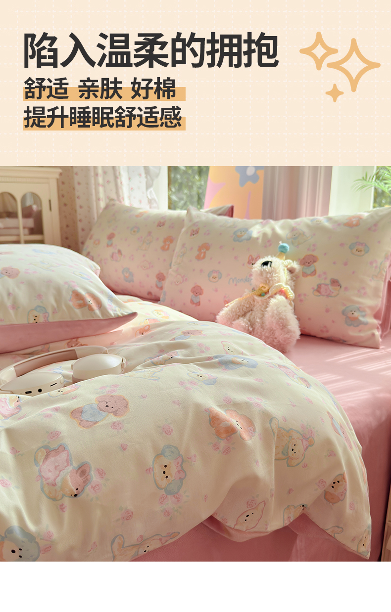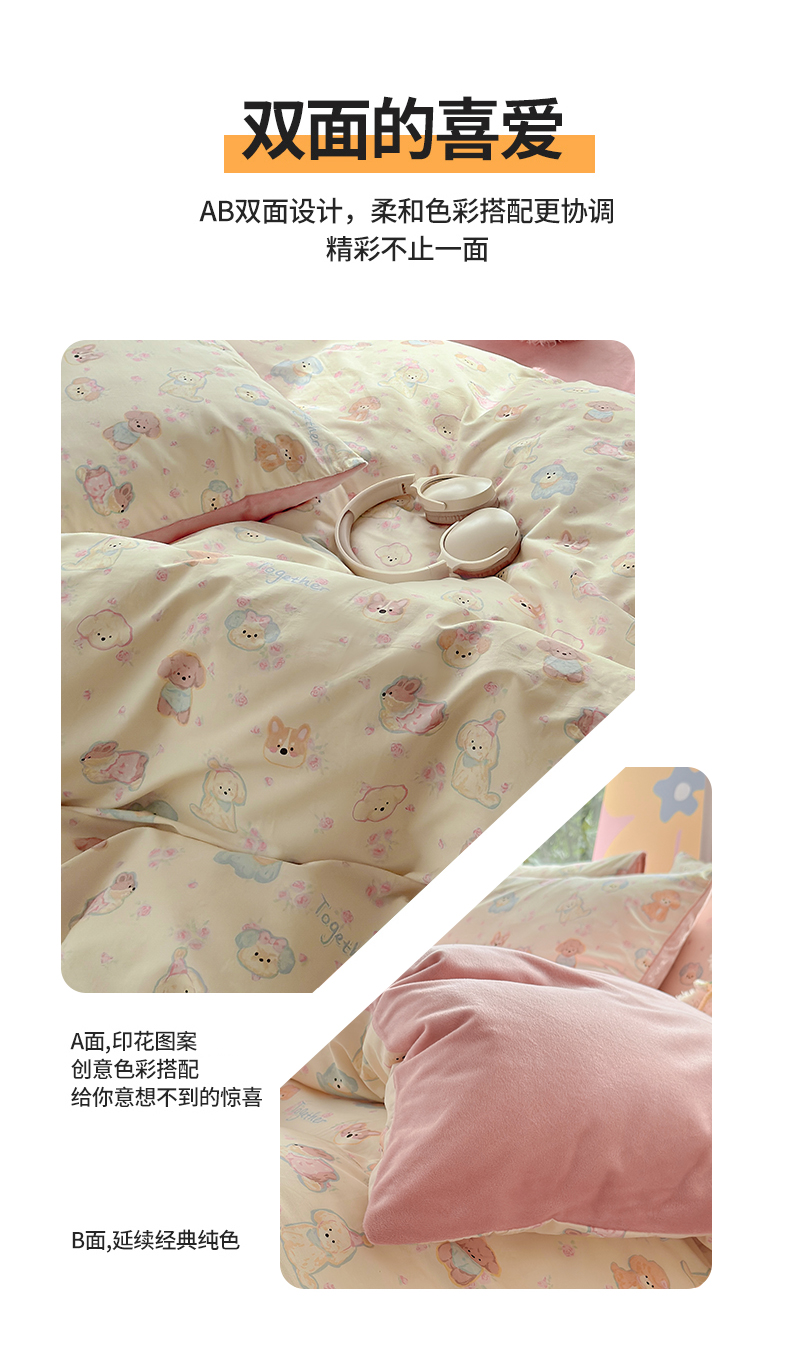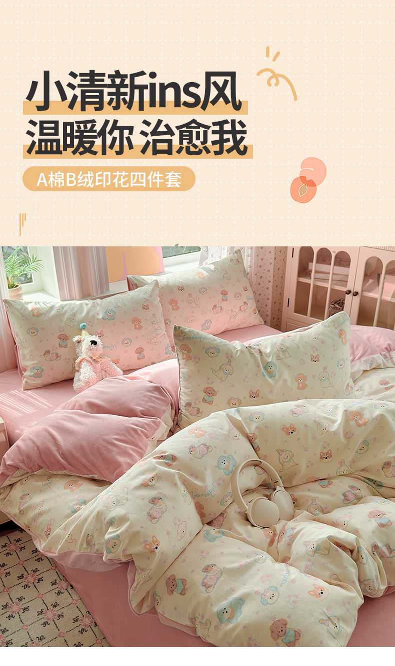 当前位置: 91家纺网 > 商品网购 > 床品套件 > 四件套 > 全棉普通四件套 > 清雅福 2025秋冬新品全棉印花棉加绒四件套系列 棉绒-狗狗家族