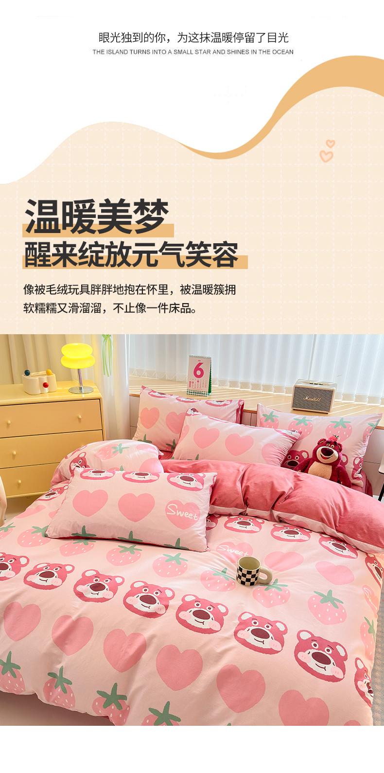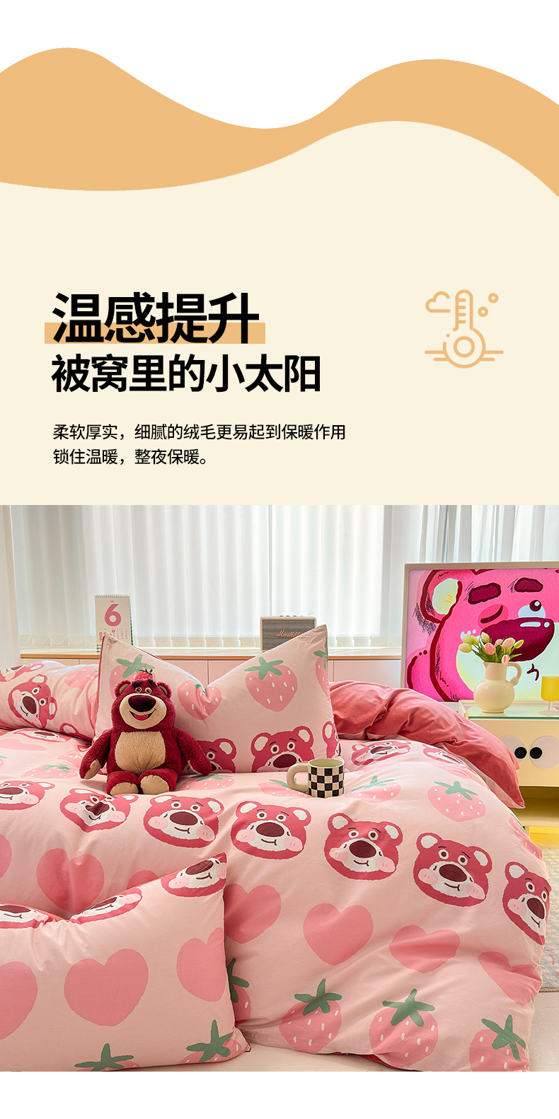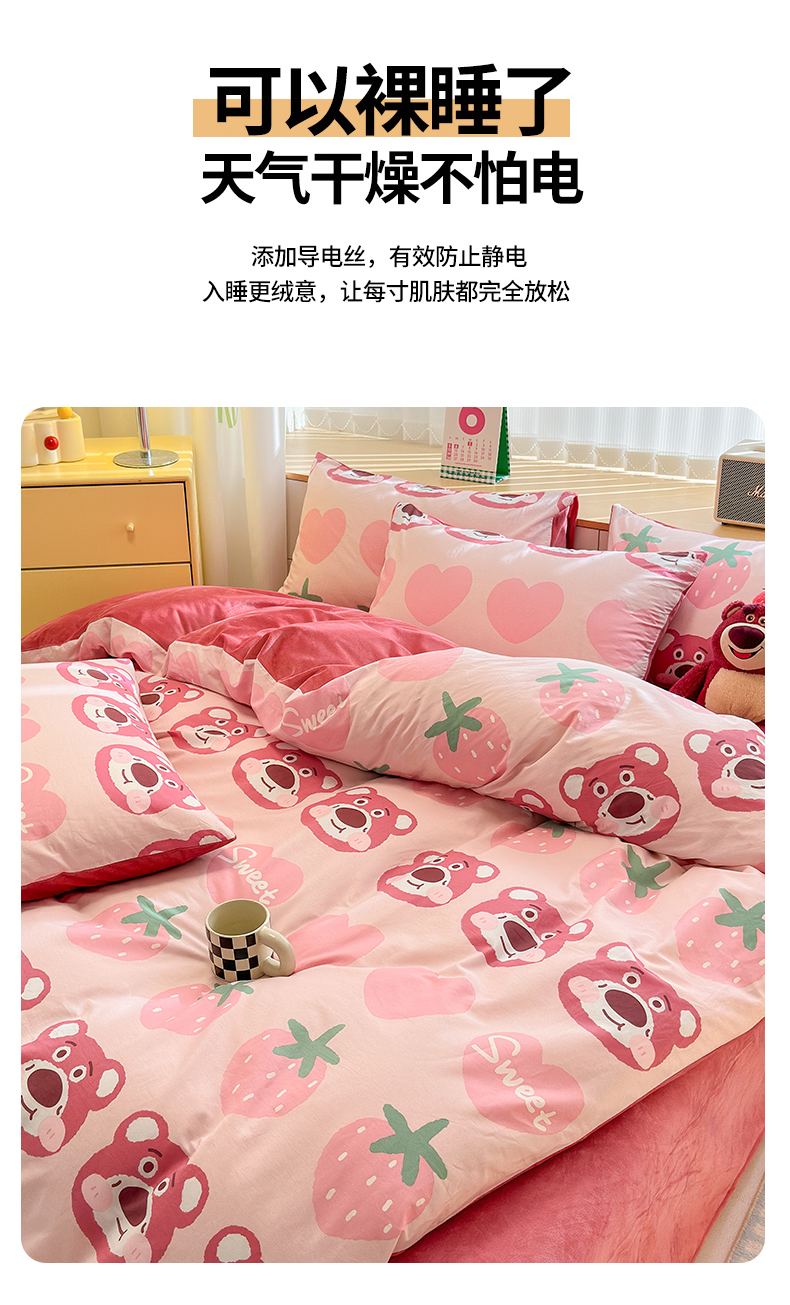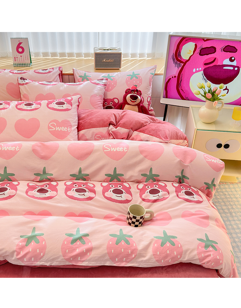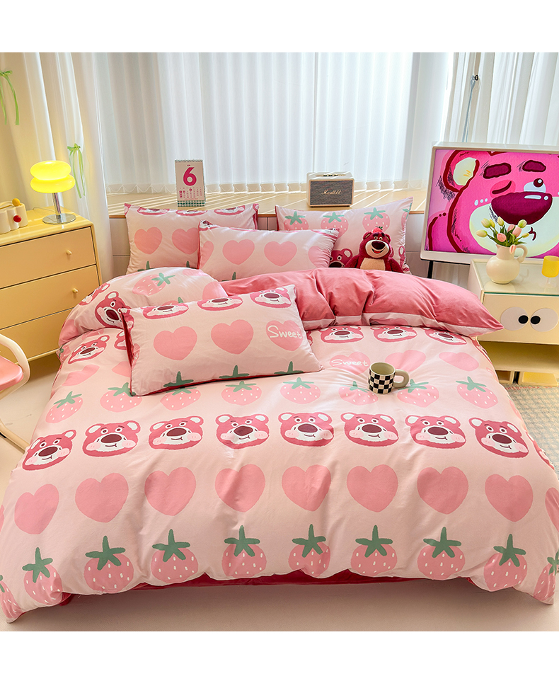 当前位置: 91家纺网 > 商品网购 > 床品套件 > 四件套 > 全棉普通四件套 > 清雅福 2025秋冬新品全棉印花棉加绒四件套系列 棉绒-甜心熊