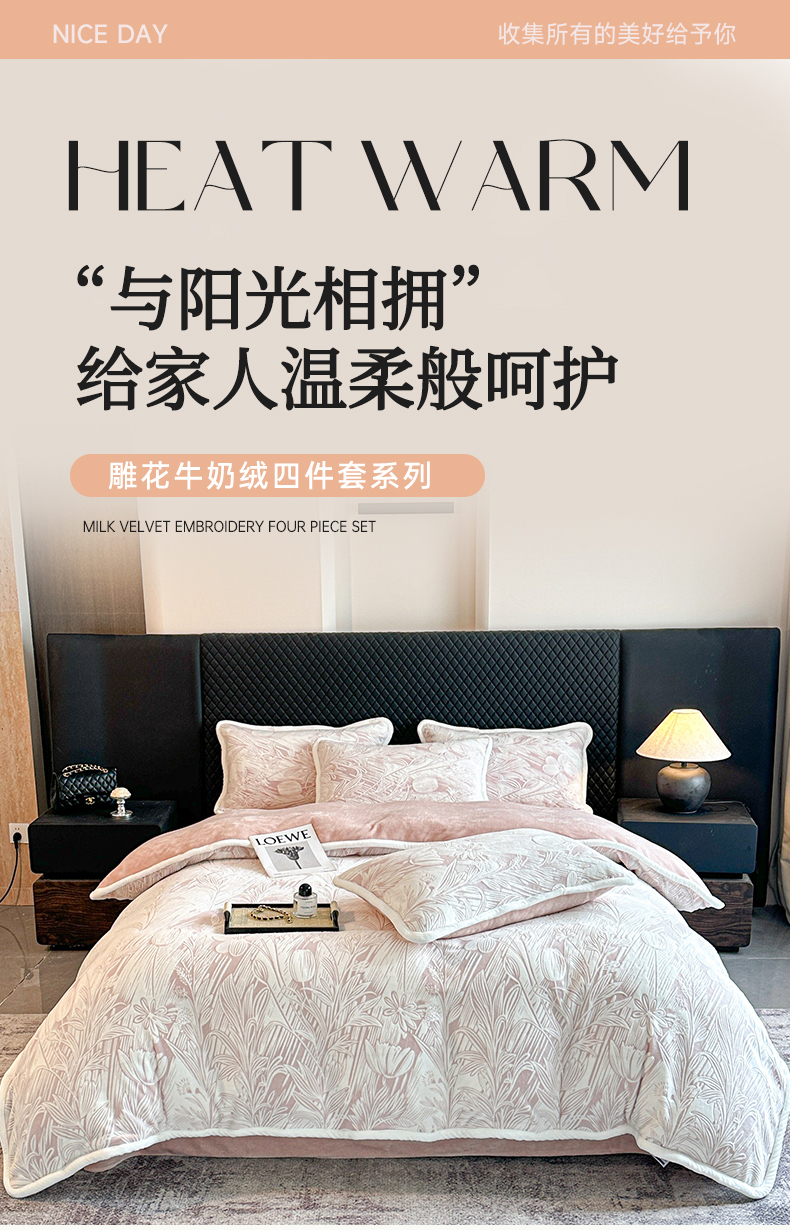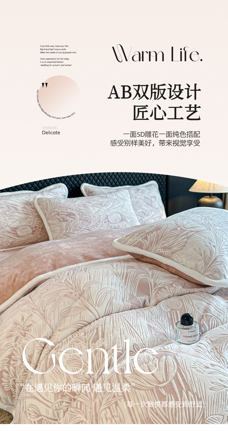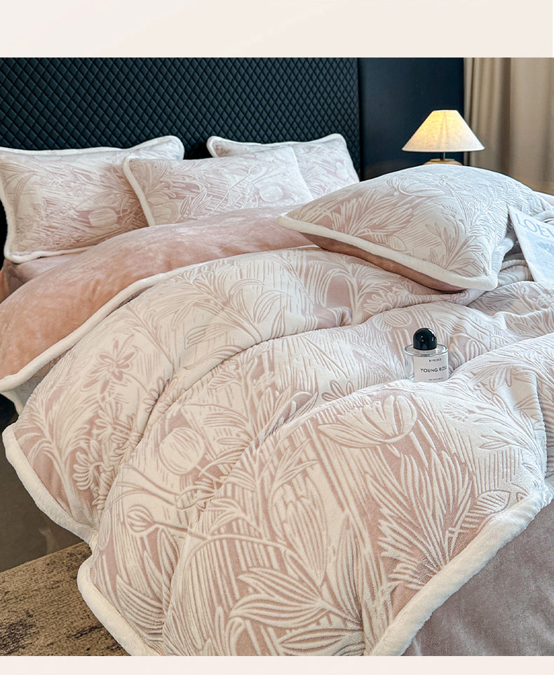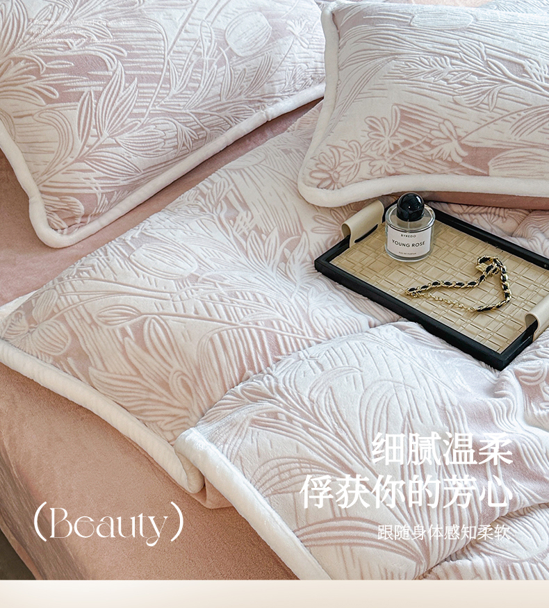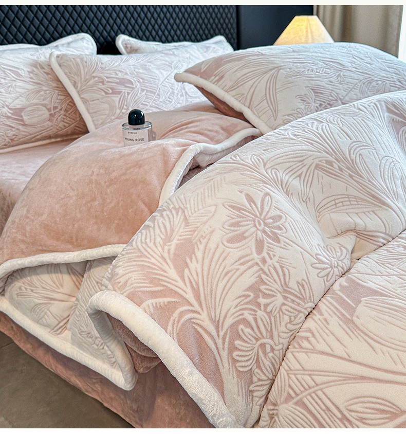 诺梵 2025新款8斤立体雕花牛奶绒四件套_控价标准高于139,加大高于149 含香待放-粉