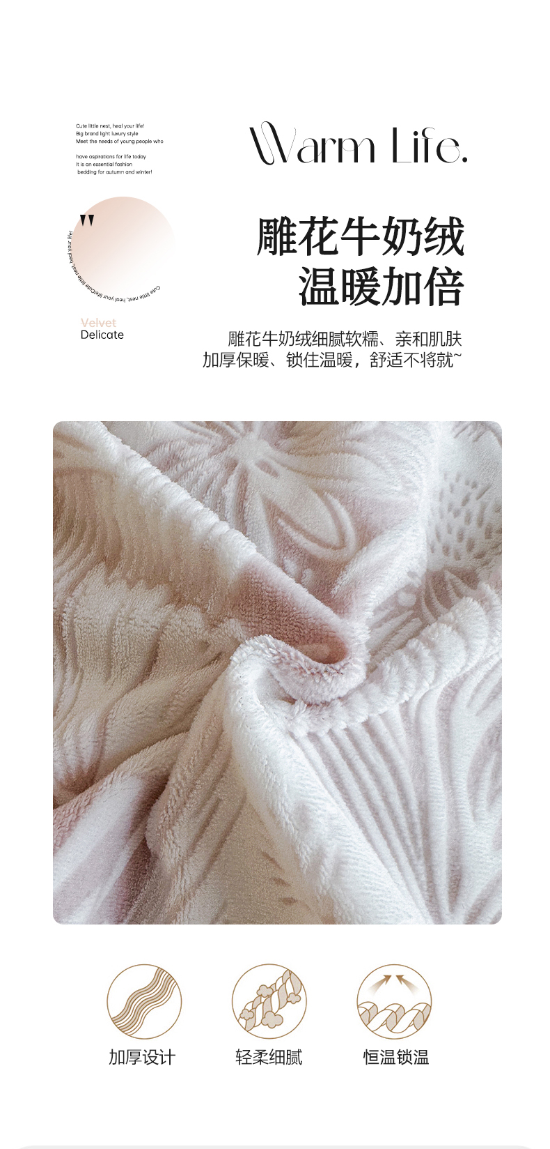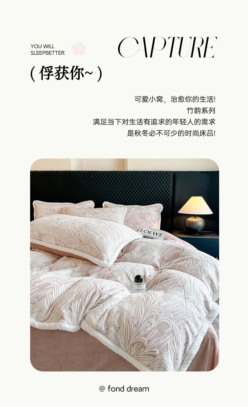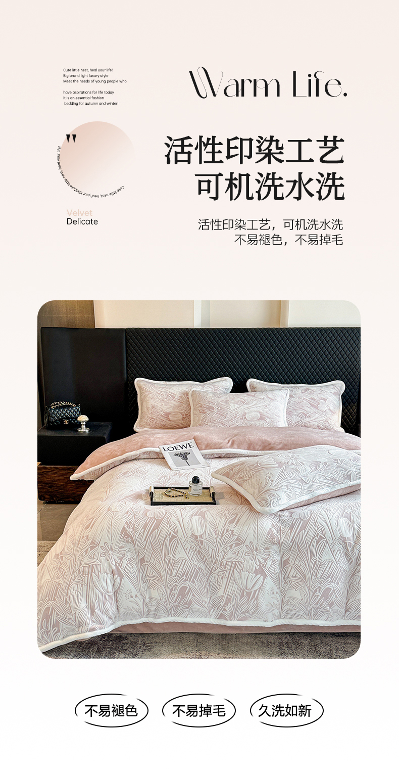 诺梵 2025新款8斤立体雕花牛奶绒四件套_控价标准高于139,加大高于149 含香待放-粉