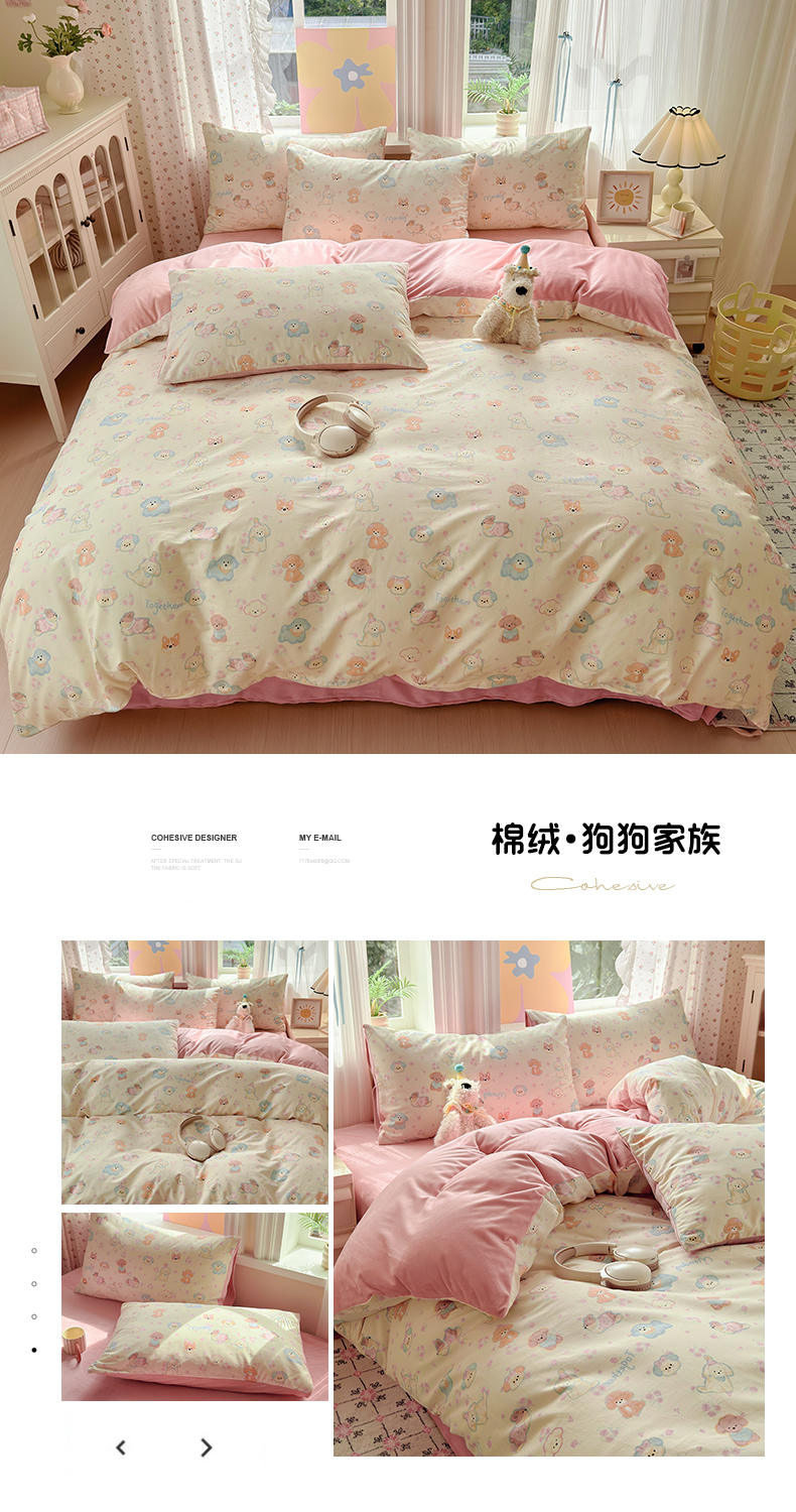 (总)清雅福 2026春夏新款INS小清新40支全棉13372四件套第一批,棒棒糖女孩,春之约定,点点小狗,动物聚会,豆丁小熊,粉心狗,富贵狗,果子象,含羞草,假日小狗